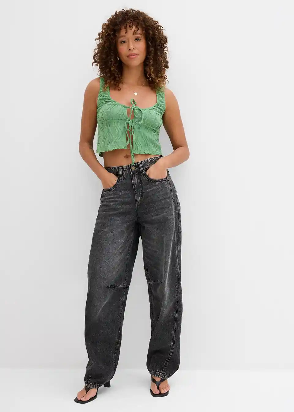 Balonaste kavbojke s srednje visokim pasom iz izjemno mehkega materiala