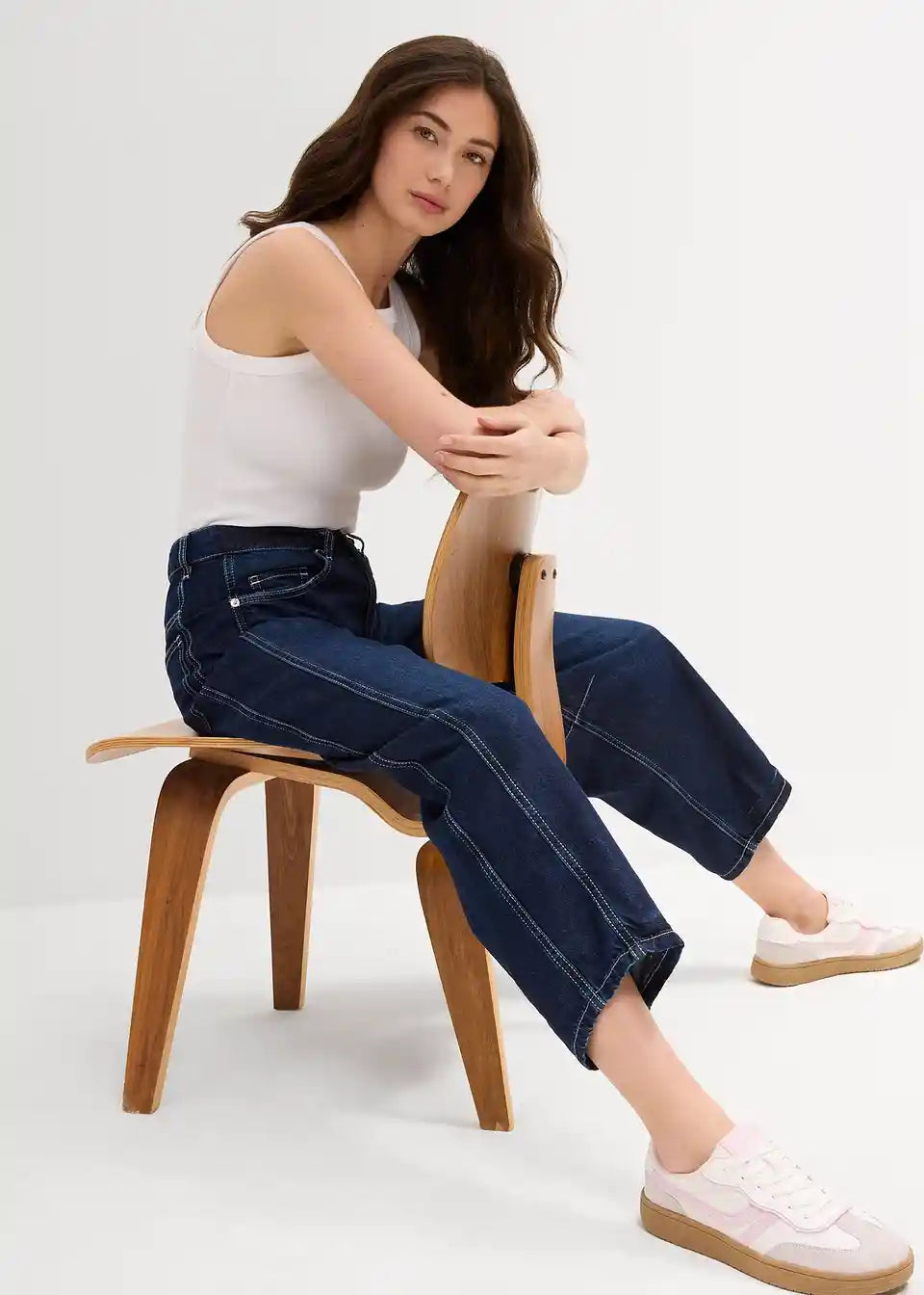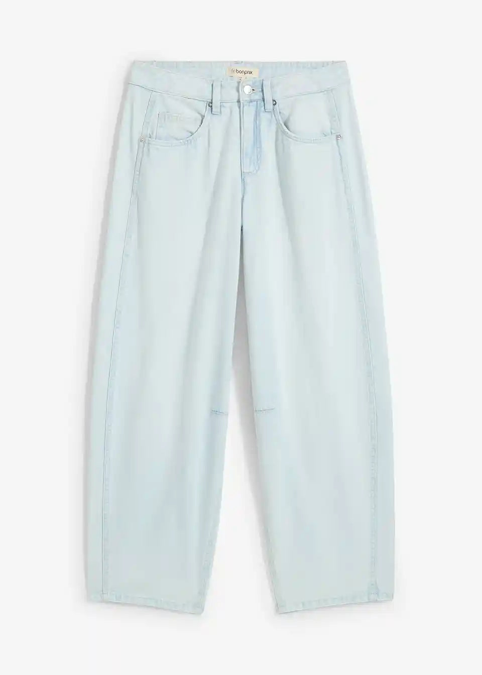 Balonaste kavbojke s srednje visokim pasom iz mehkega materiala v krajšem kroju