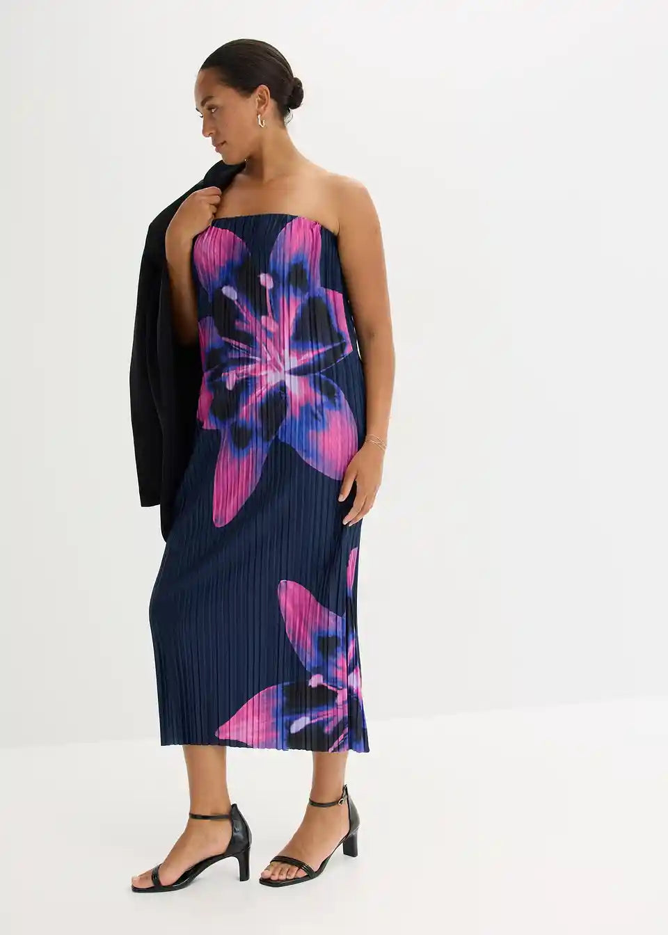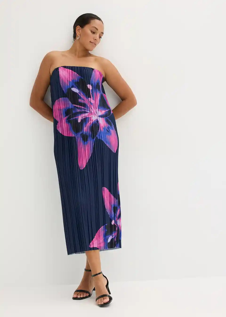 Moderna in ženstvena: Bandeau obleka iz finega satena s plisejem