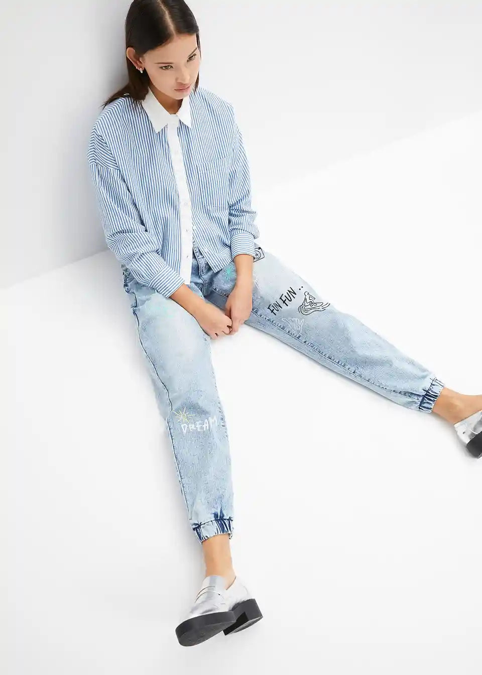 Balonaste kavbojke s srednje visokim udobnim pasom