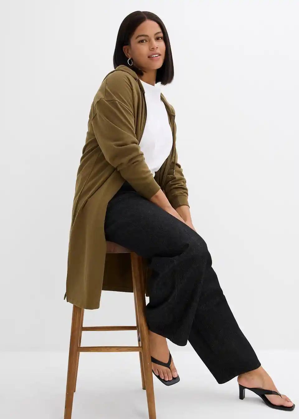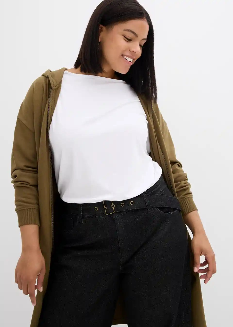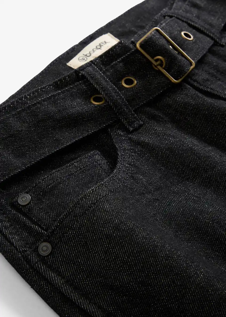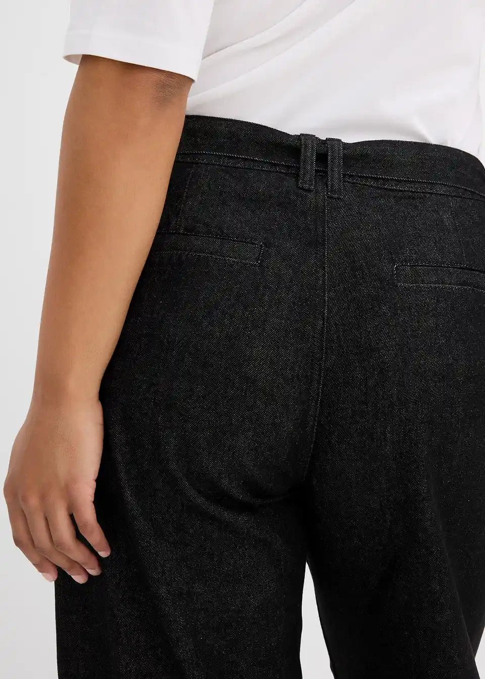 5-žepne jeans hlače iz močnega bombažnega denima, ki je na začetku nekoliko trd, a z nošenjem postane mehkejši in bolj udoben. Sproščen kroj z voluminozno, zaobljeno hlačnico od bokov do stegen in ožjim krojem spodaj. Dolga dolžina, ki ustvari rahel stacking učinek pri stopalu. Zaradi spranega videza imajo jeans hlače moden used učinek. Značilna je rahla izguba barve med nošenjem in pranjem.