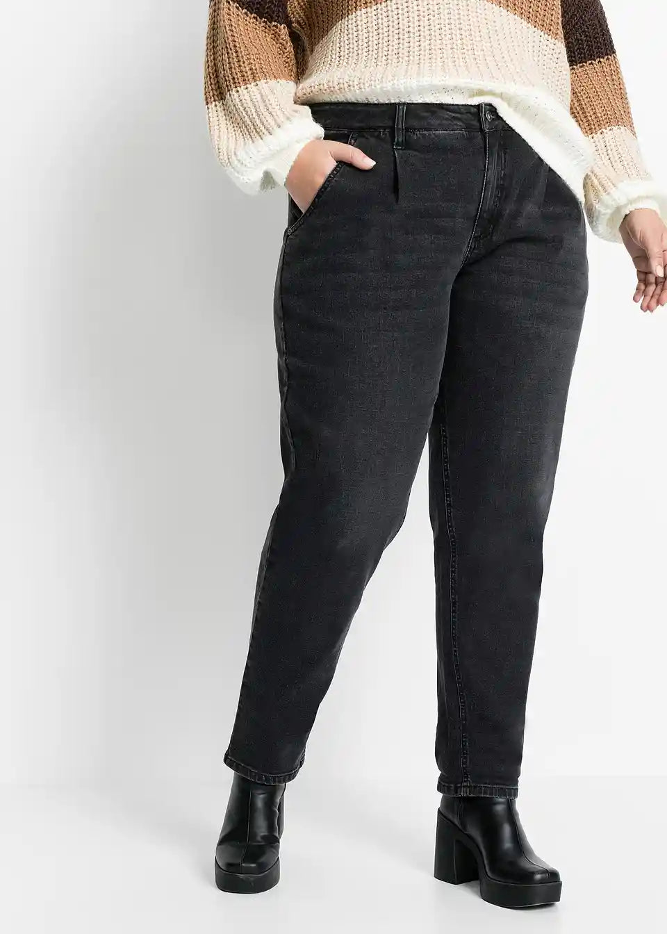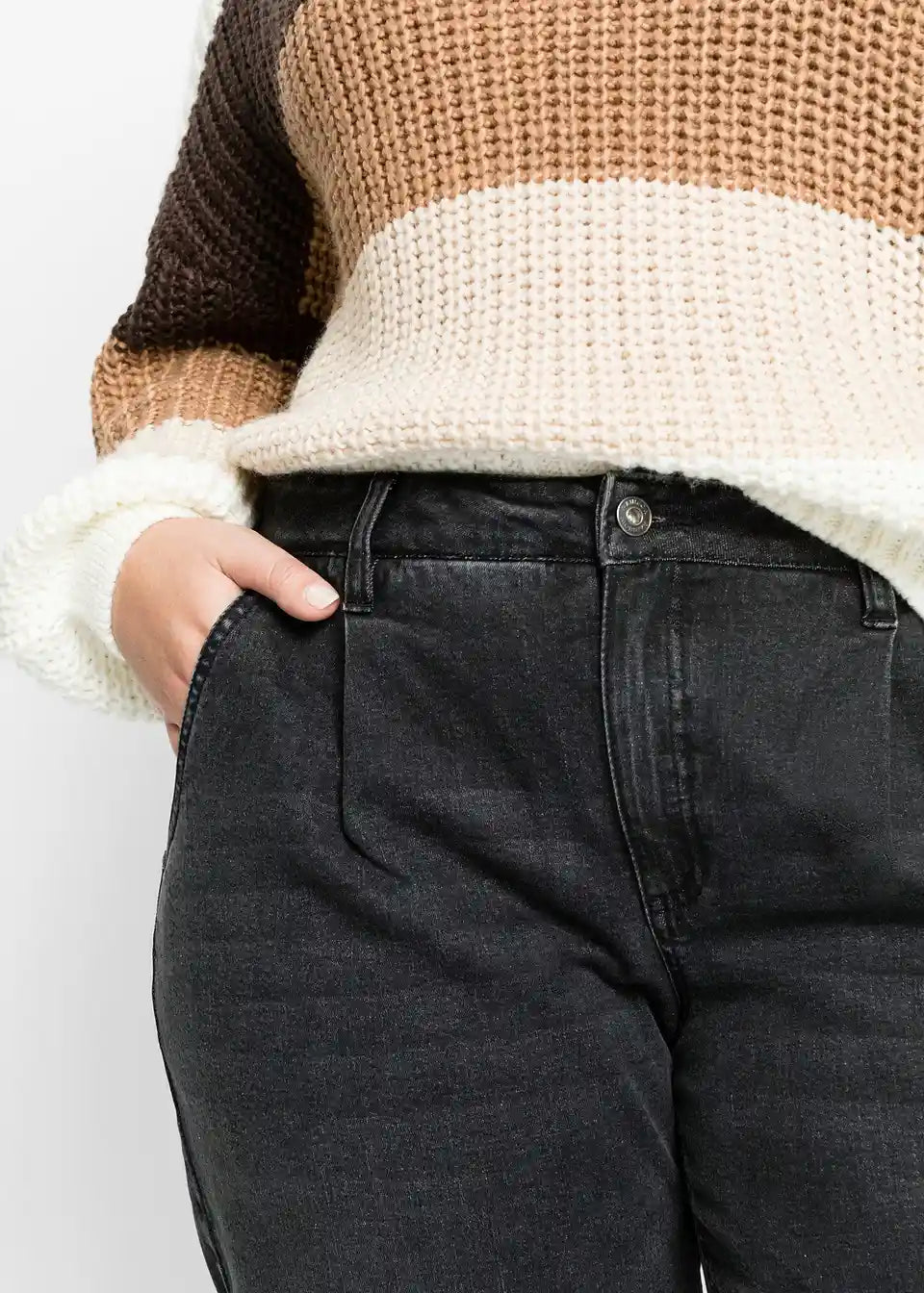 Sproščene, široko krojene kavbojke s plisiranim pasom