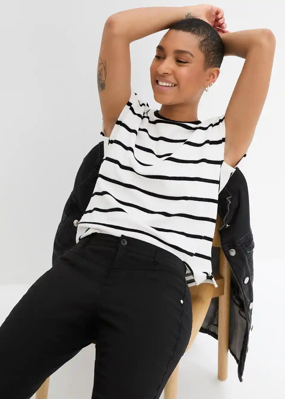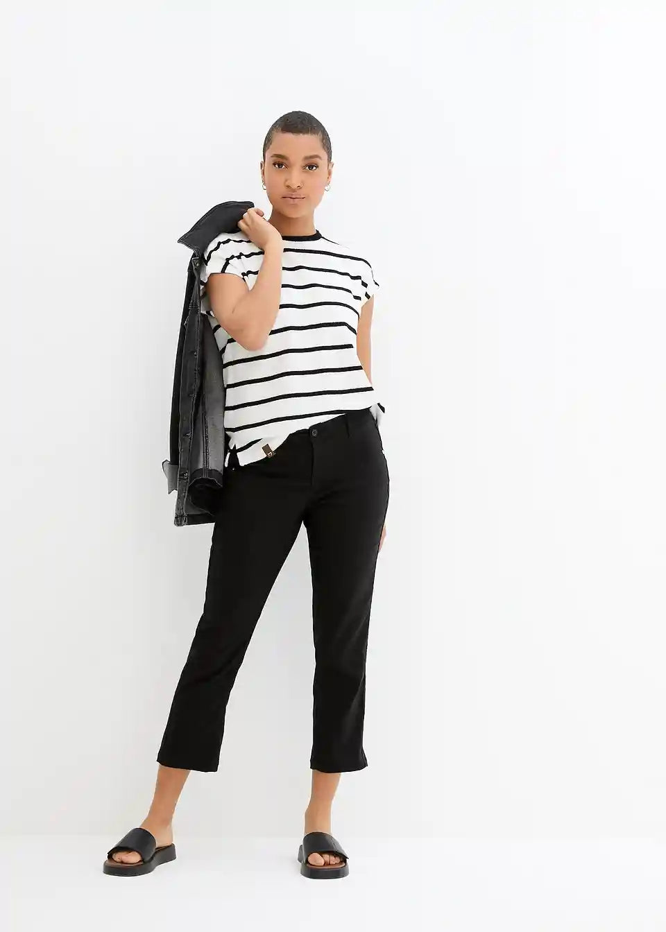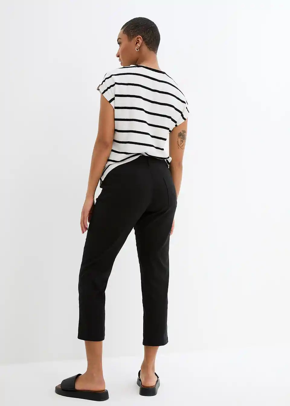 Vsestranske Bengalin hlače - izjemna elastičnost in posebno stabilne oblike. Material je koži prijazna, mehka viskoza, ki v kombinaciji z elastičnimi poliestrskimi vlakni zagotavlja visoko udobje nošenja in svilnat sijaj. Zaradi poglobljenega pasu je trebušni predel videti bolj raven, boki pa ožji.