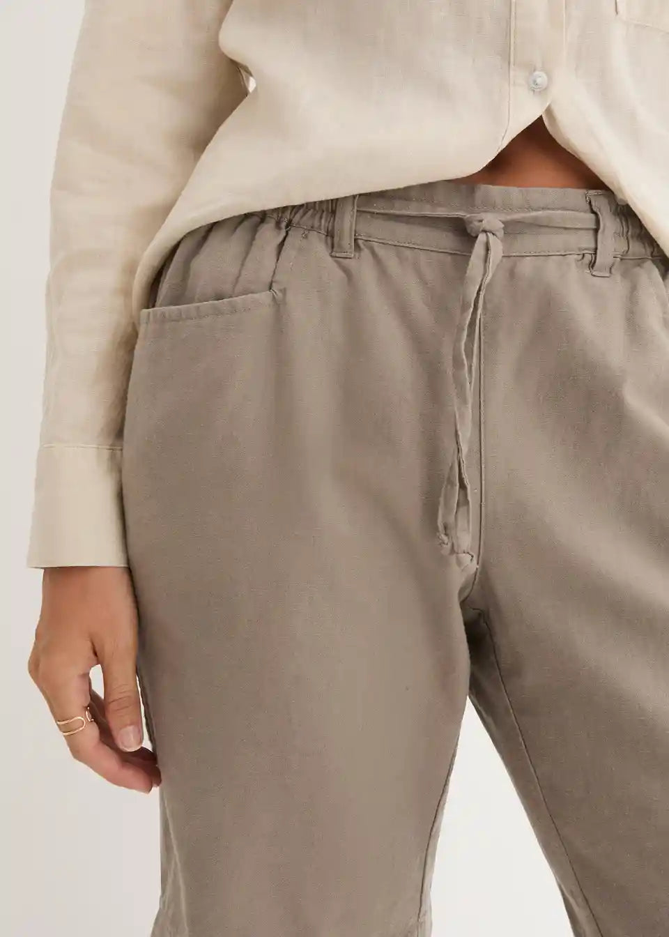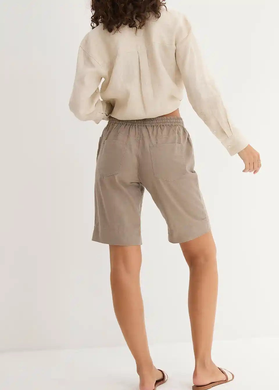 Lahkoten material naredi te bermuda hlače iz lana znamke bpc idealne za toplejše dni. Z zavihanim robom je mogoče prilagoditi dolžino mehko opranih bermuda hlač. Delno elastičen pas z vrvico omogoča nastavitev širine in zagotavlja udobno nošenje. Dodatni praktični elementi vključujejo dva žepa na sprednji strani in našite zadnje žepe.