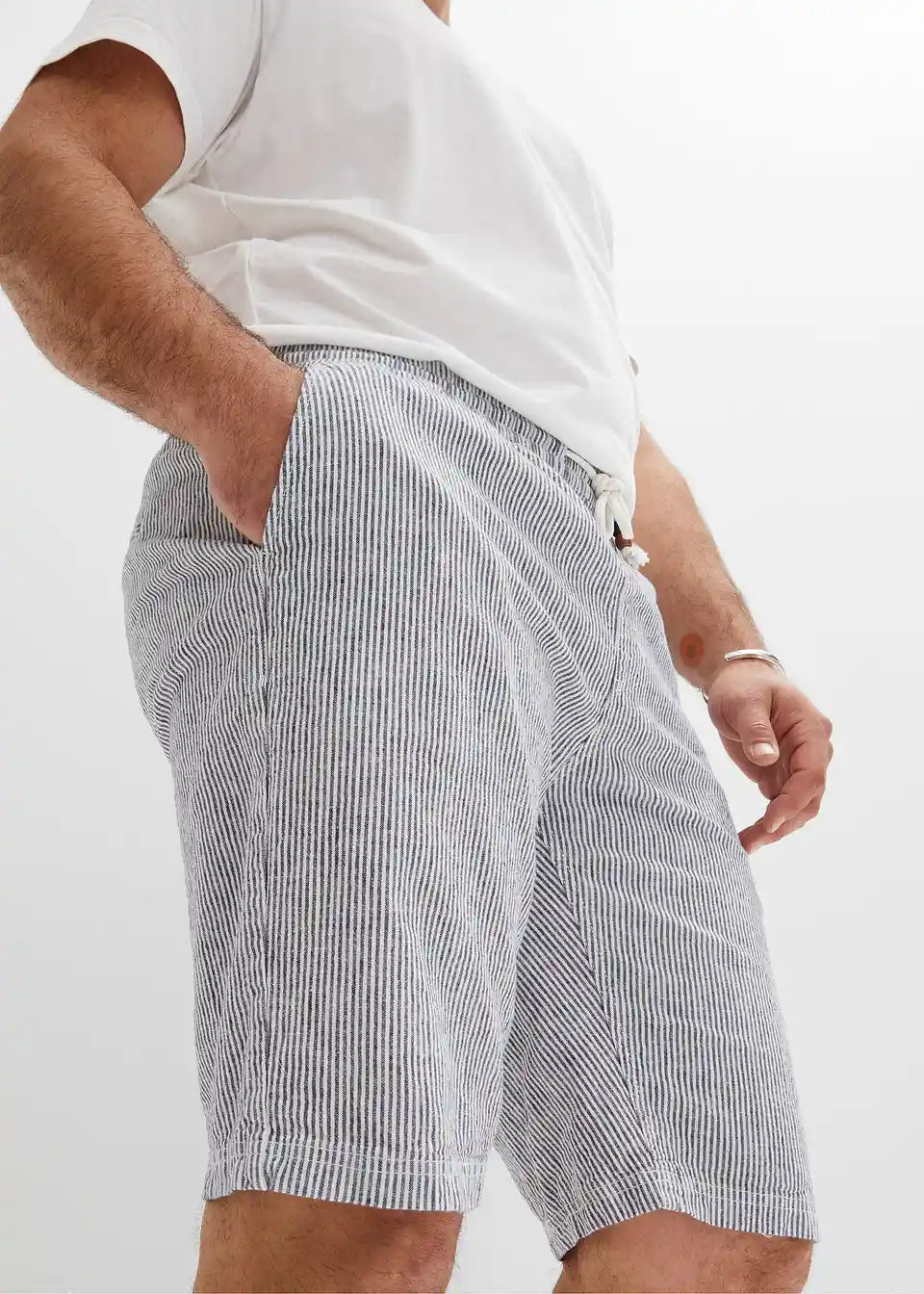 Moške bermuda hlače iz lanene mešanice s črtastim videzom