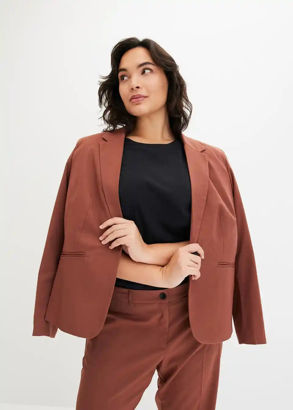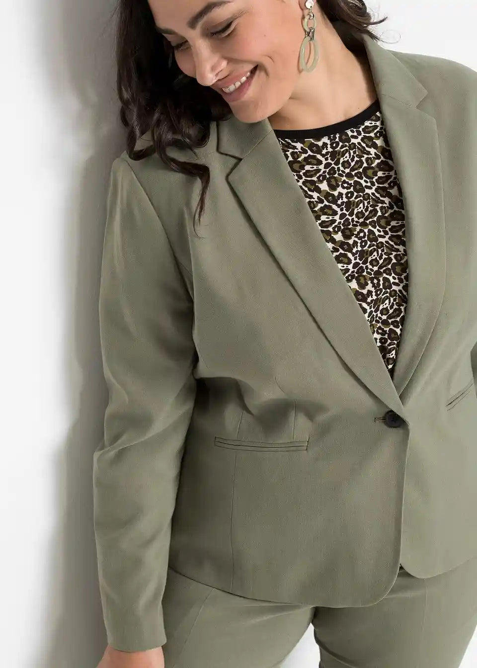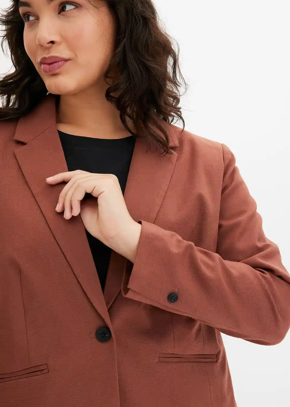 Blazer s paspuliranimi žepi v oprijetem kroju. Oba rokava sta zaključena z gumbom. Dolžina pri vel. 38 pribl. 58 cm.