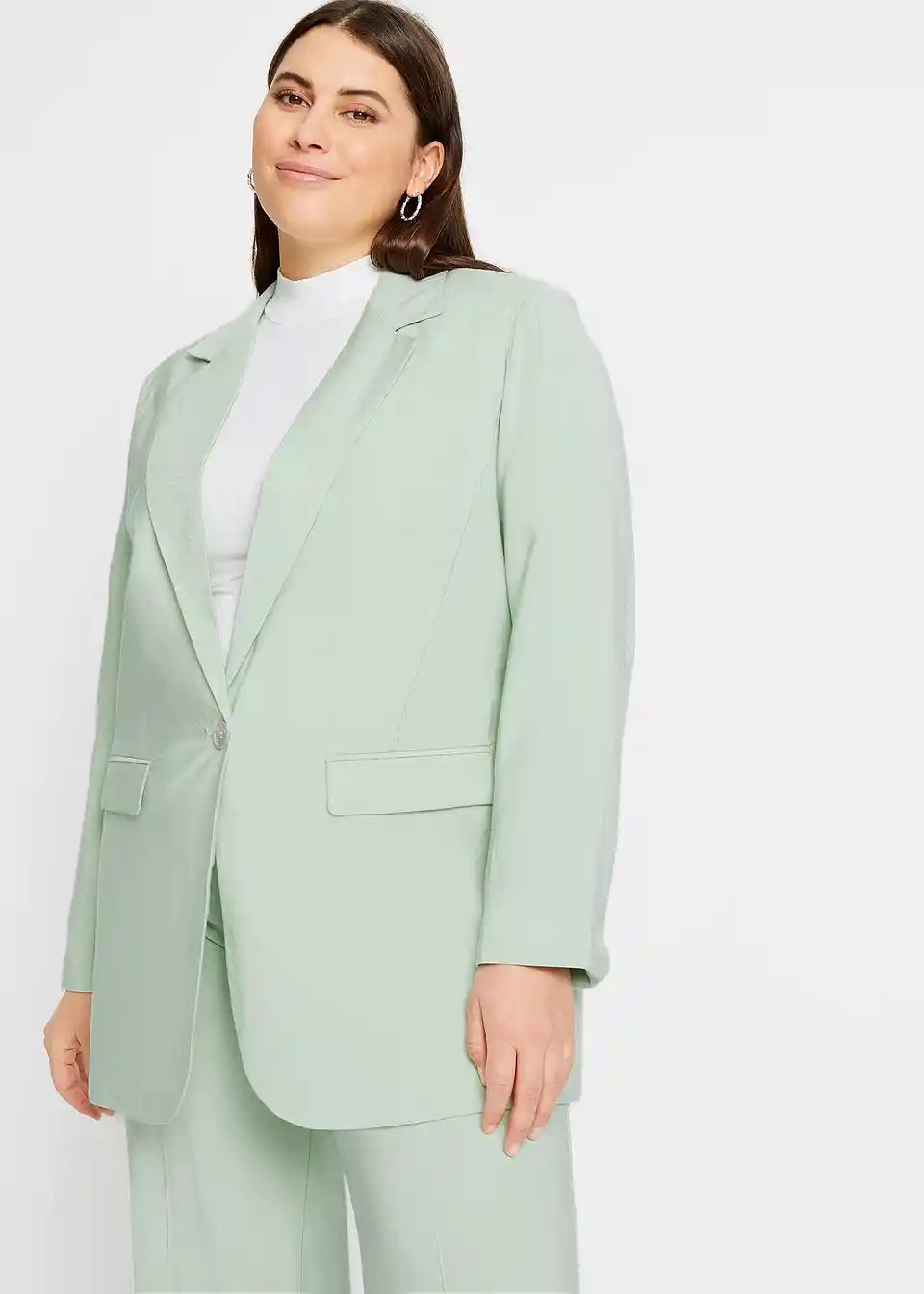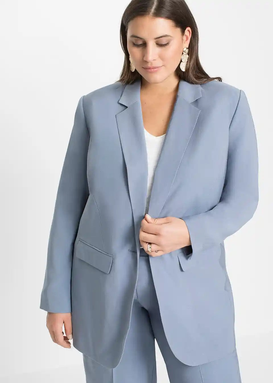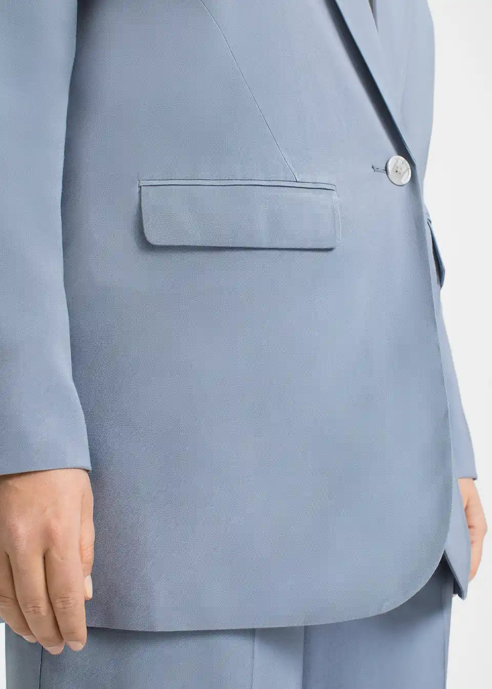Eleganten blazer, zapenjanje z okrasnim gumbom s posnetkom iz imitacije roga.
