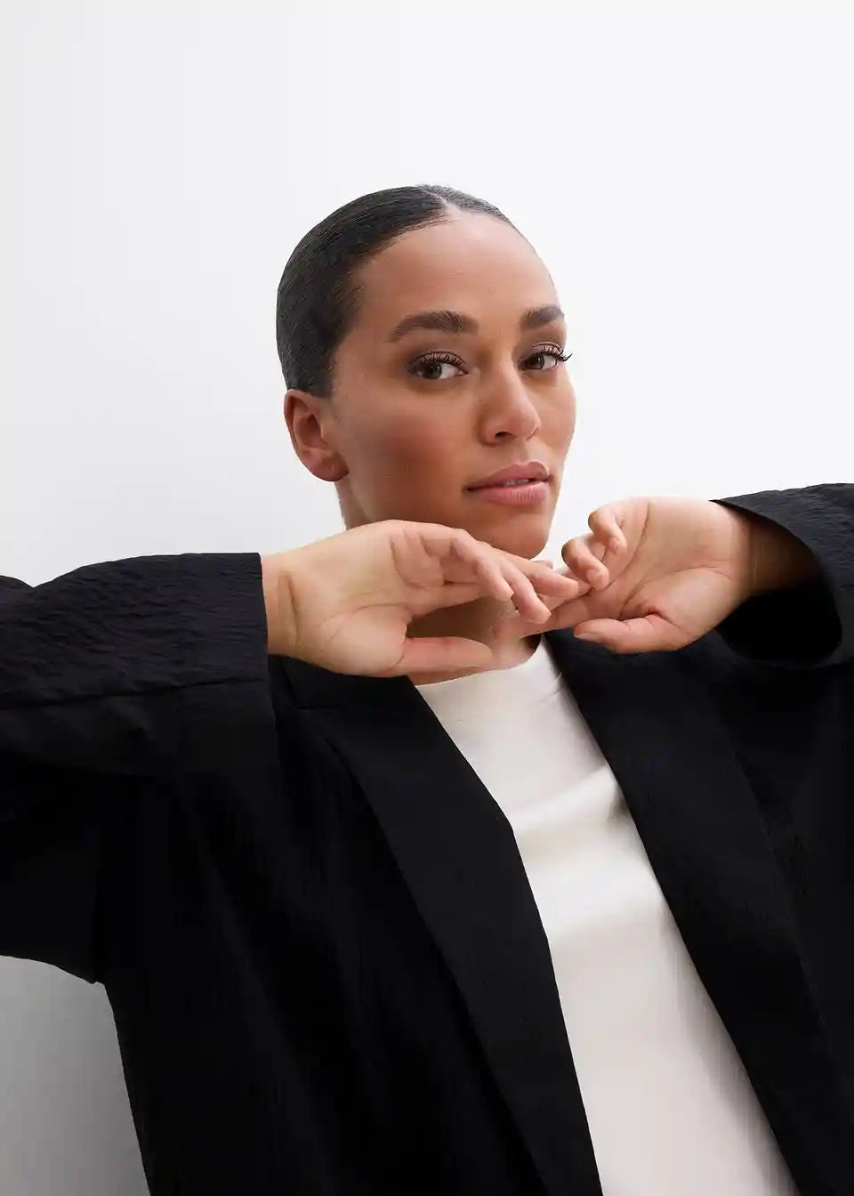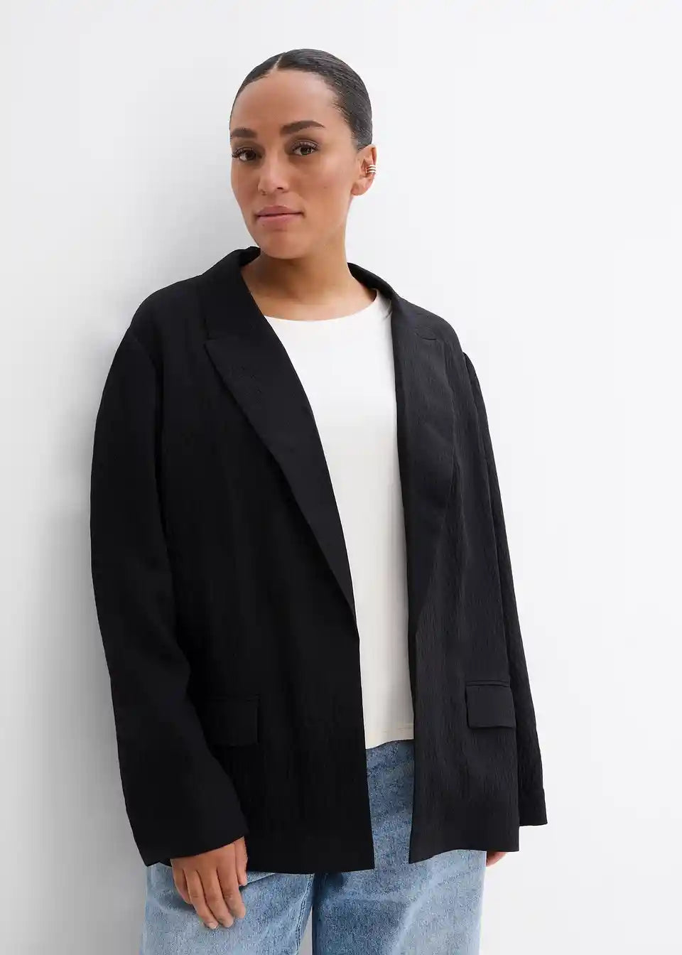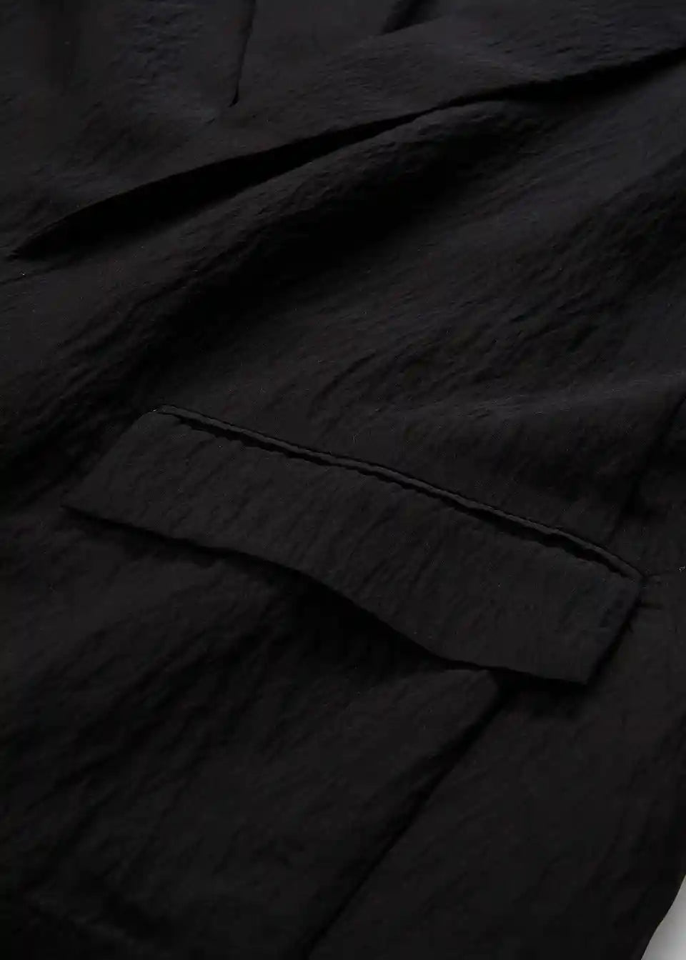 Blazer z rever ovratnikom in dolgimi rokavi ter z žepi s preklopom spredaj iz strukturiranega crinkle materiala