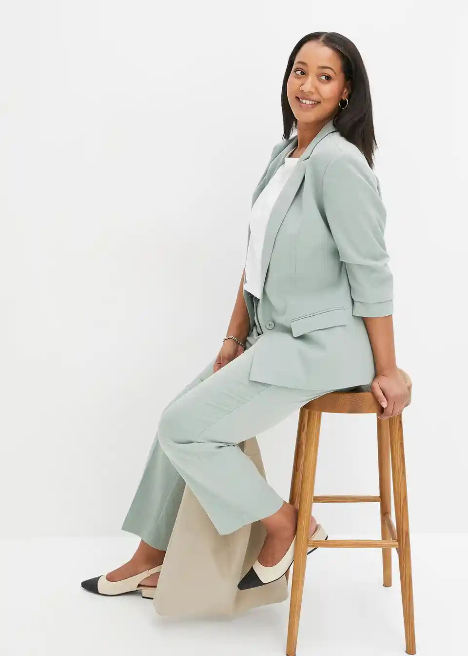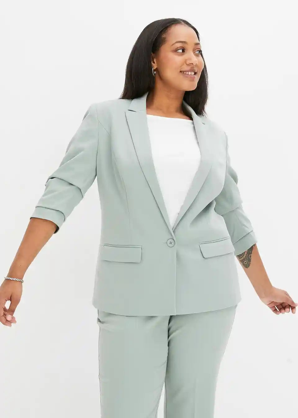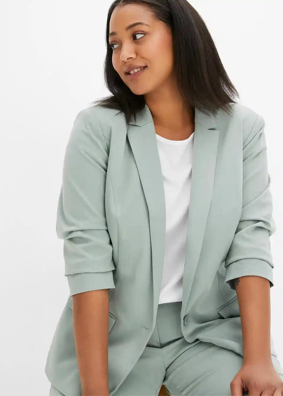 Eleganten blazer z modernim nabiranjem na rokavih