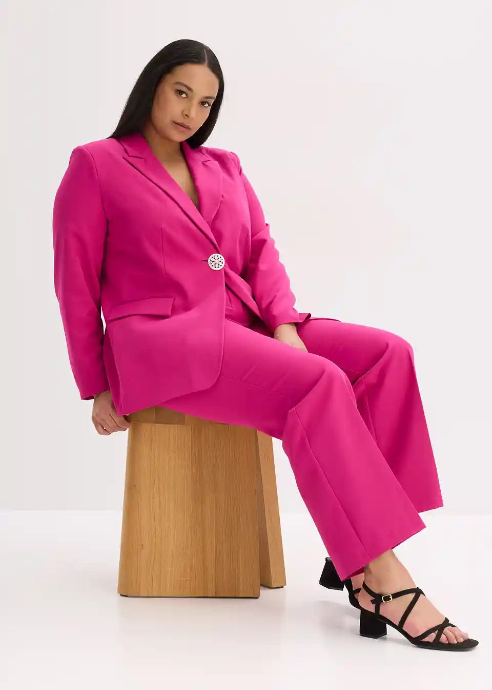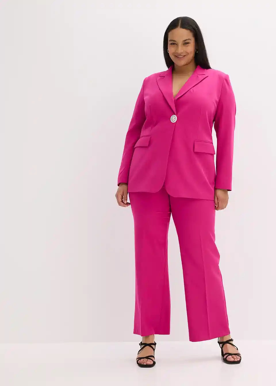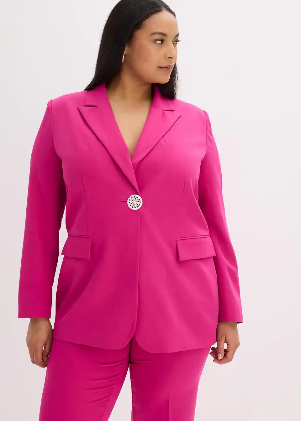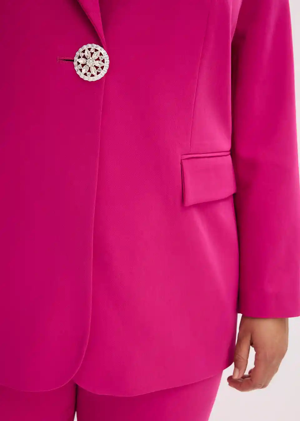 Moderen in ženstven: blazer z rahlo telirano obliko in okrasnim gumbom z okrasnimi kamenčki