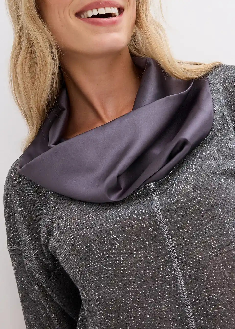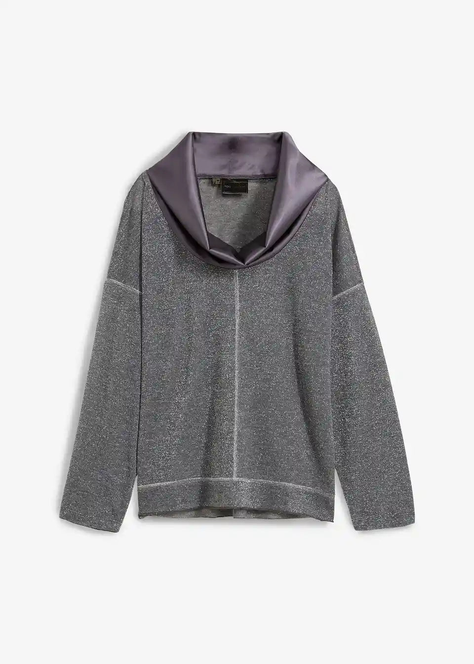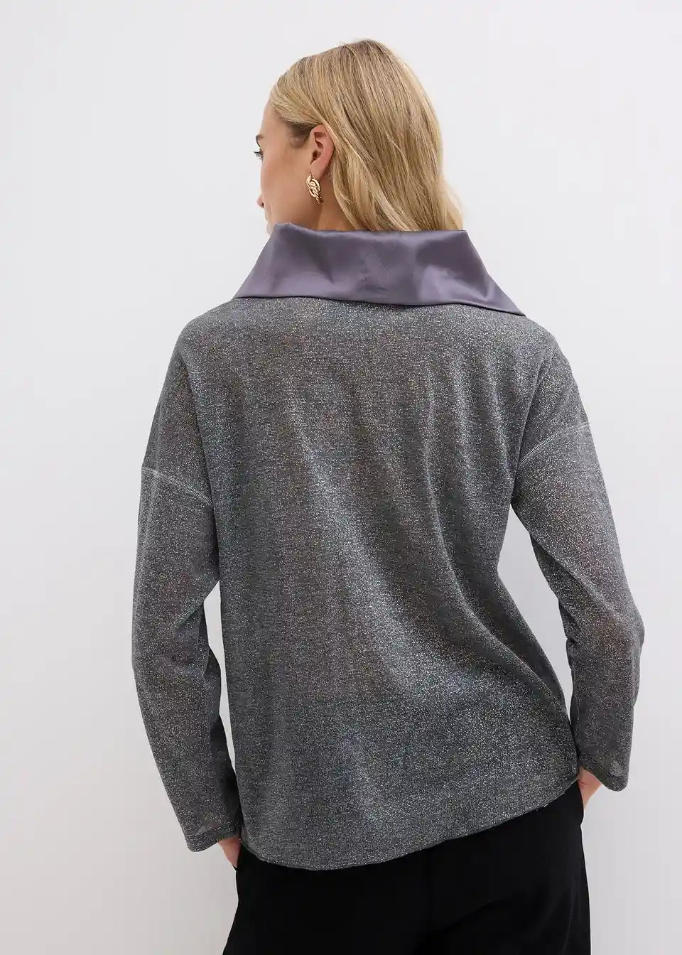 Udobna in elegantna: Majica z dolgimi rokavi iz bleščeče preje in satenastim, elegantnim ovratnikom
