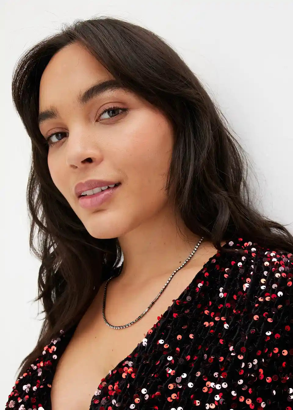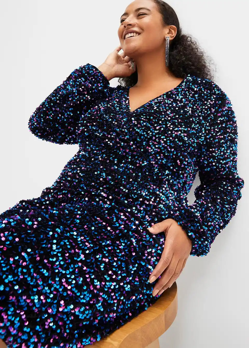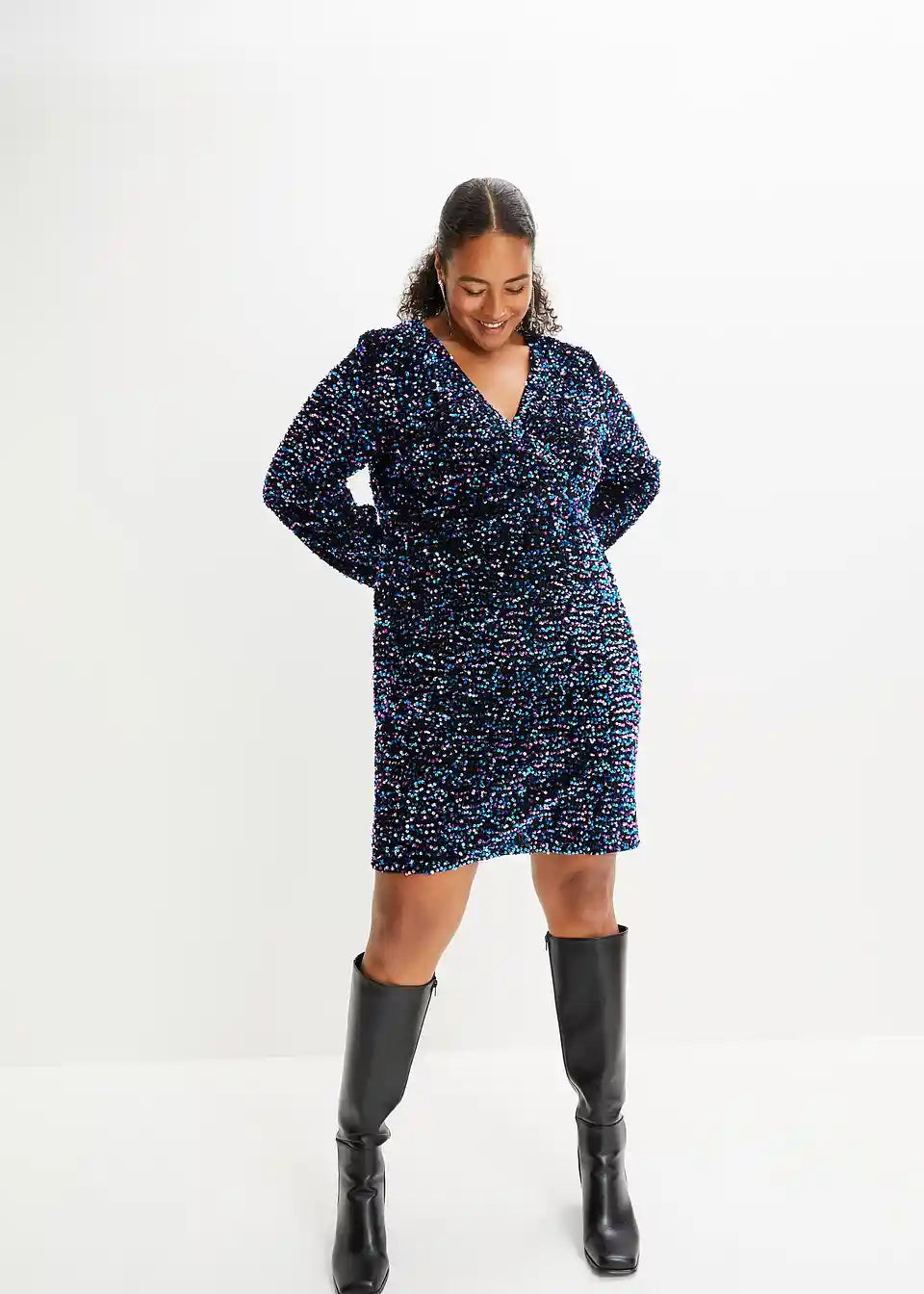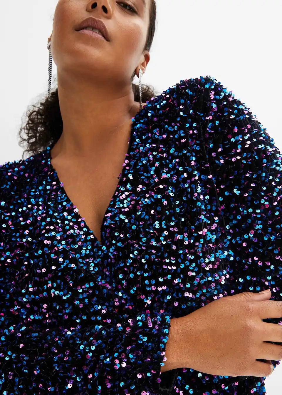 Ženska obleka z bleščicami v ovitem videzu