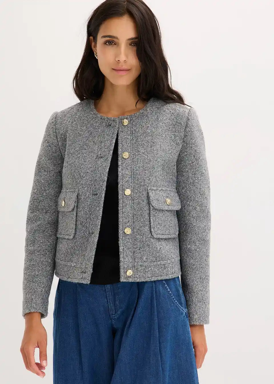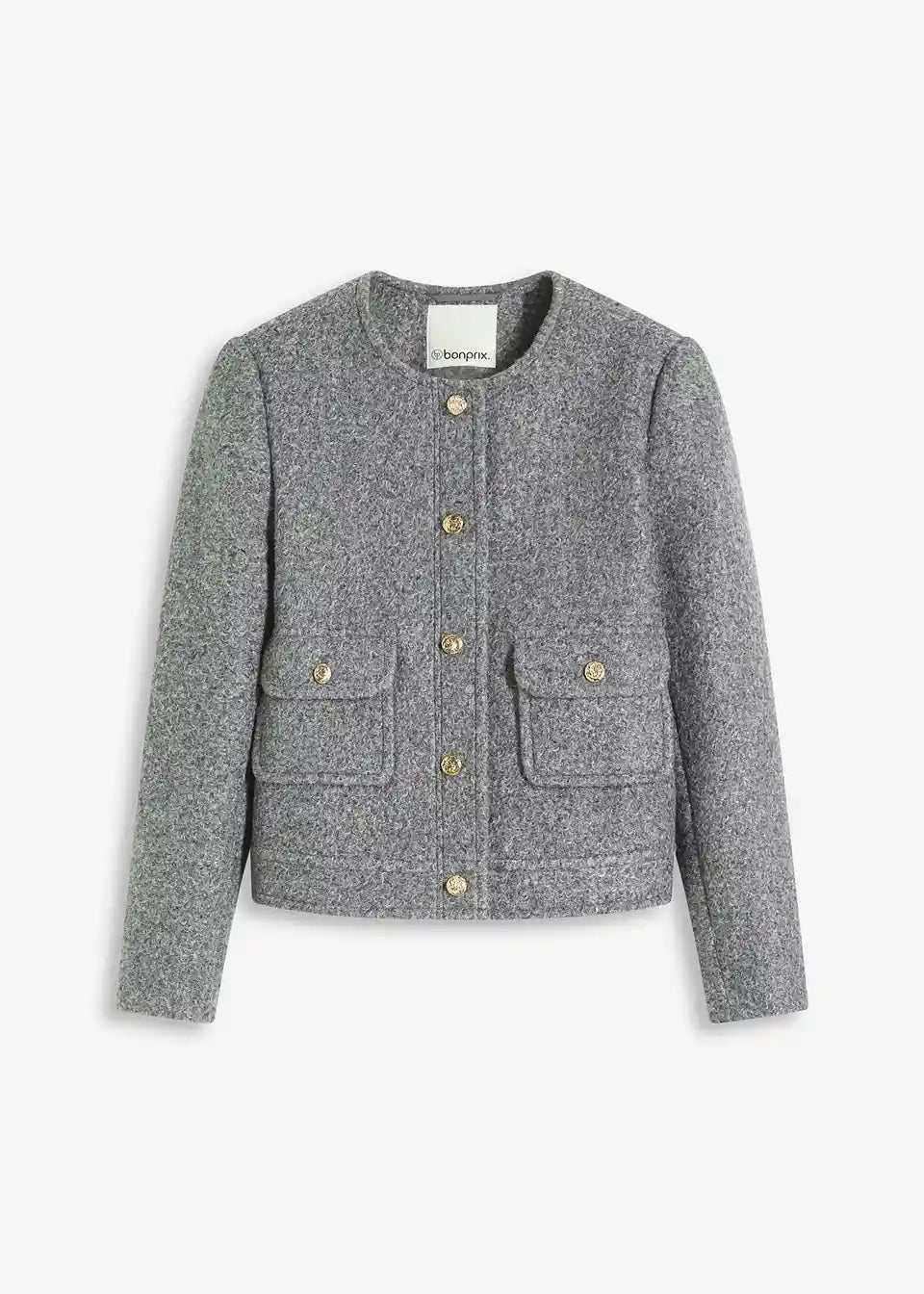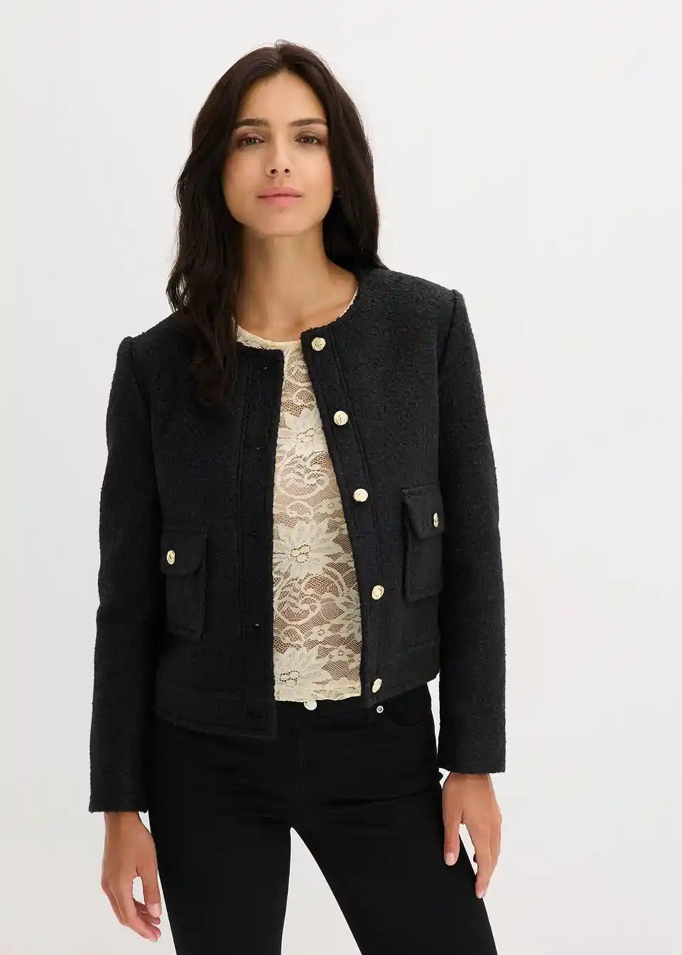 Kratek blouson iz strukturiranega Bouclé z našitimi žepi