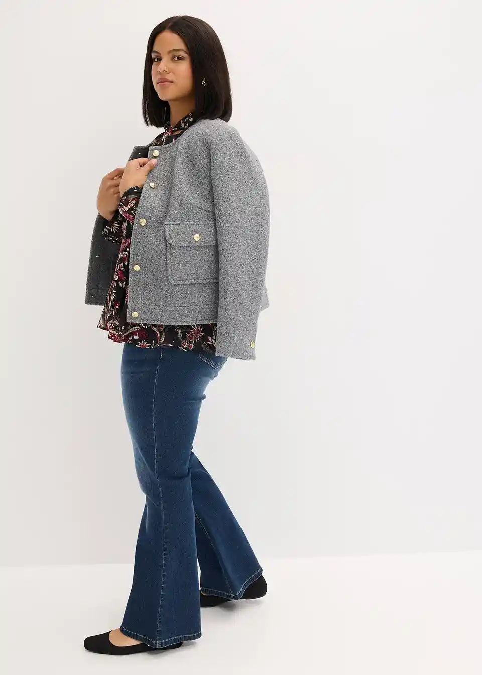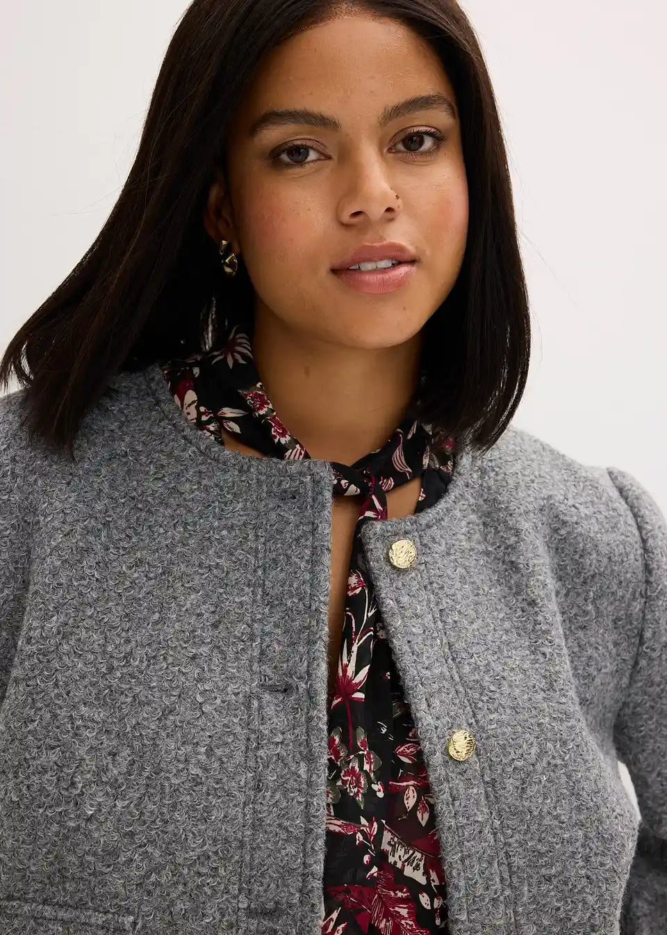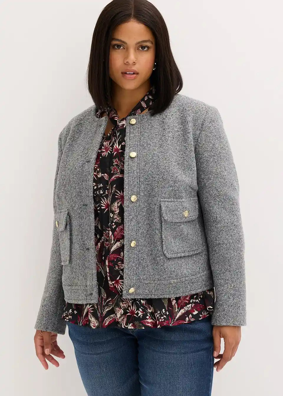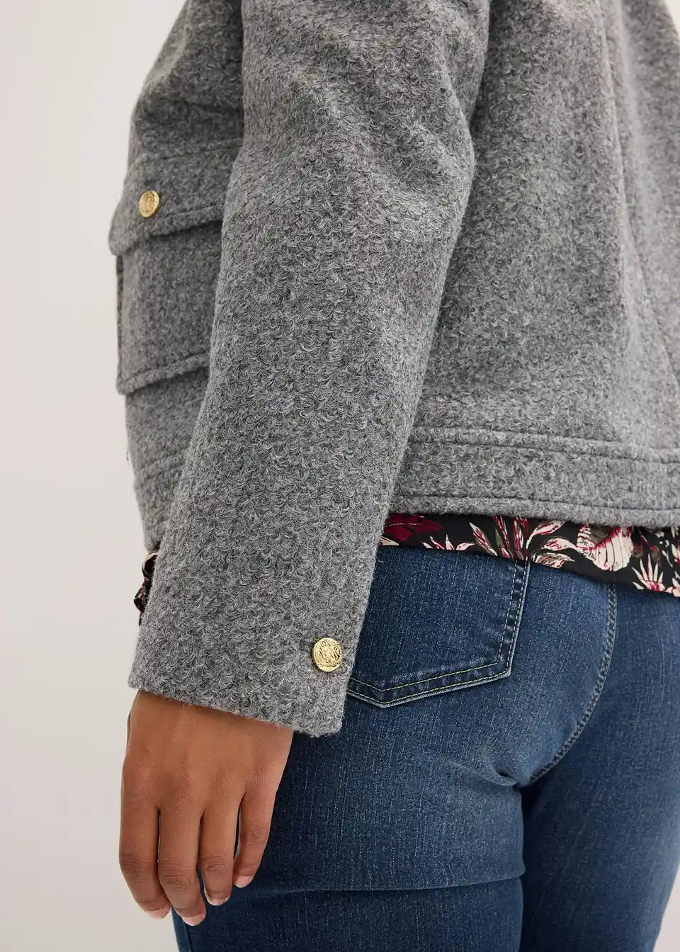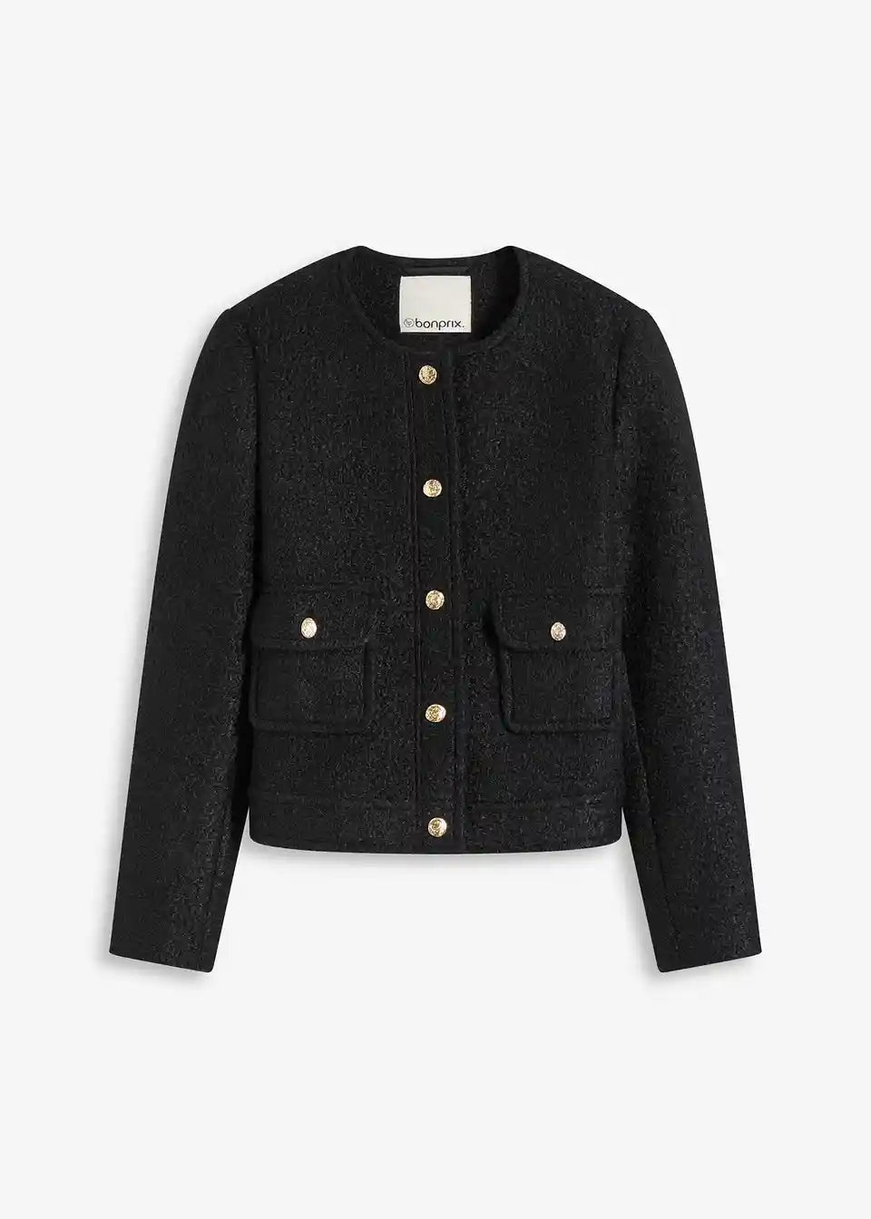Kratek blouson iz strukturirane tkanine Bouclé z našitimi žepi