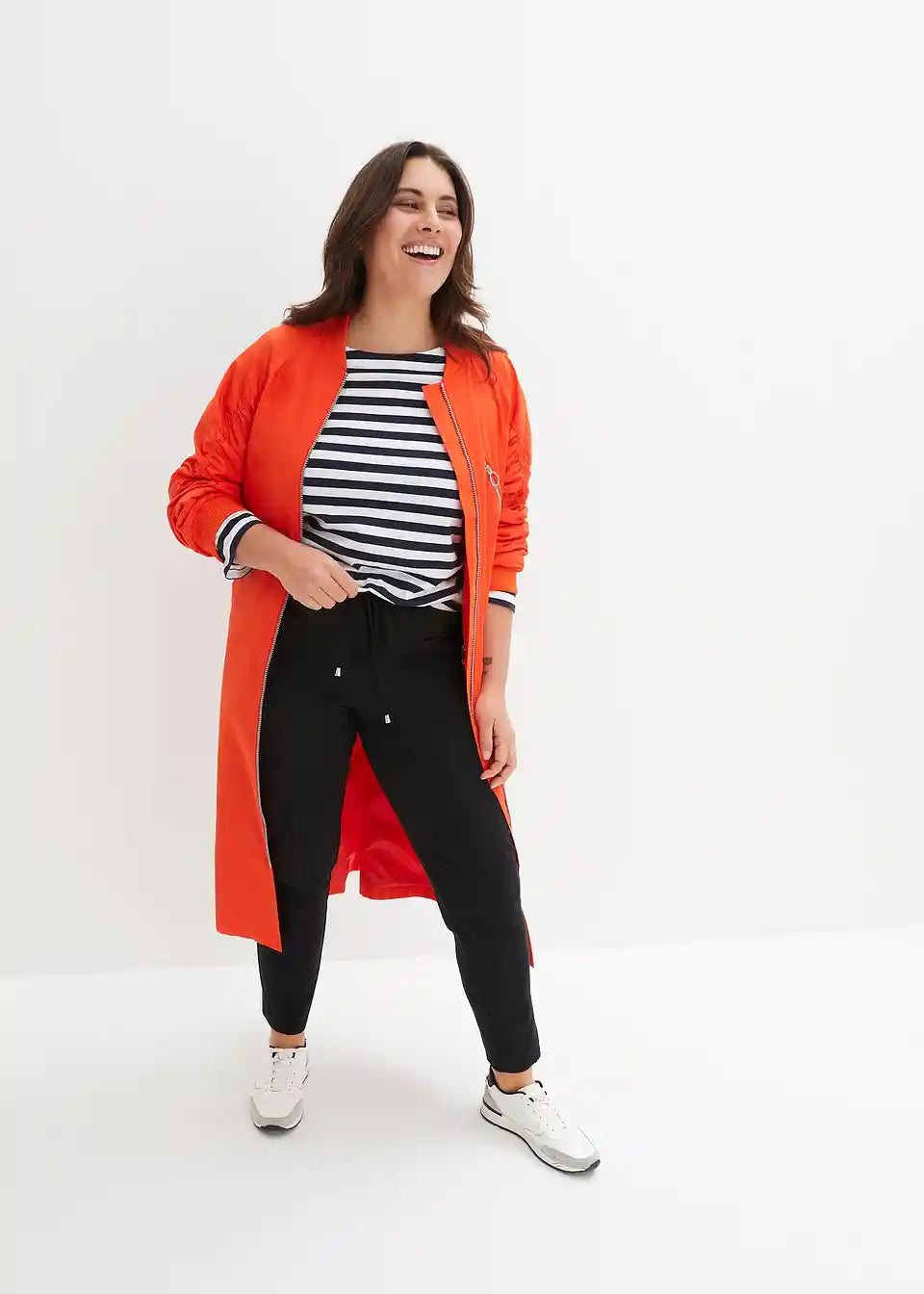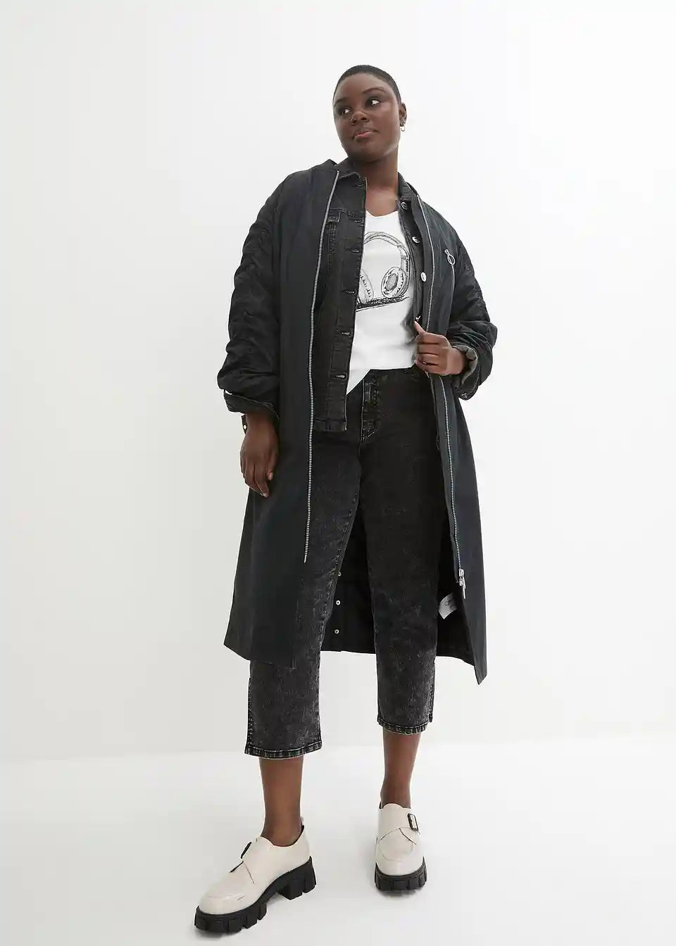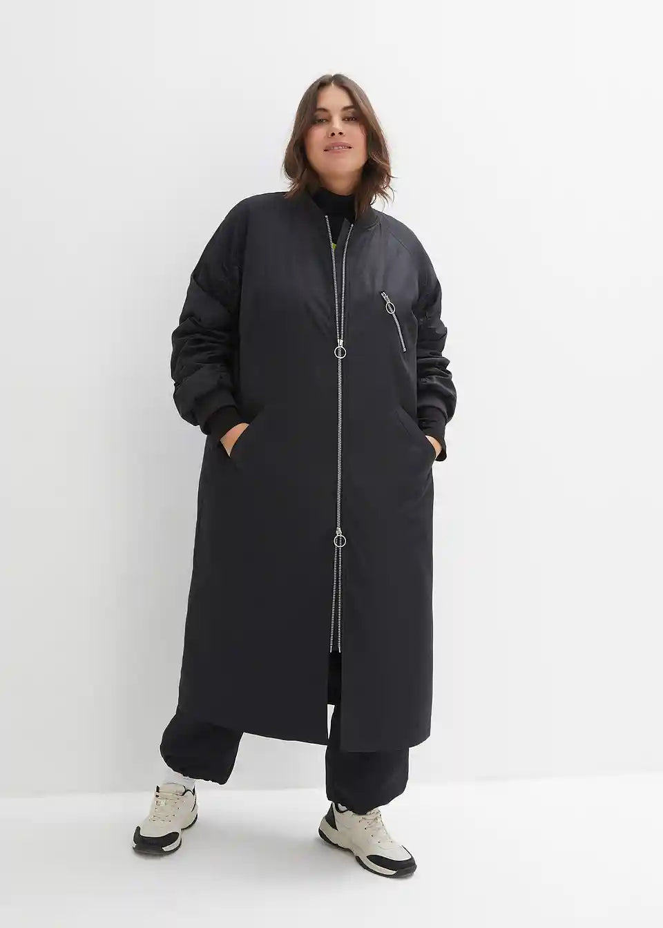 Ležeren, moderen plašč z naborkom na rokavu, pletenimi patenti in okrasnimi žepi