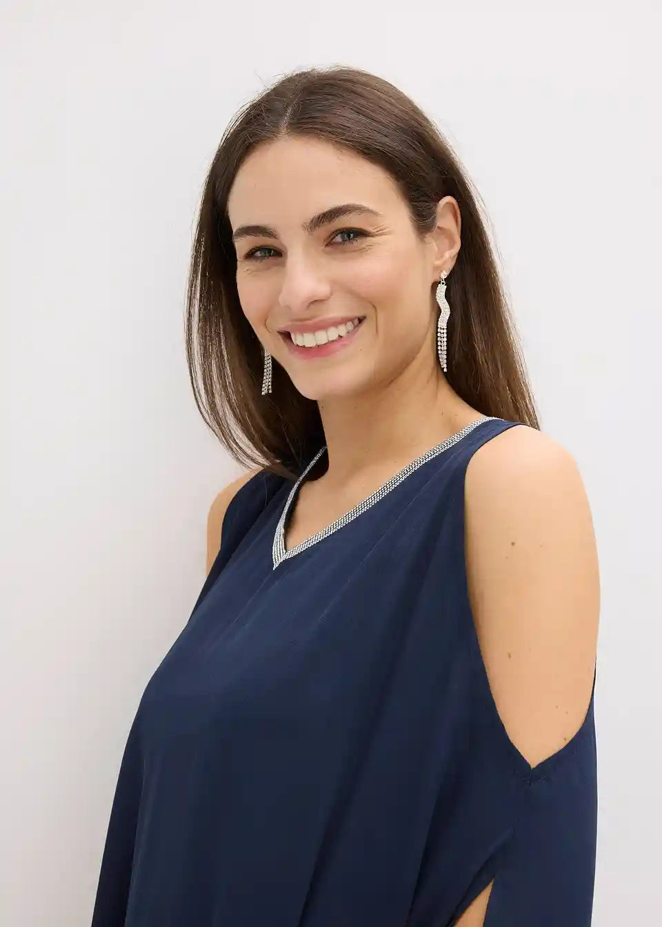 Elegantna in moderna: bluza z izrezi in okrasnimi kamenčki na izrezu