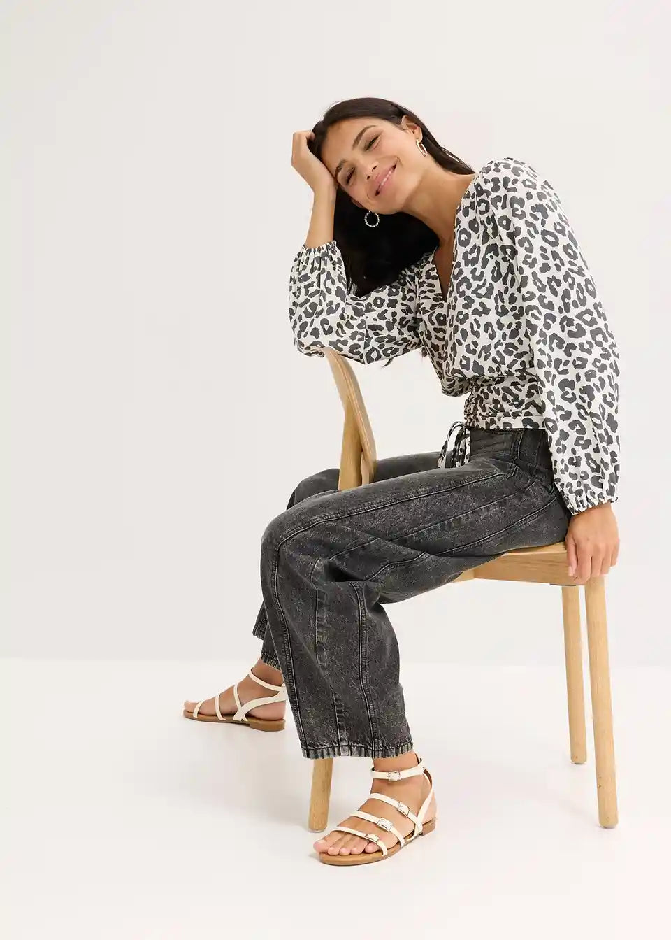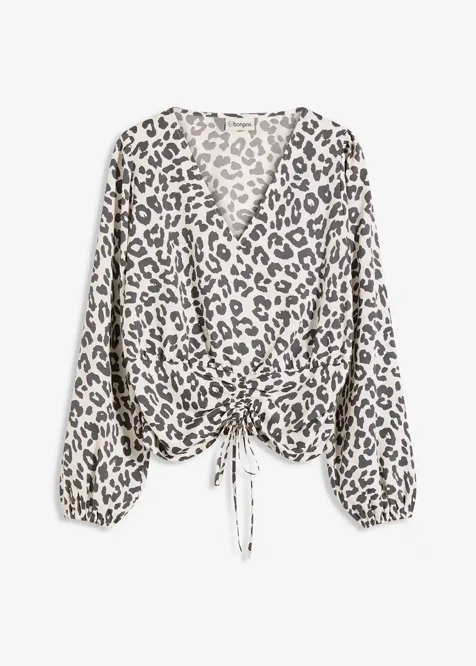 Bluza z leopardjim potiskom s čudovitim poudarkom na pasu zaradi nabiranja