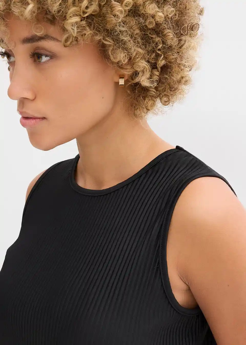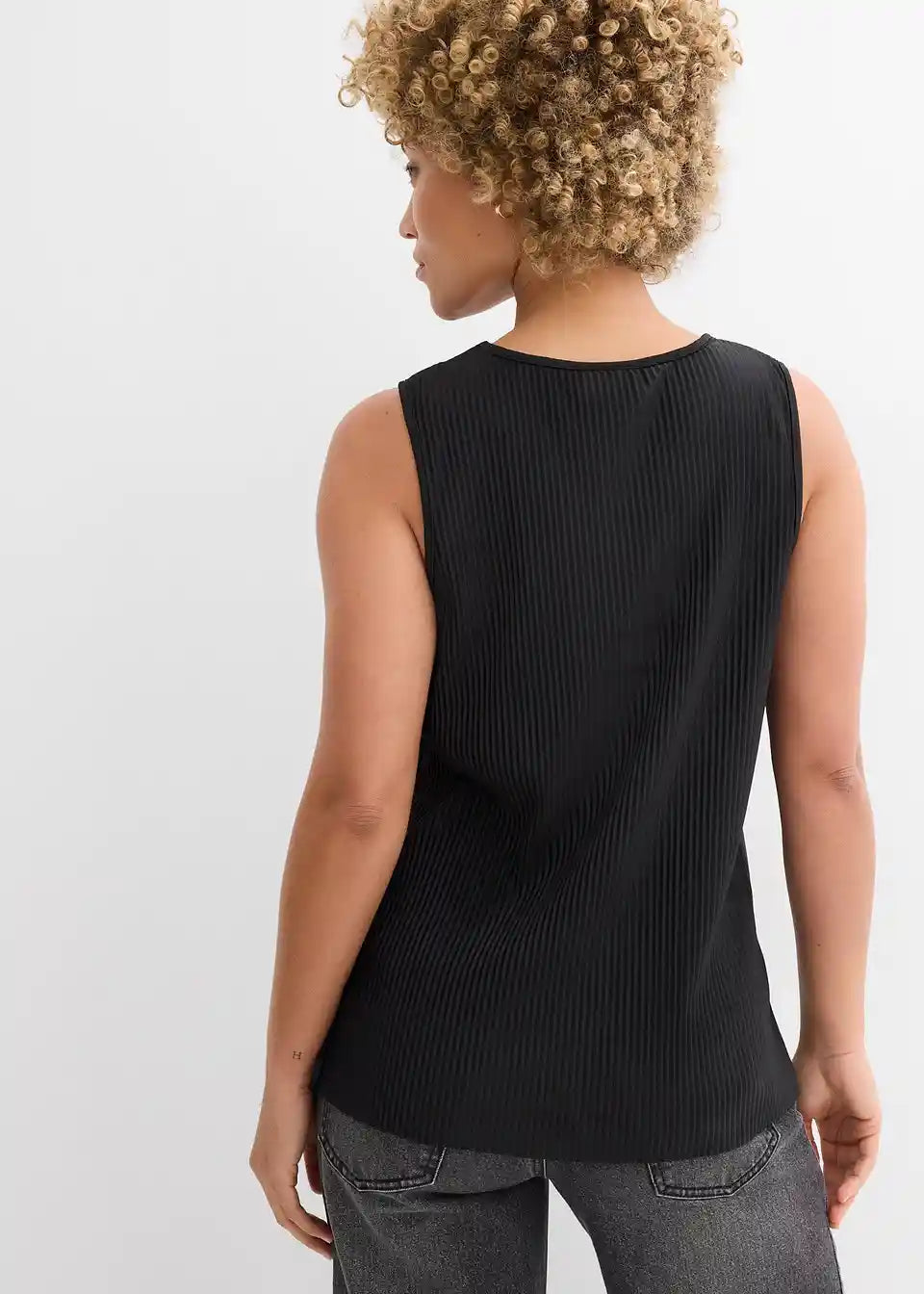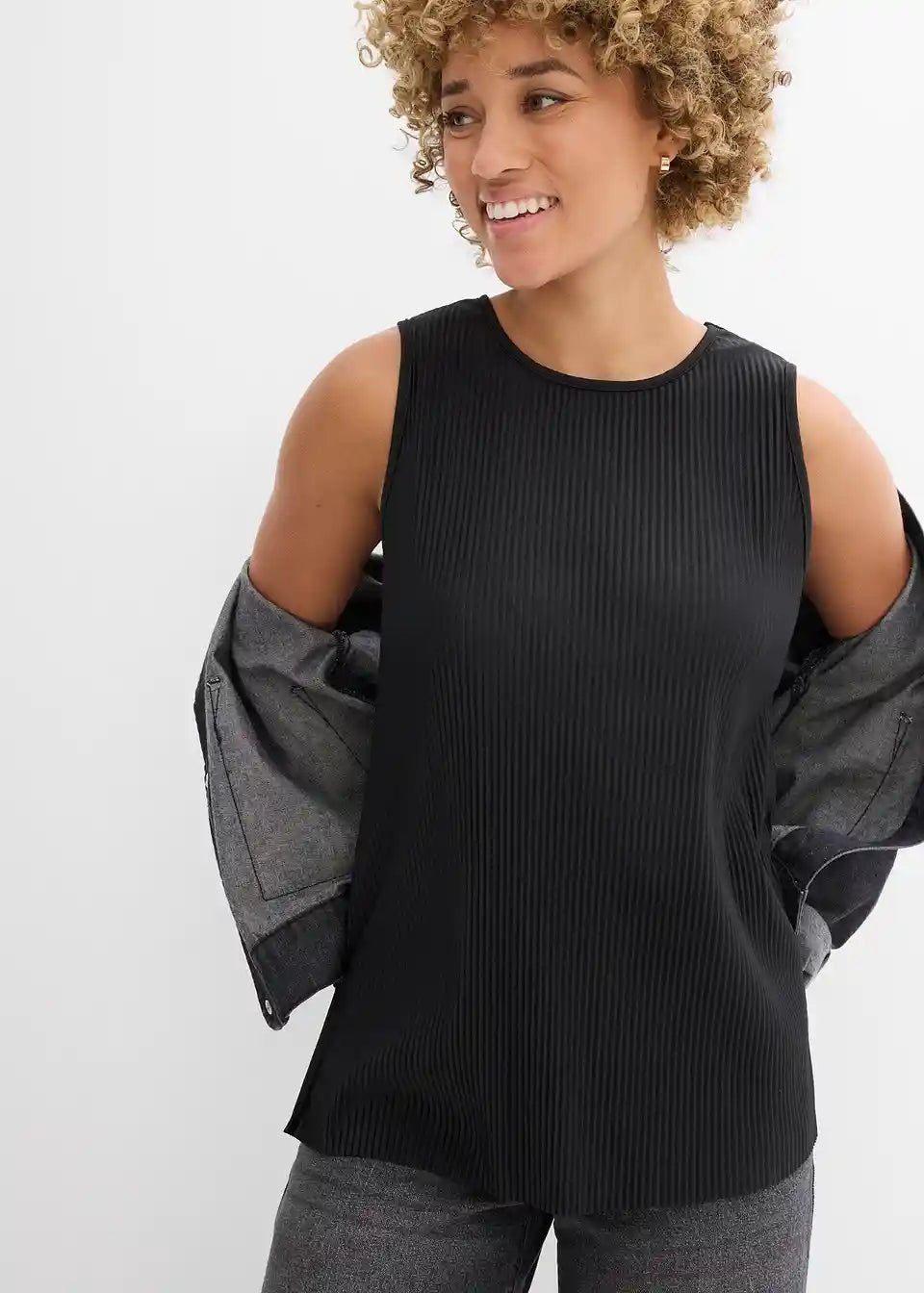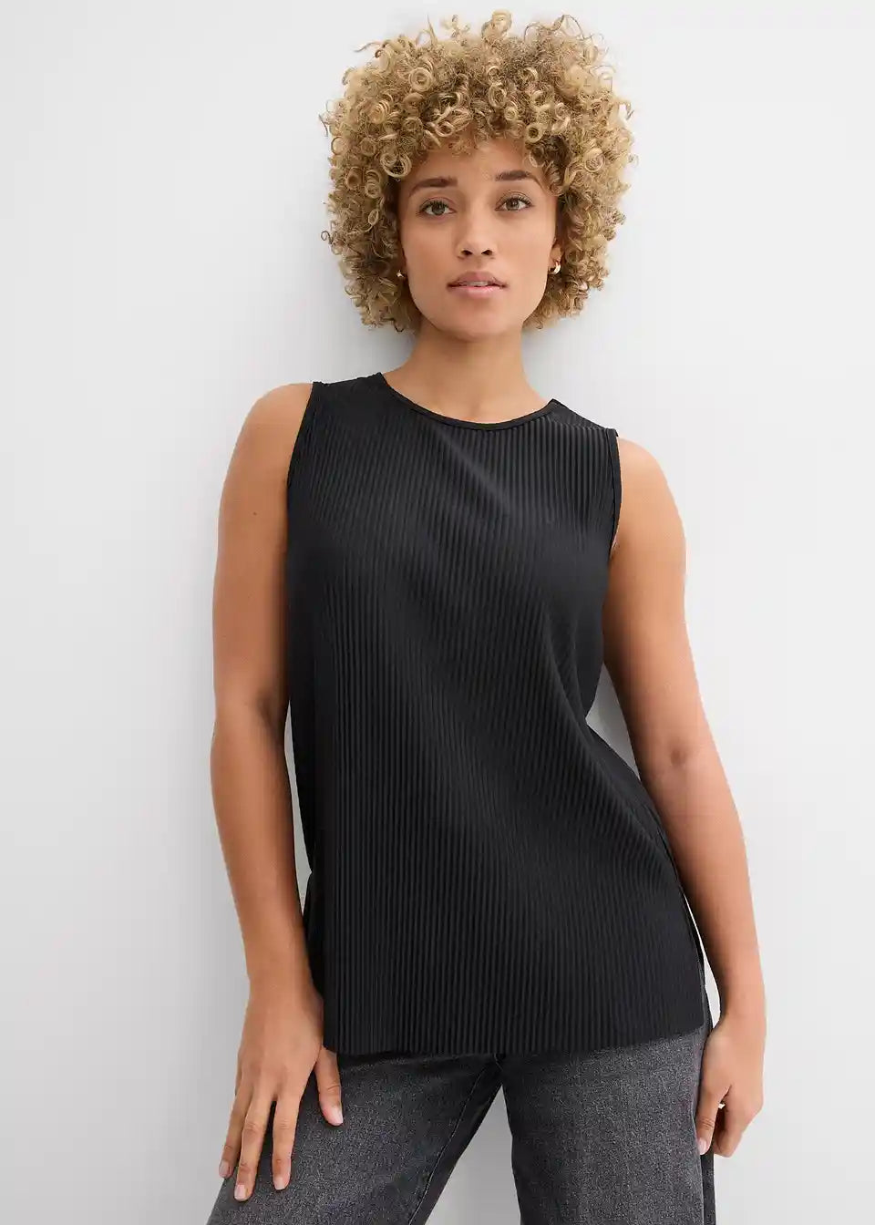 Plisirana bluza brez rokavov v rahli A-kroju s stranskimi razporki
