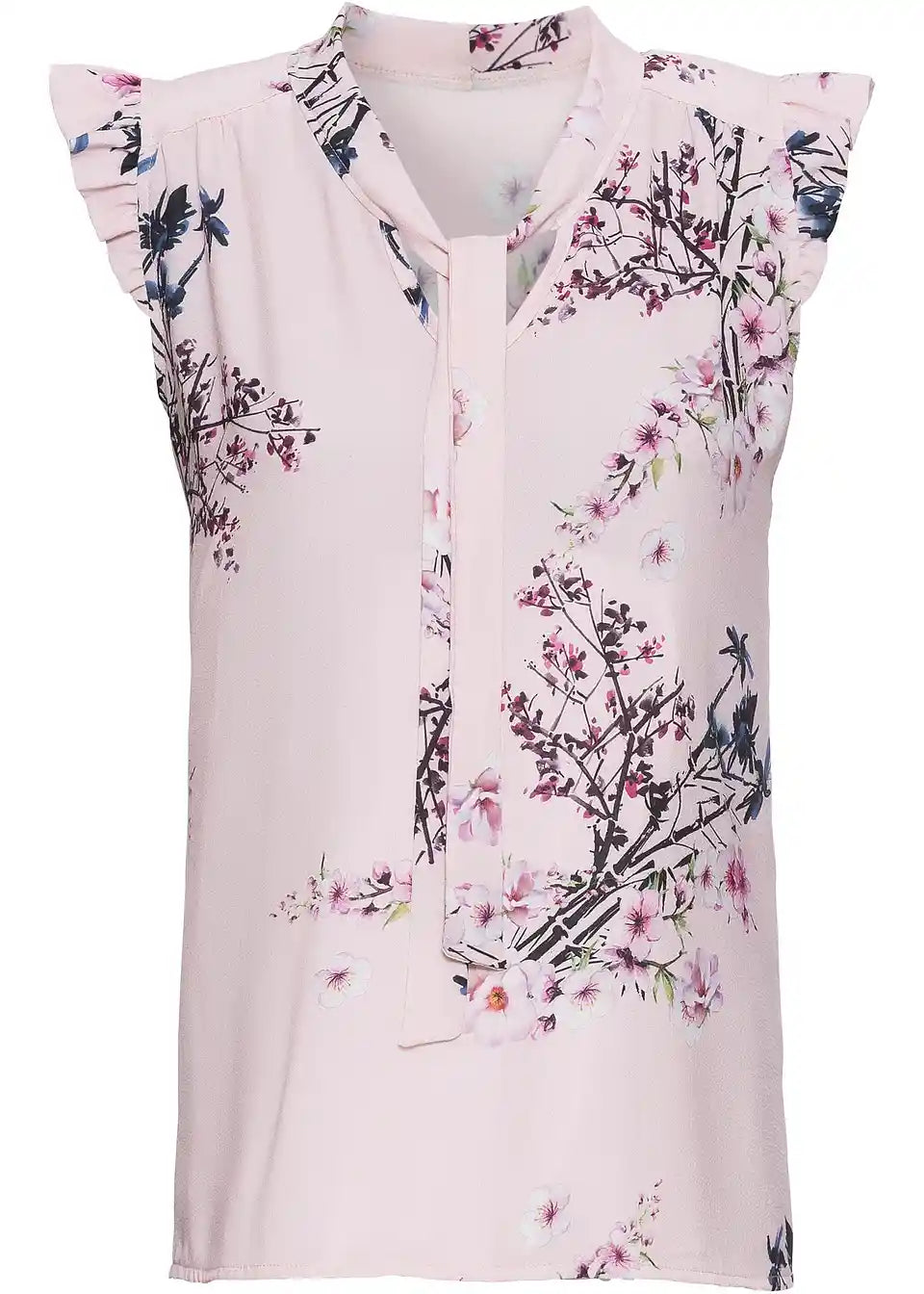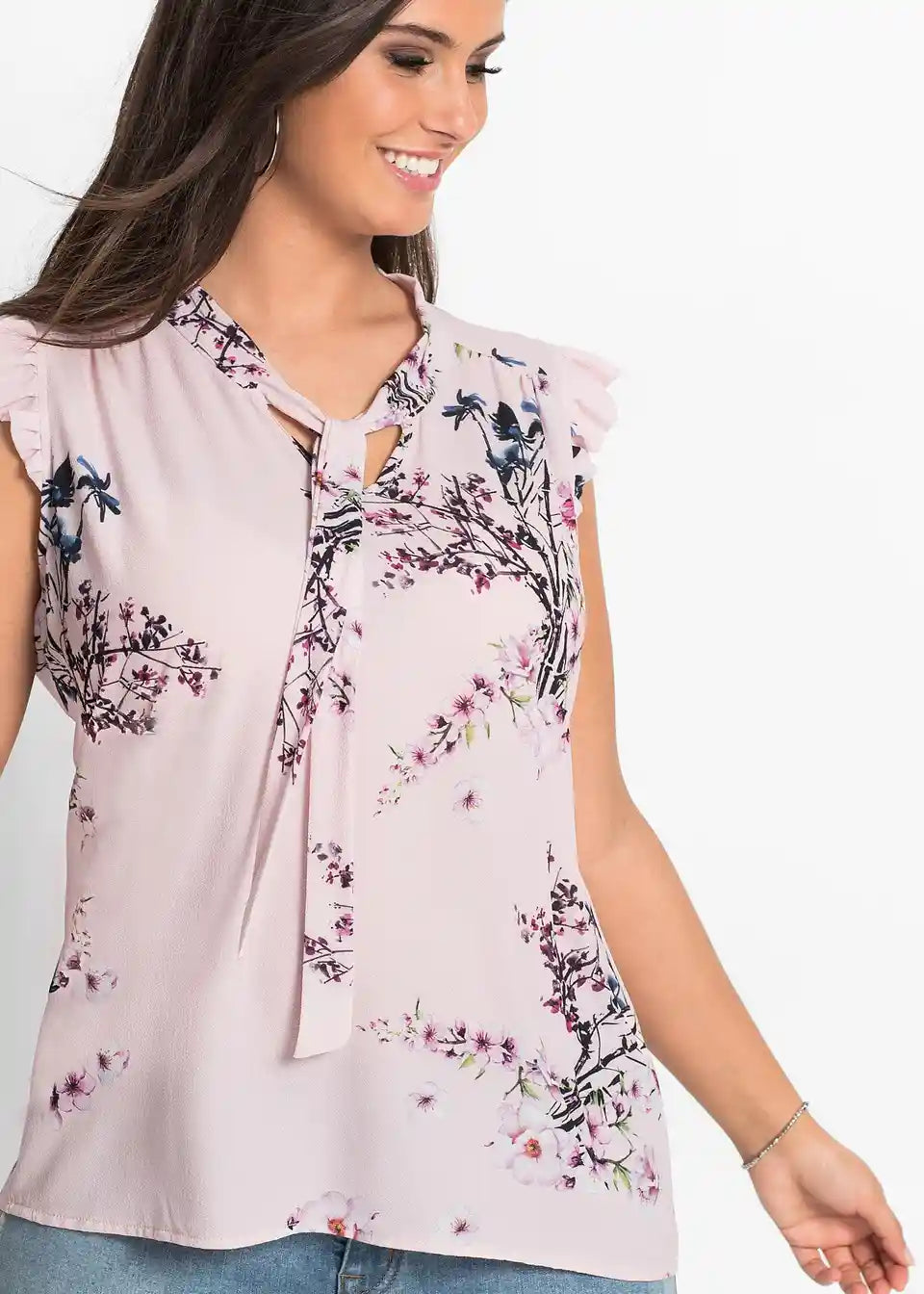 Zračen kot top in eleganten kot bluza se predstavlja ta ženstven top z bluzo z lokom in potiskom od BODYFLIRT. Eleganten lok na izrezu omogoča raznolikost dizajna, saj ga lahko povežete v igriv lok ali sproščeno zavežete. Romantičen pridih dodajo volanasti naborki, ki obdajajo izreze rokavov in tvorijo mini rokave.
