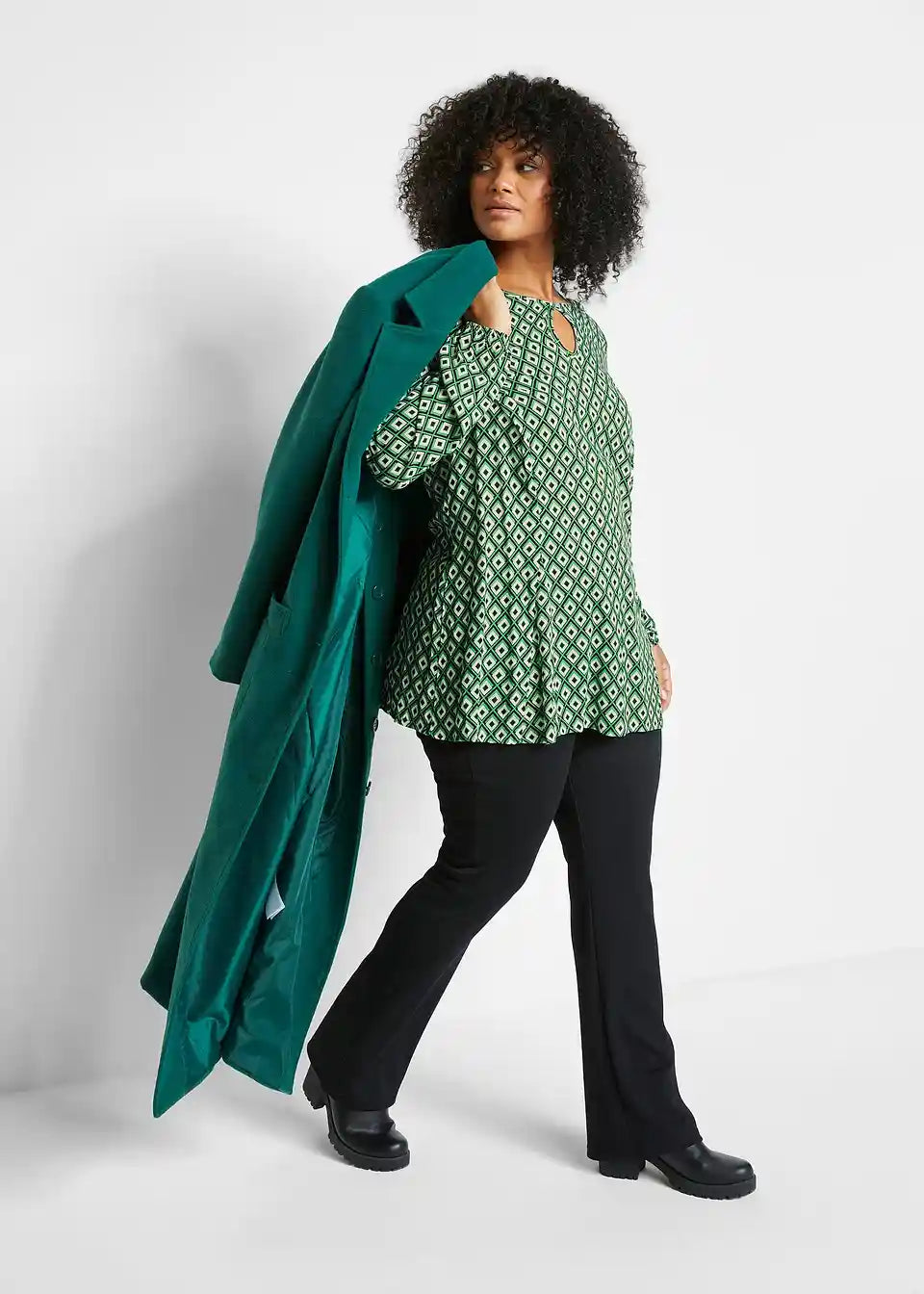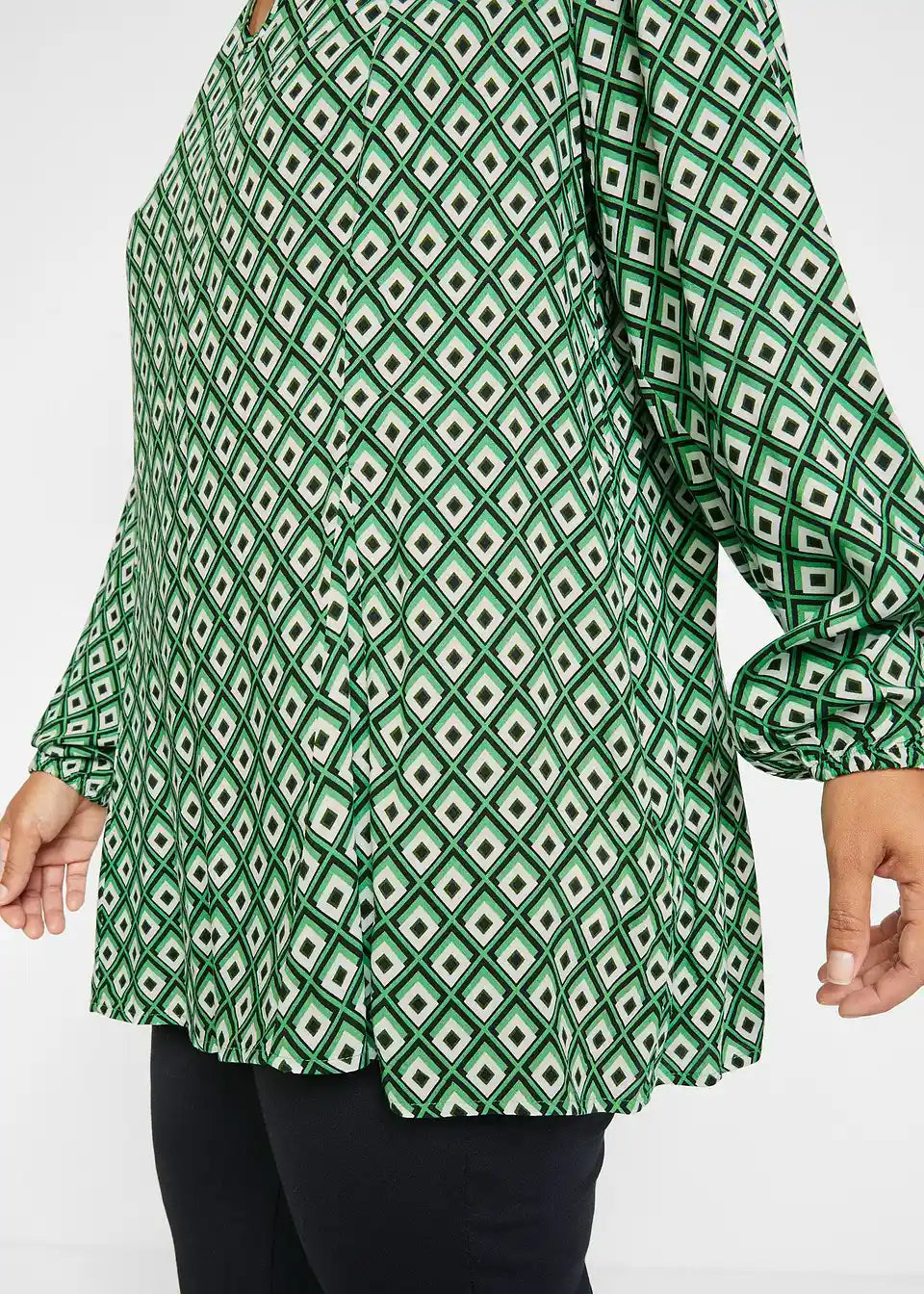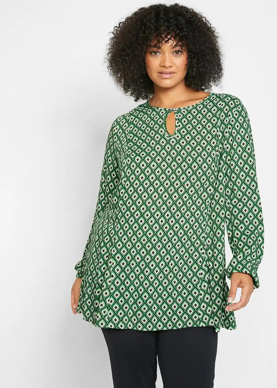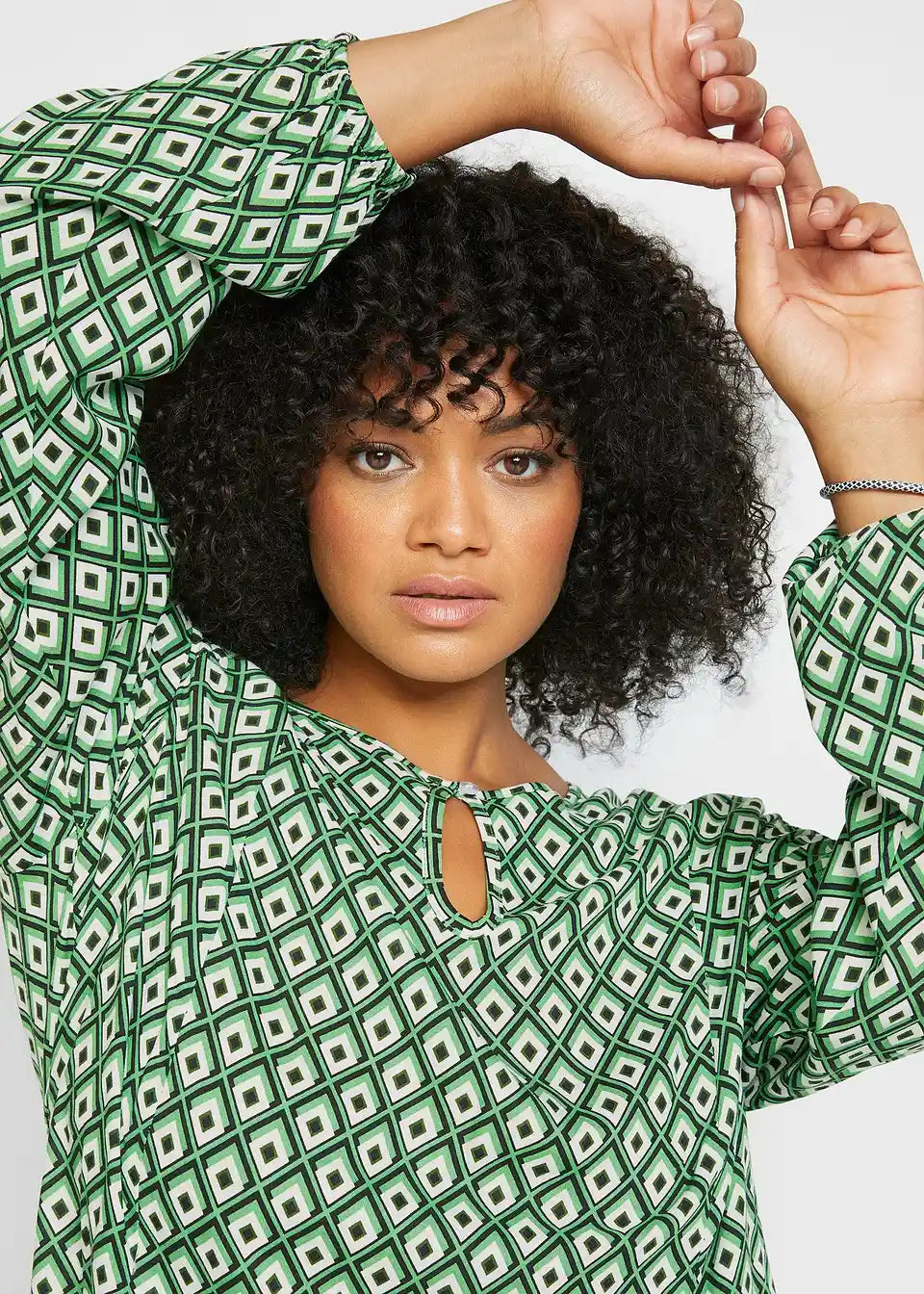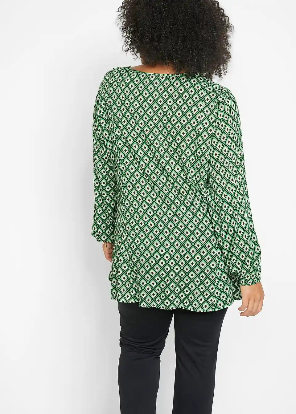Dobro kombinirana bluza z dolgimi rokavi in subtilnim detajlom na izrezu iz trajnostne viskoze