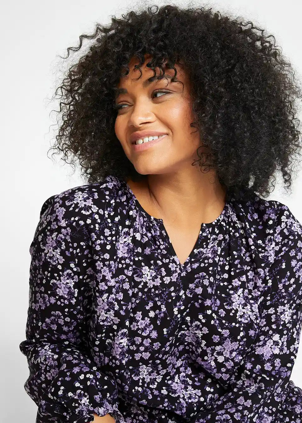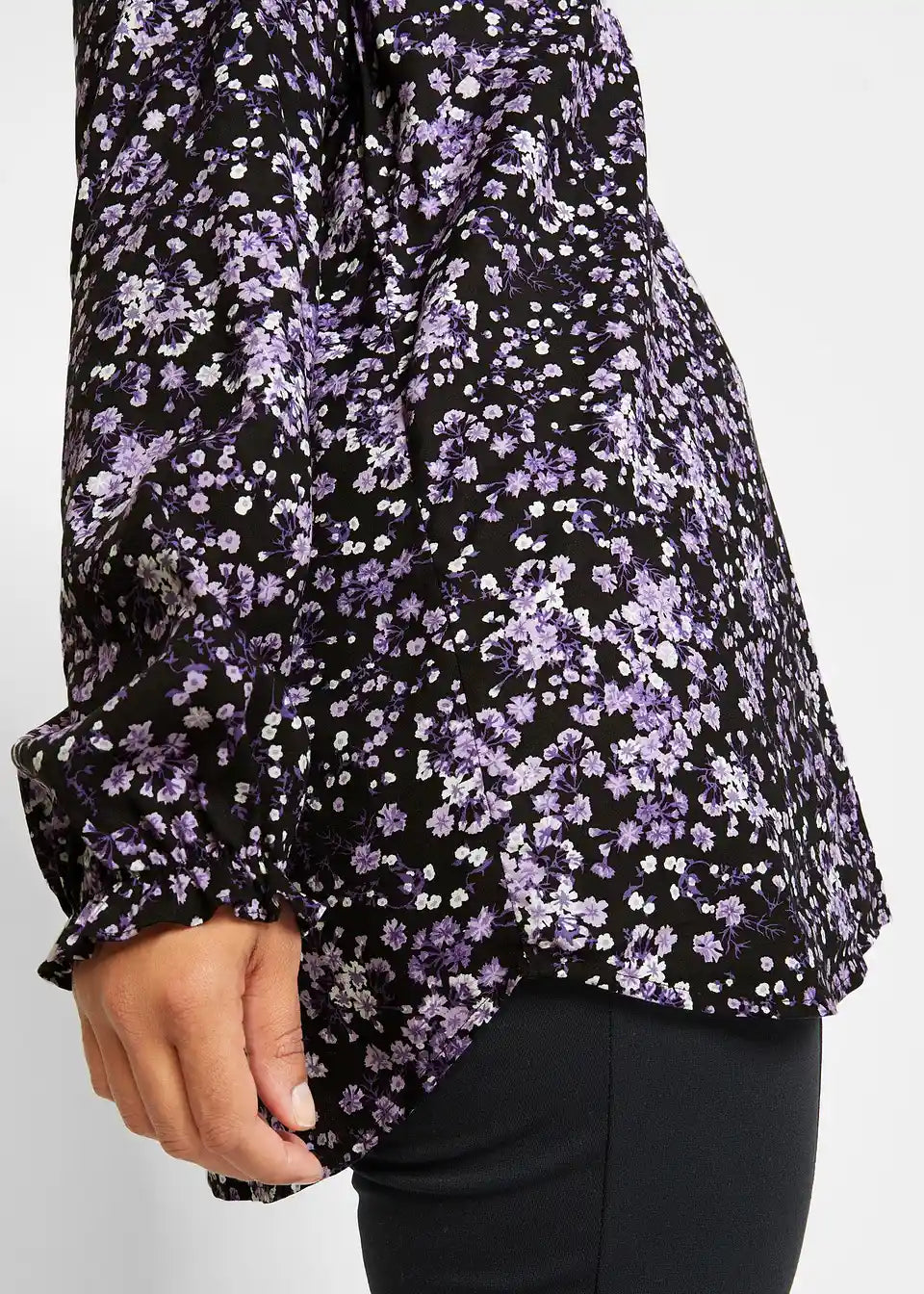 Postavljena bluza z dolgimi rokavi iz trajnostne viskoze s časovnim potiskom