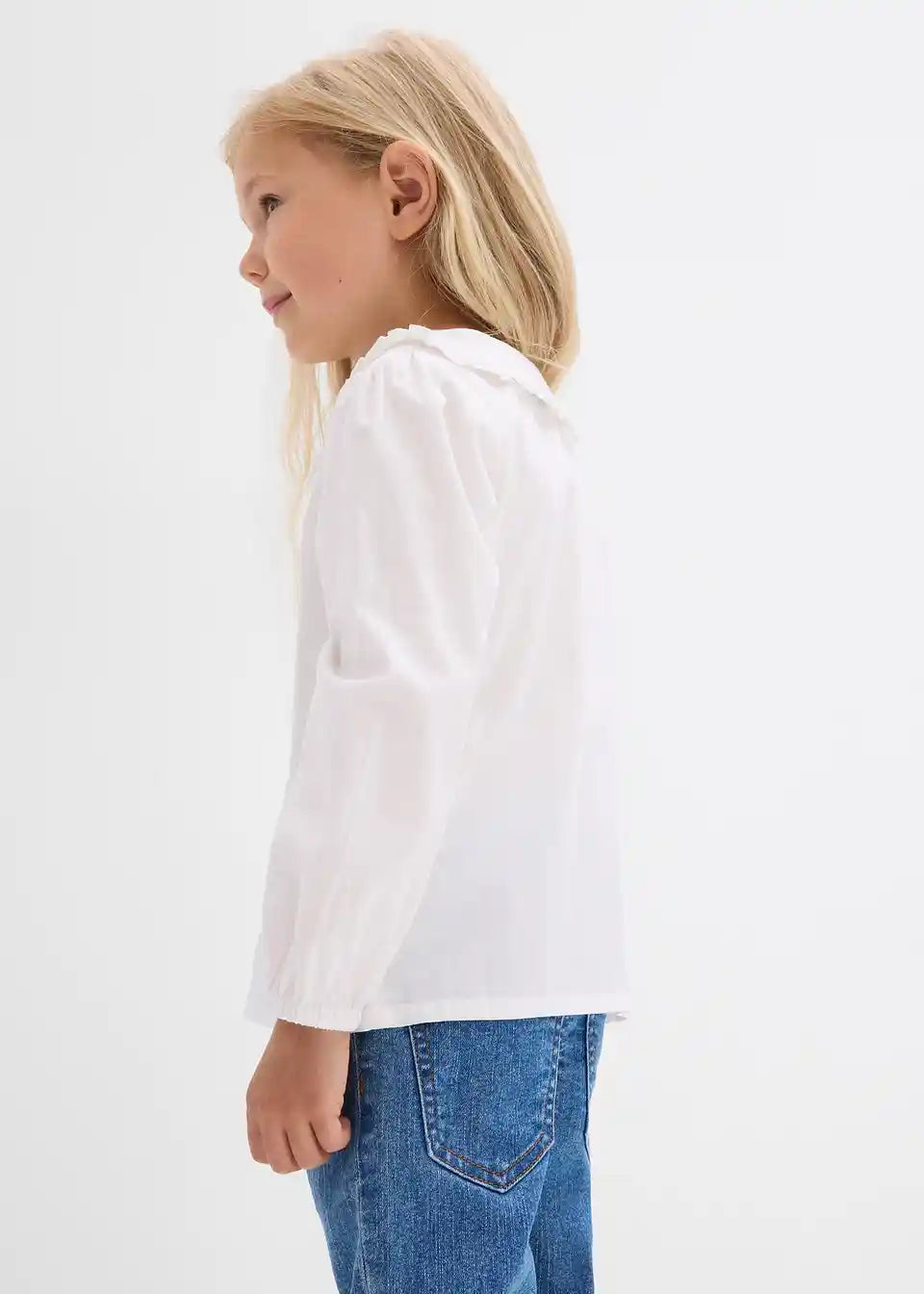 Trendovska bluza za dekleta z okroglim ovratnikom iz čiste bombažne tkanine