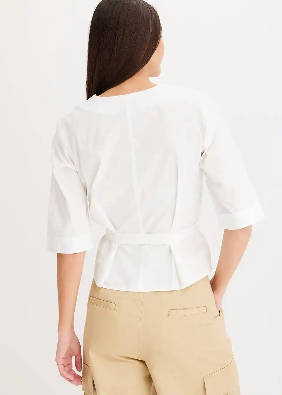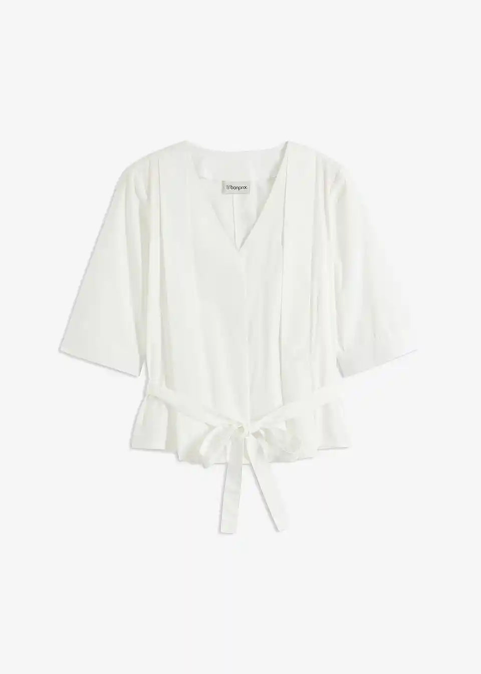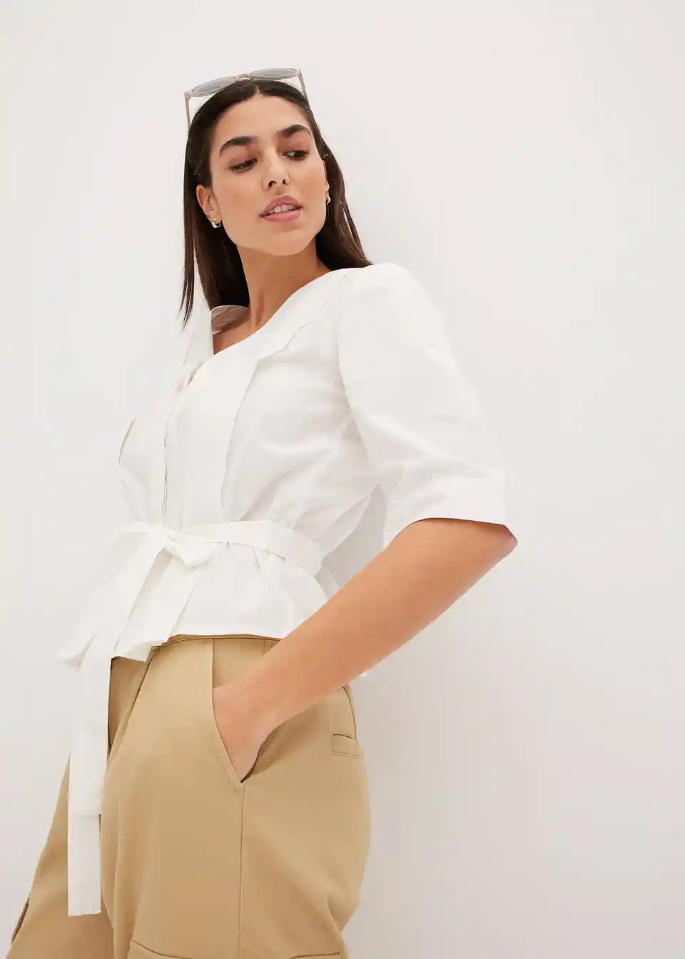 Fina poletna bluza z lepimi detajli gub in skrito gumbnico