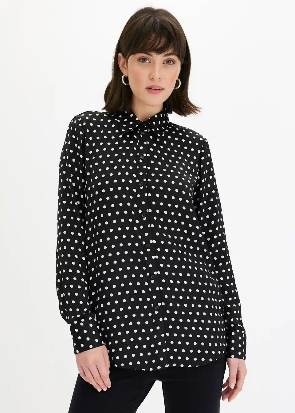Srajčna bluza z ženstvenim pikčastim potiskom