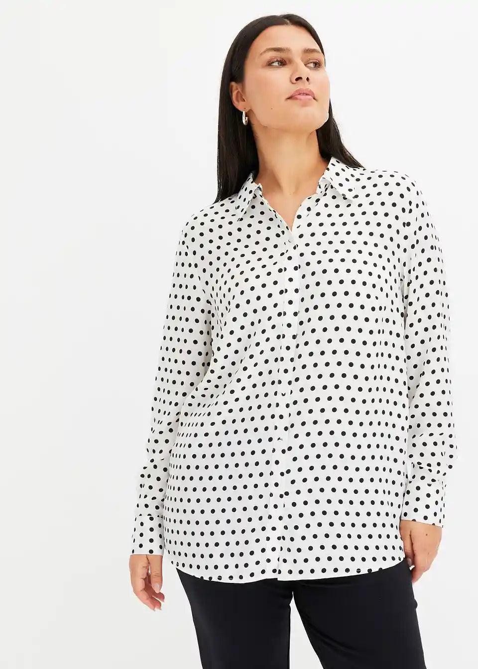 Srajčna bluza z ženstvenim pikčastim vzorcem