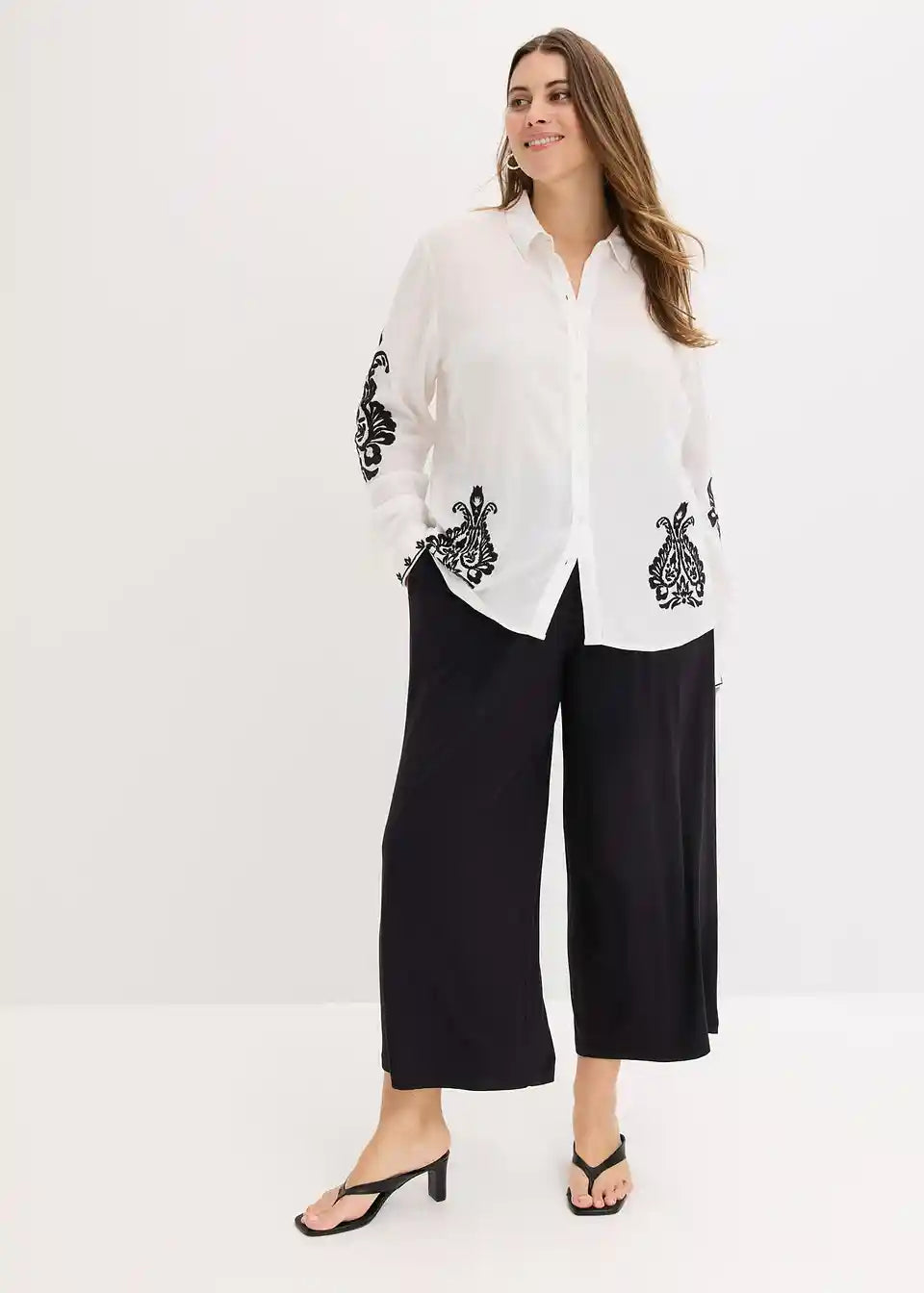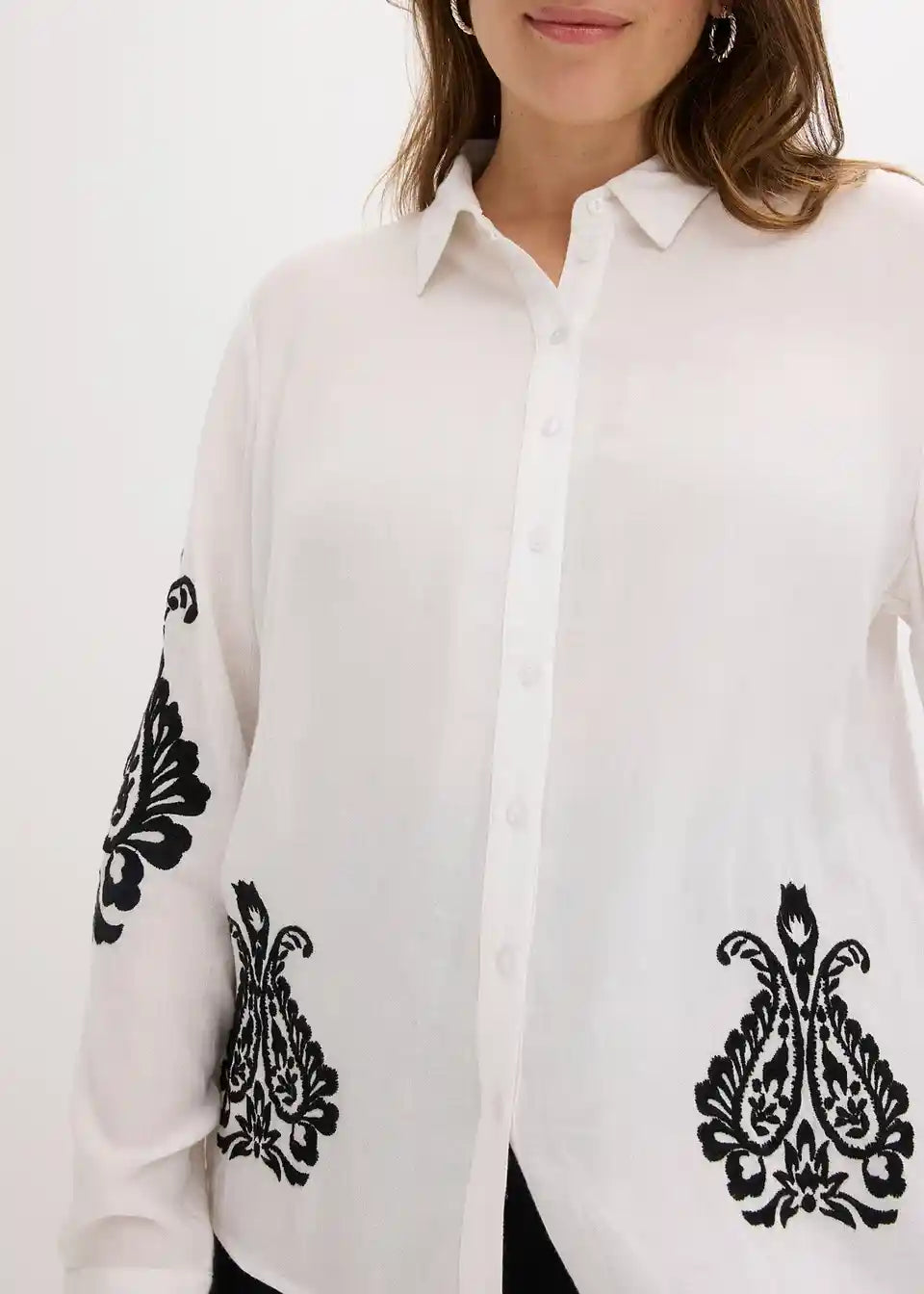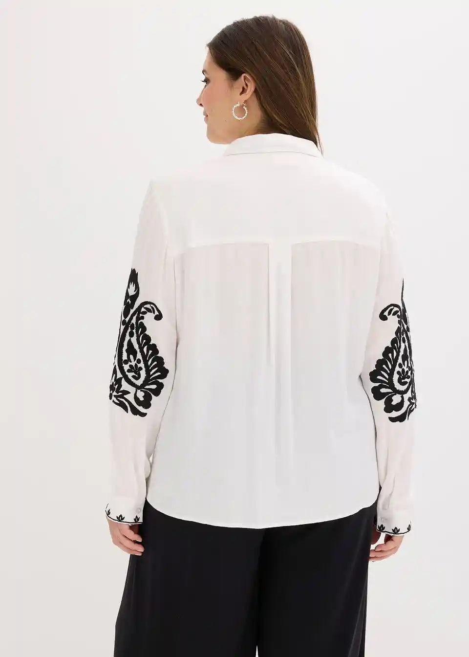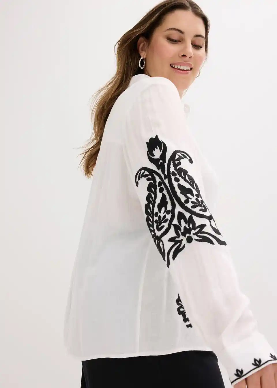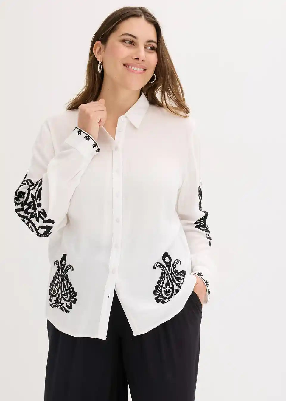 moderna bluza iz mehkega mešanice viskoze z dekorativno vezenino v kontrastni barvi