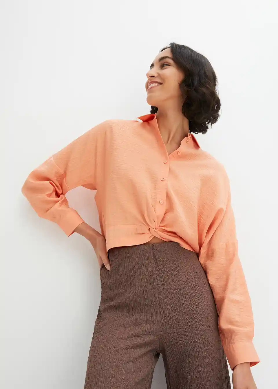 Sproščena bluza iz strukturirane, certificirane viskoze z modnim križnim detajlom spredaj