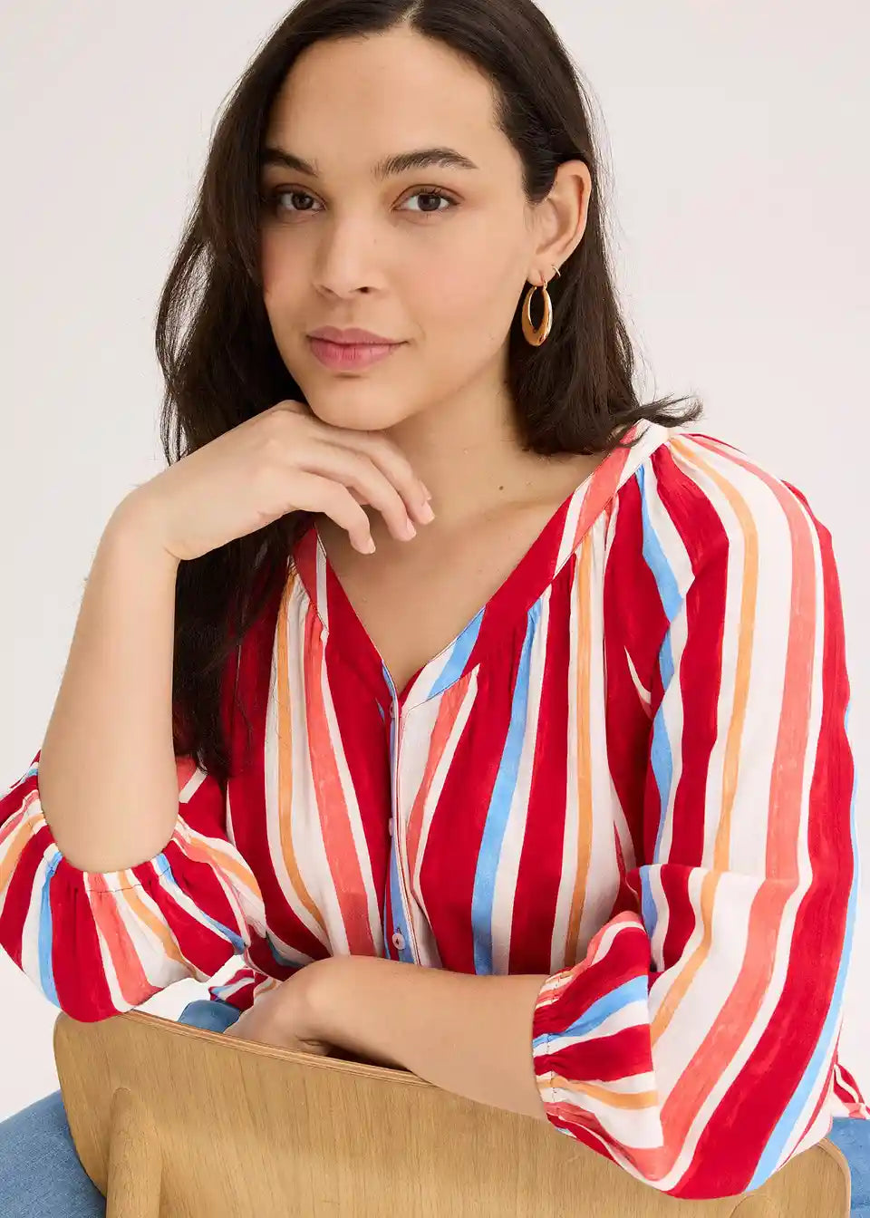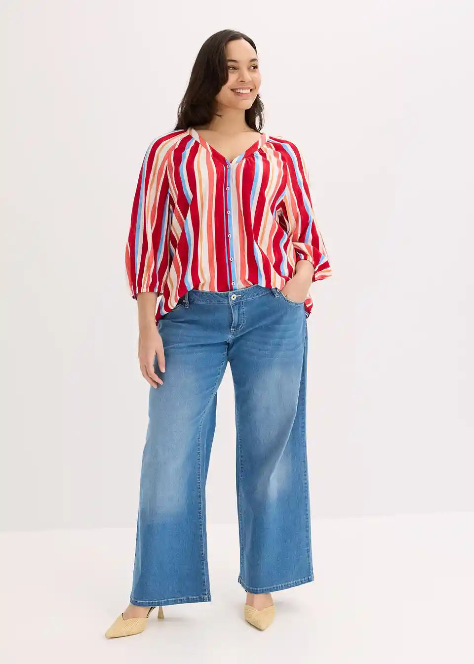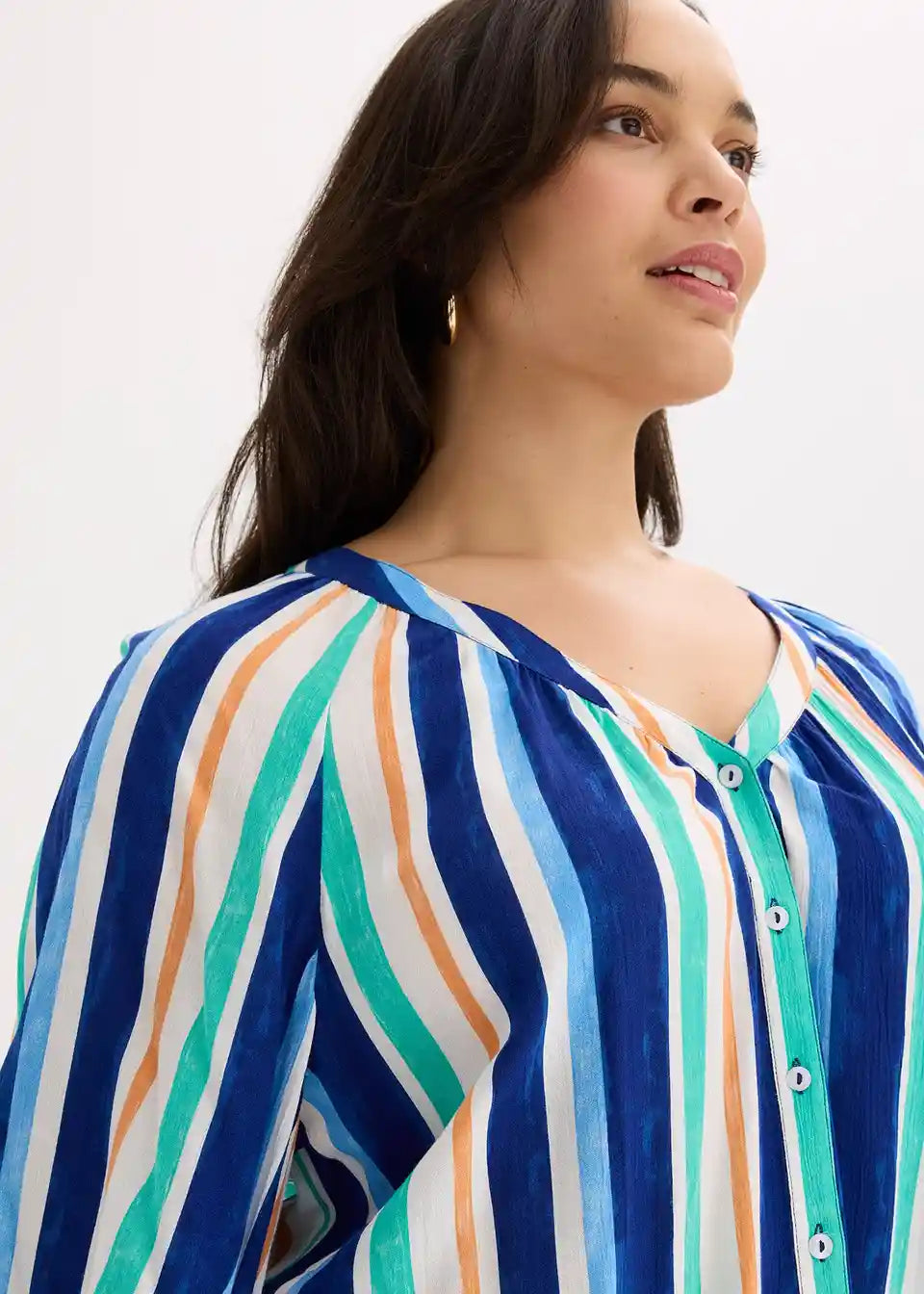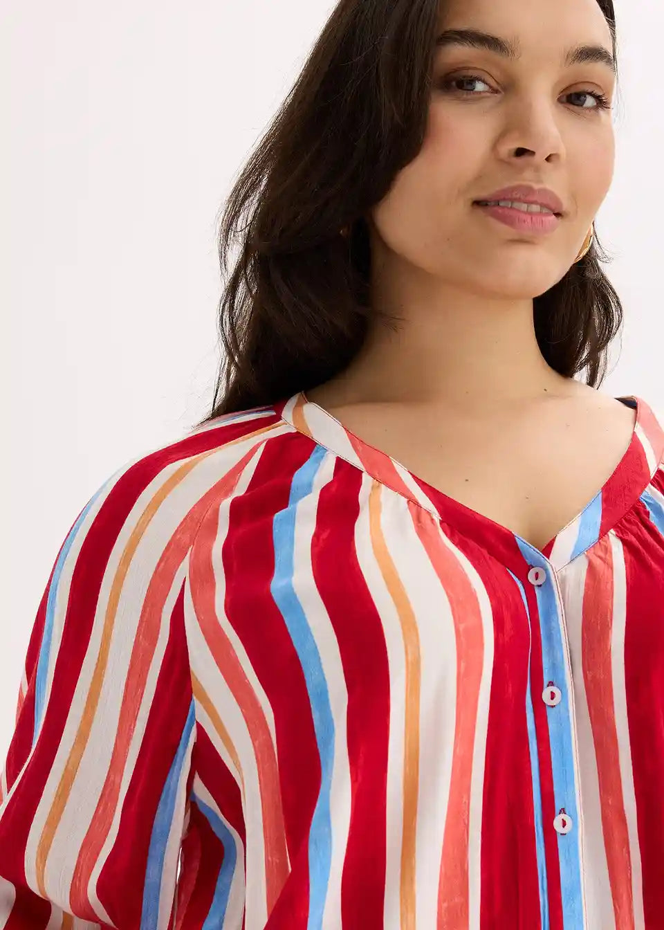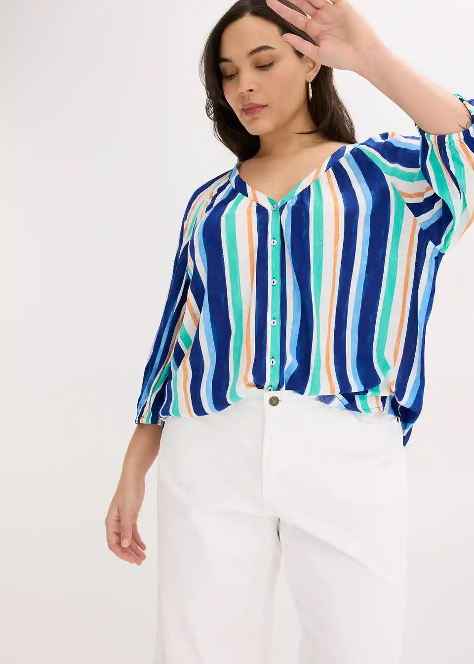 poletna bluza iz strukturirane viskoze z balonastimi rokavi 3/4 dolžine