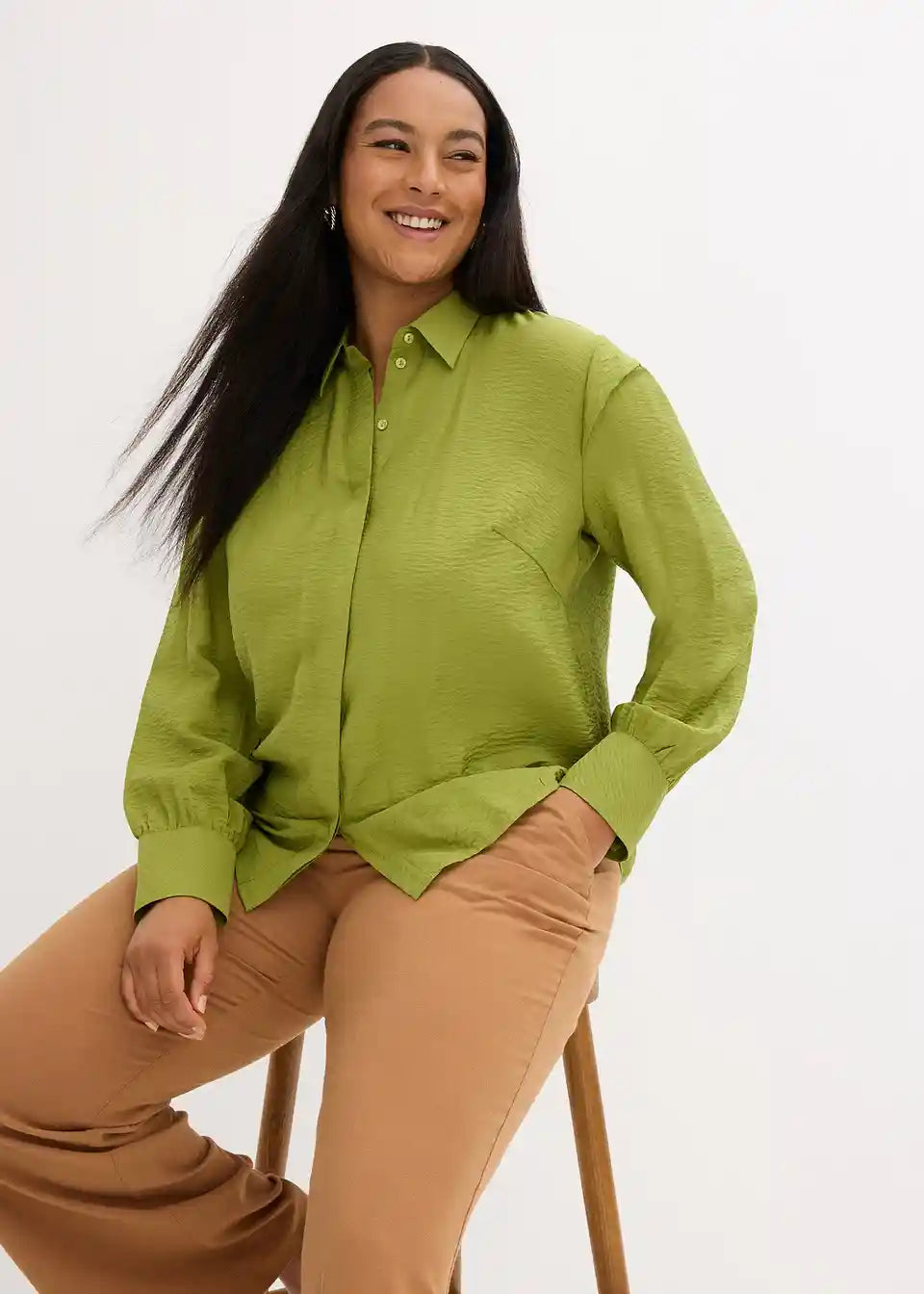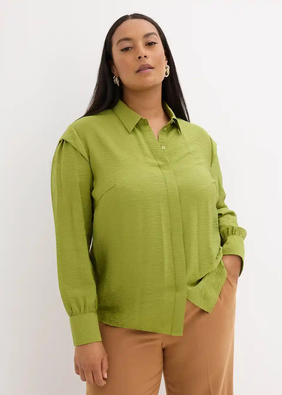 elegantna bluza z gumbnico in posebnim ovratnikom