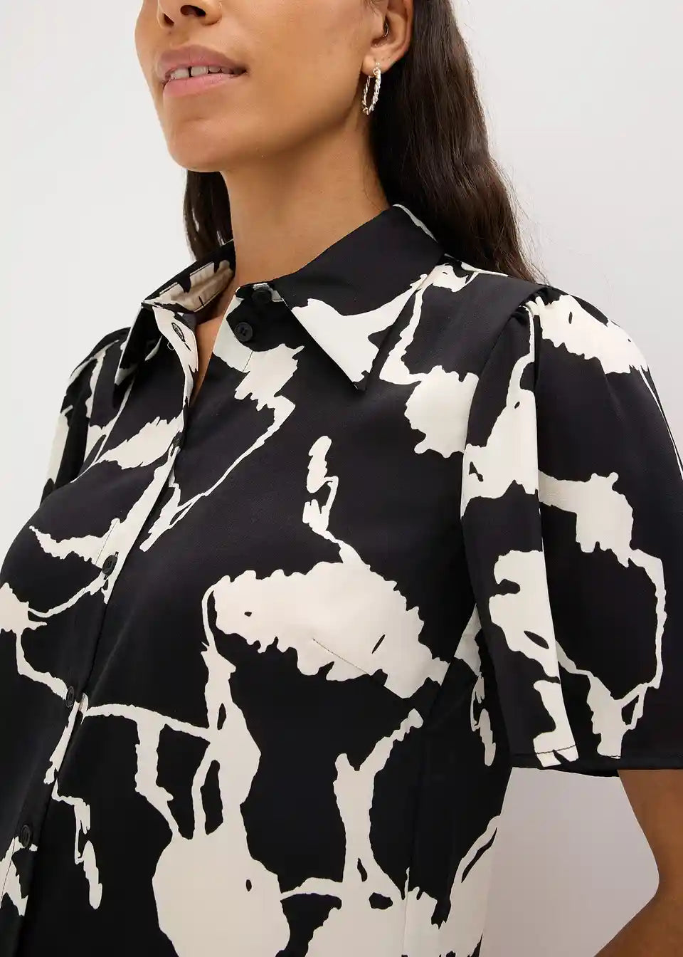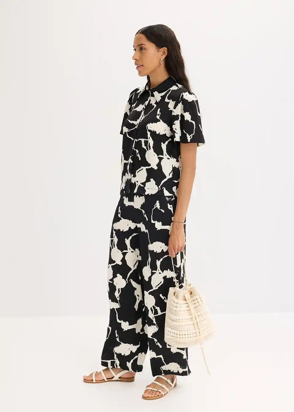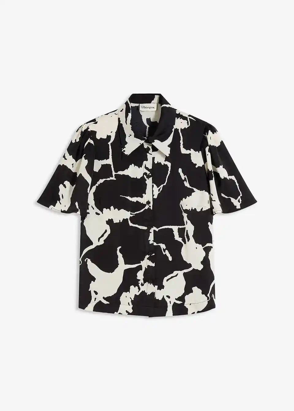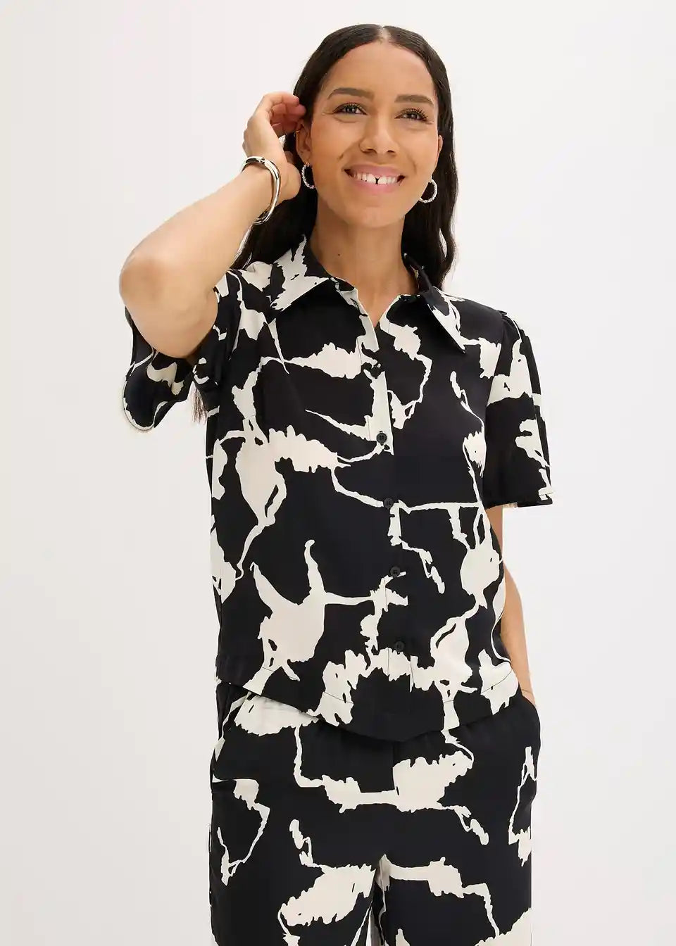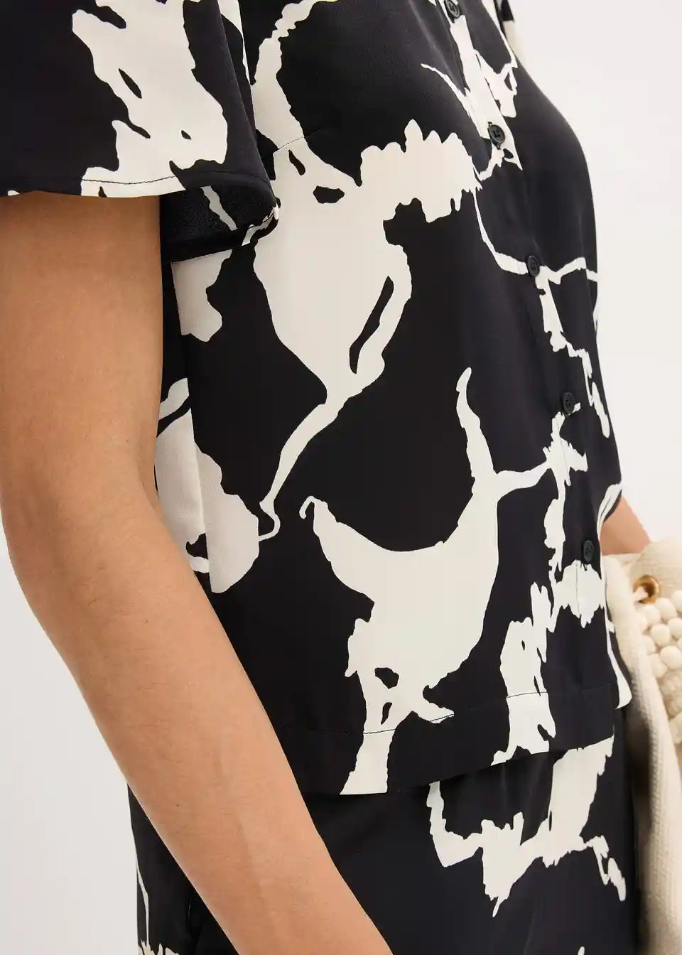 modno potiskana bluza s polovičnimi rokavi iz tekočega satena