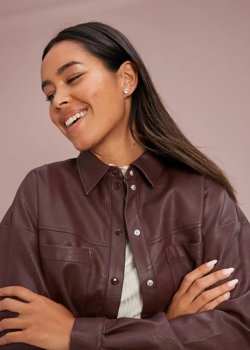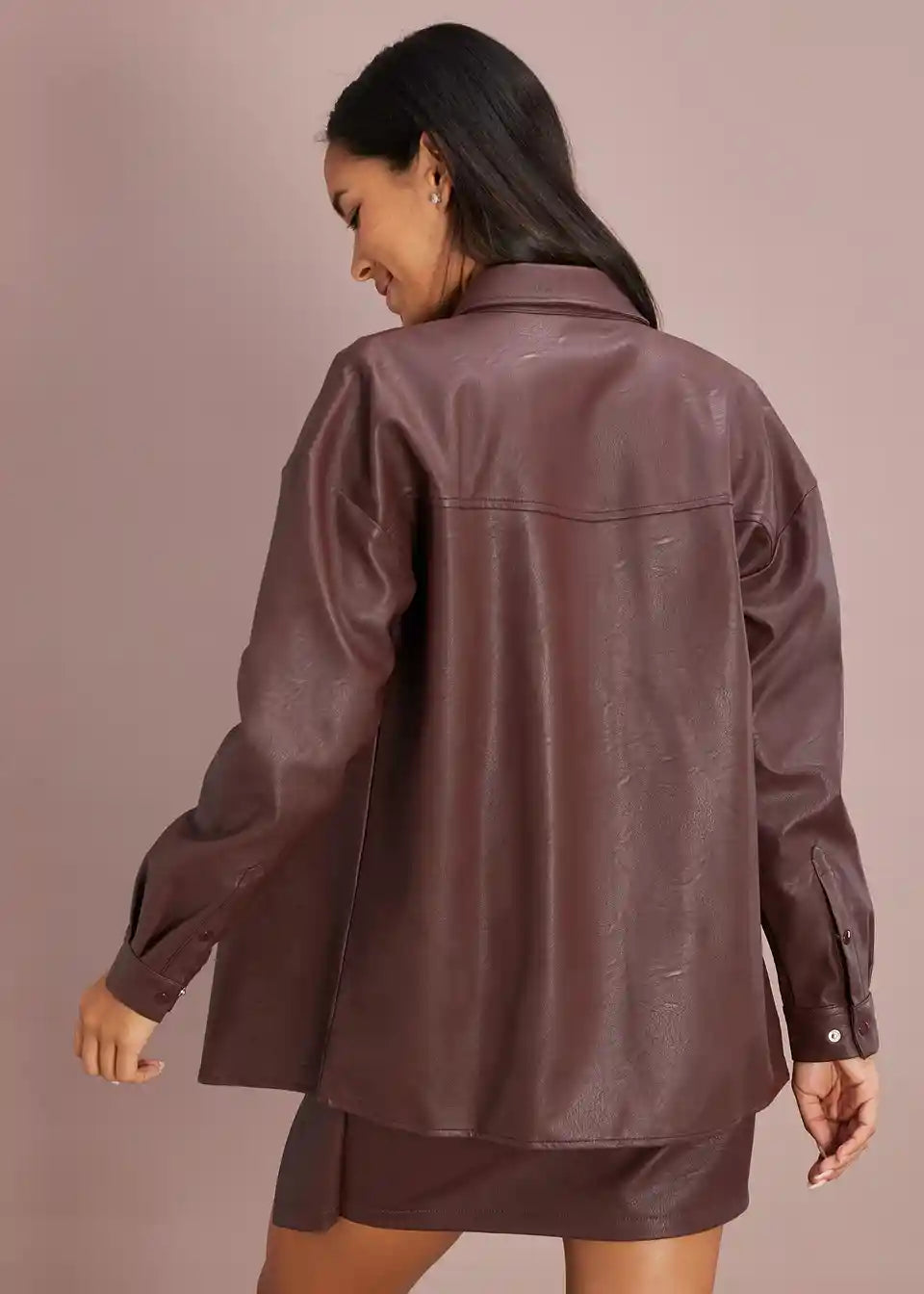 Moderna bluza z dolgimi rokavi iz umetnega usnja