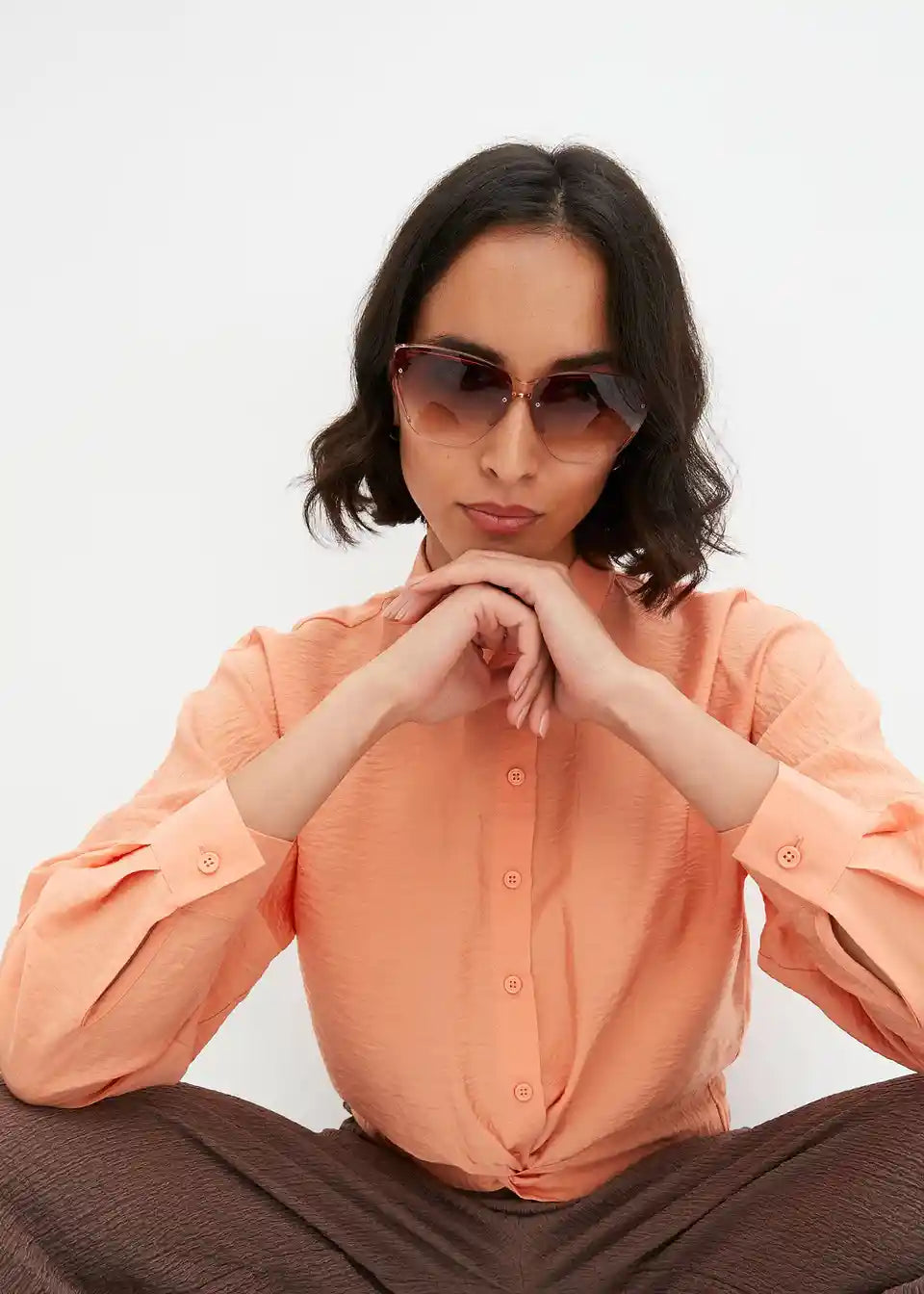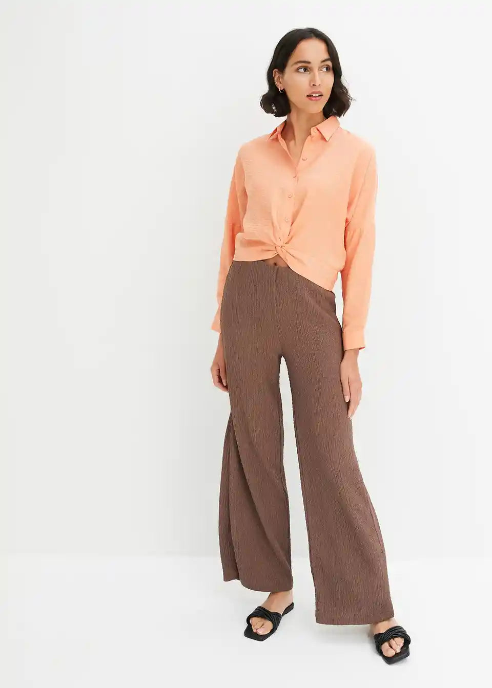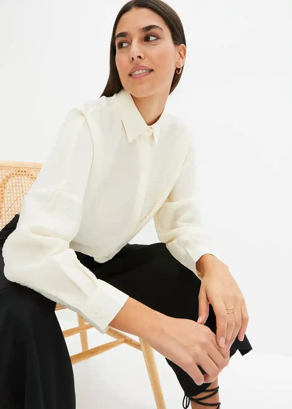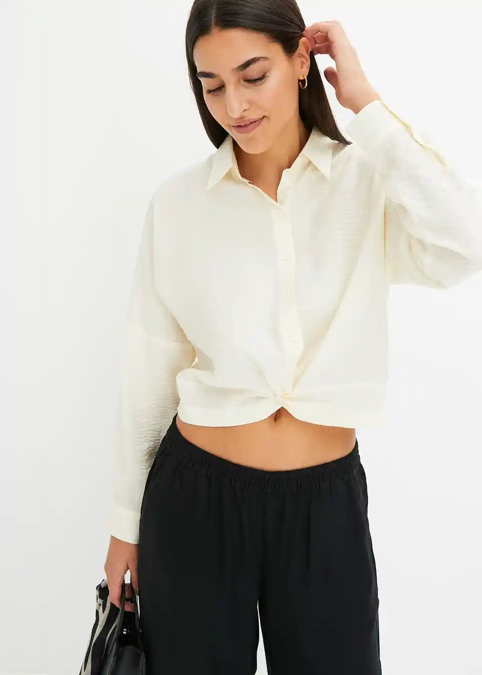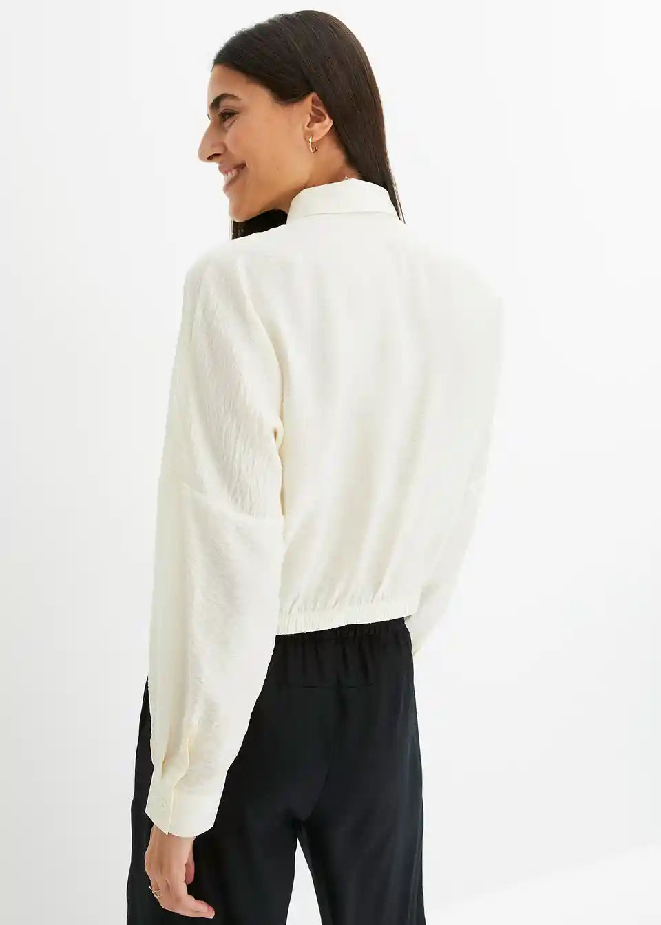 Ležerna bluza iz strukturirane, certificirane viskoze z modnim detajlom ovijanja spredaj