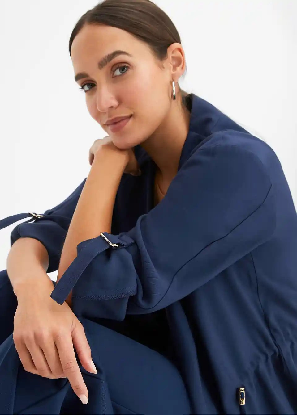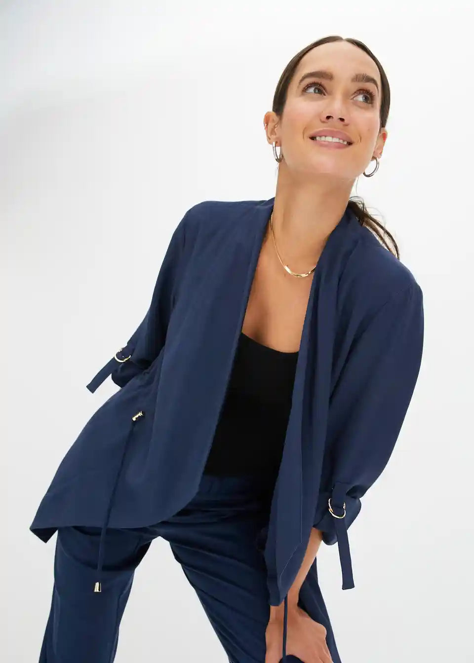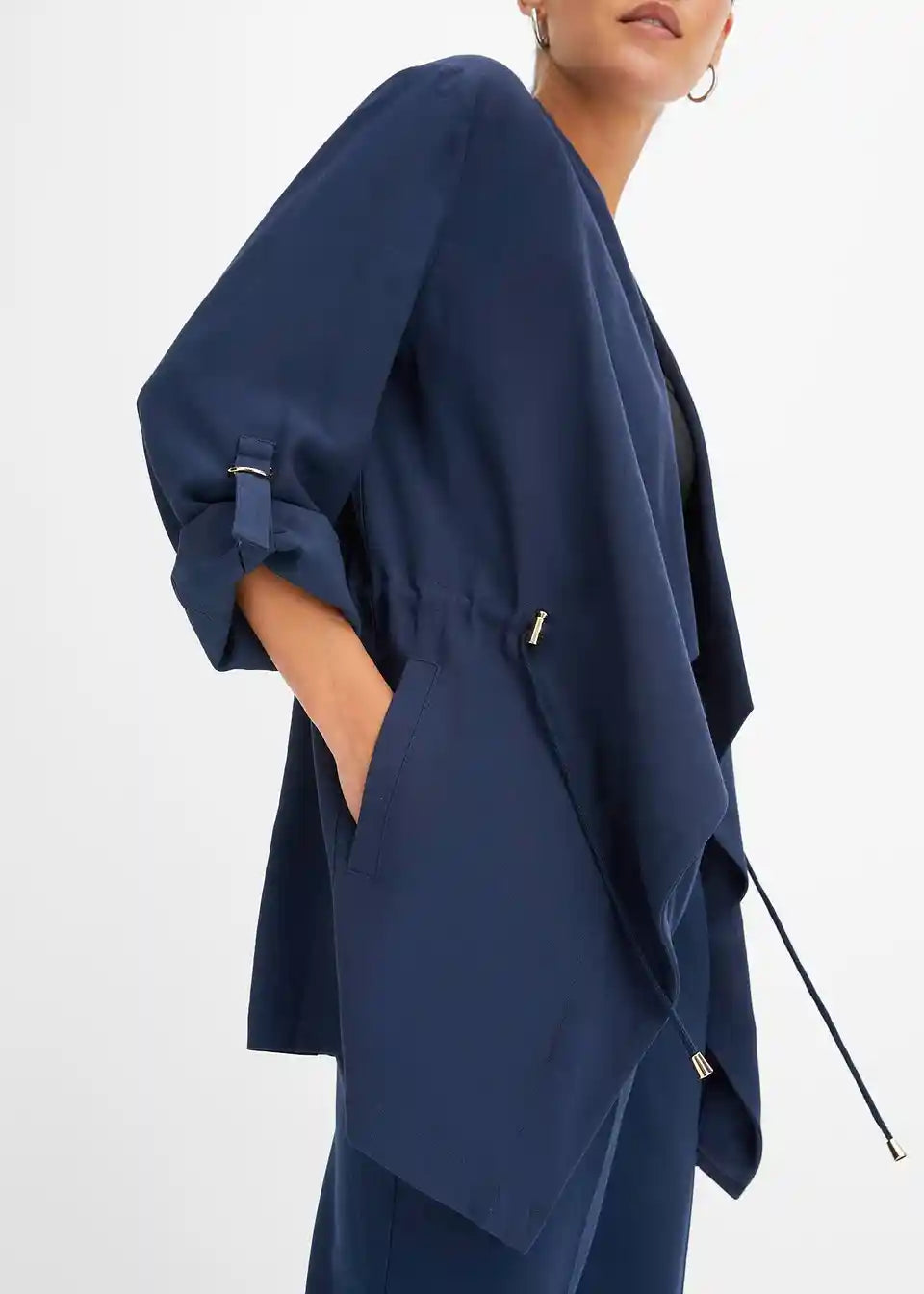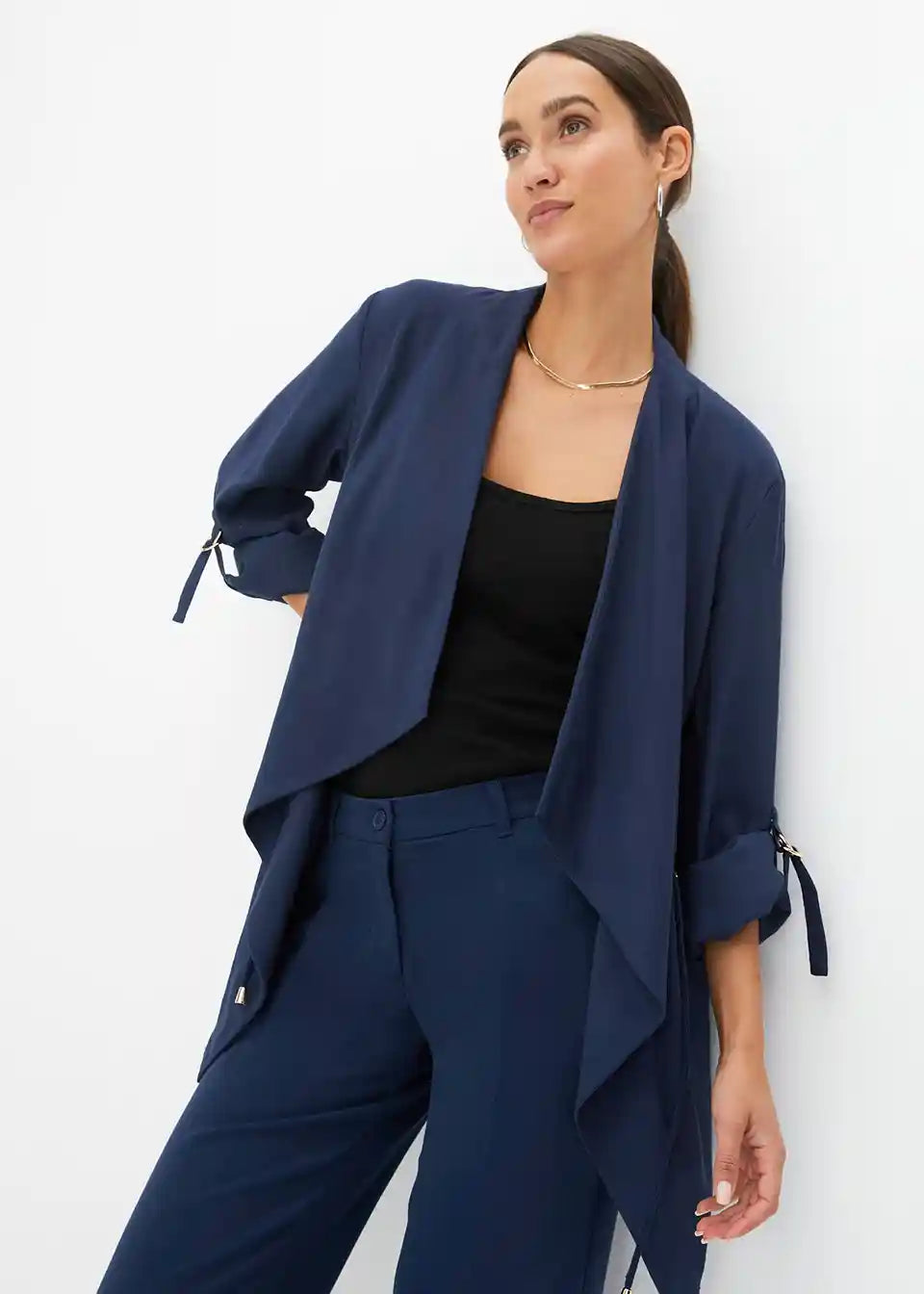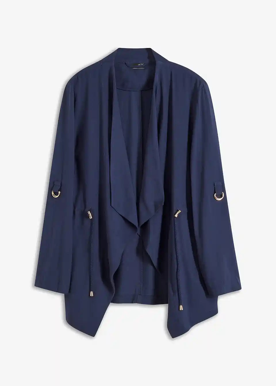 Moderna bluza jakna znamke BODYFLIRT. Jakna z možnostjo zavihanja rokavov je brez zapenjanja. Dolžina pri velikosti 38 je približno 72 cm.