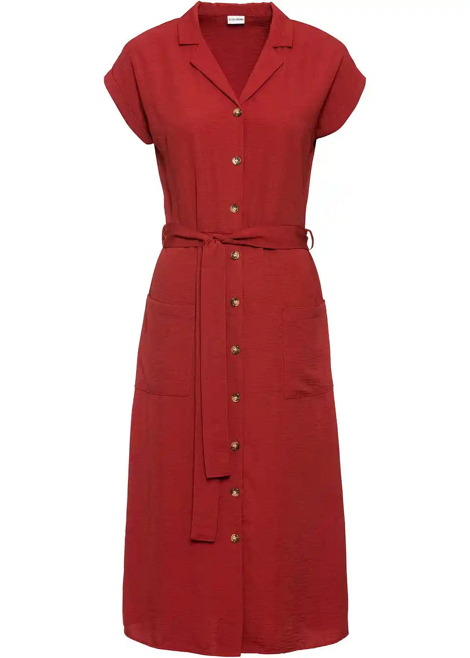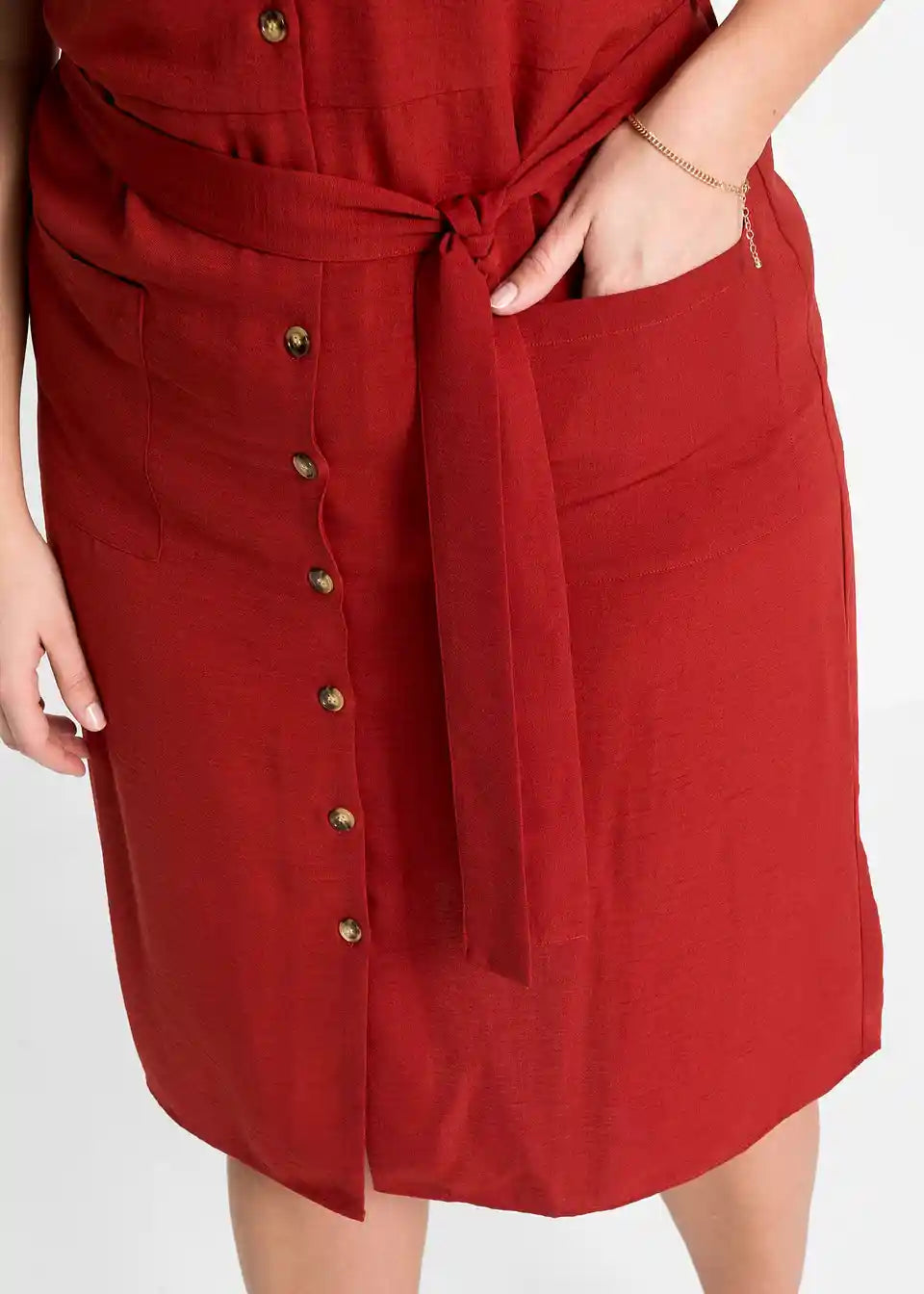 Zračna bluza obleka ima 2 žepa v krilnem delu. Poleg tega ima pas za zavezovanje in ima celotno zapenjanje s čudovitimi gumbi imitacija roga. Dolžina v št. 38 je približno 114 cm.