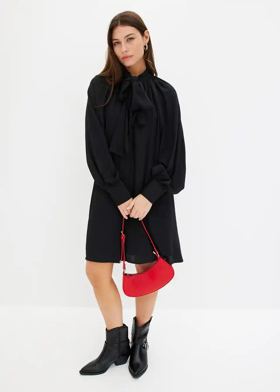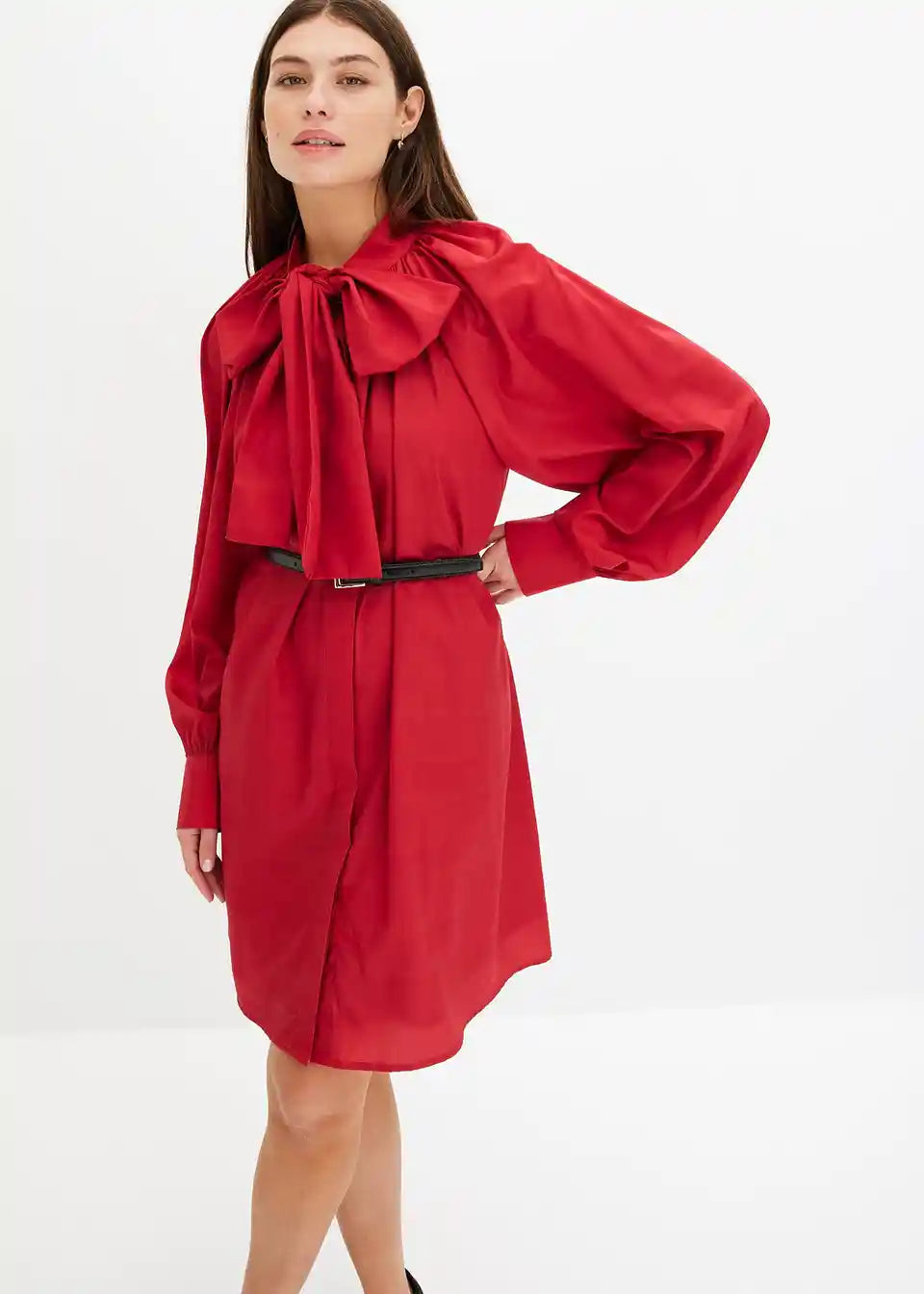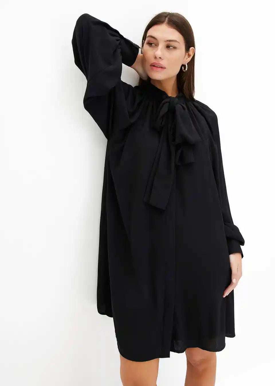Srajčna obleka s pentljo na izrezu