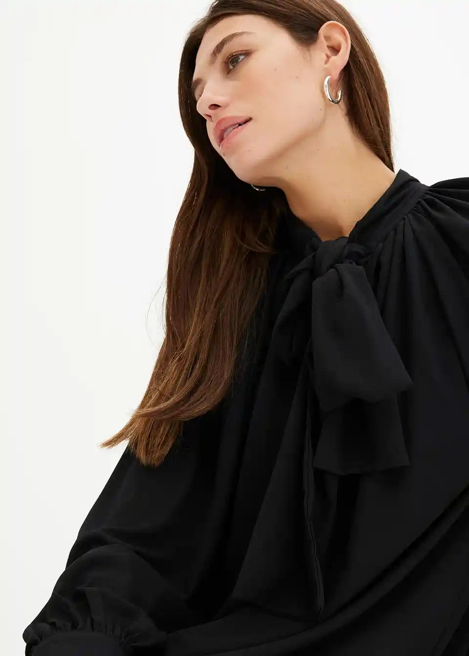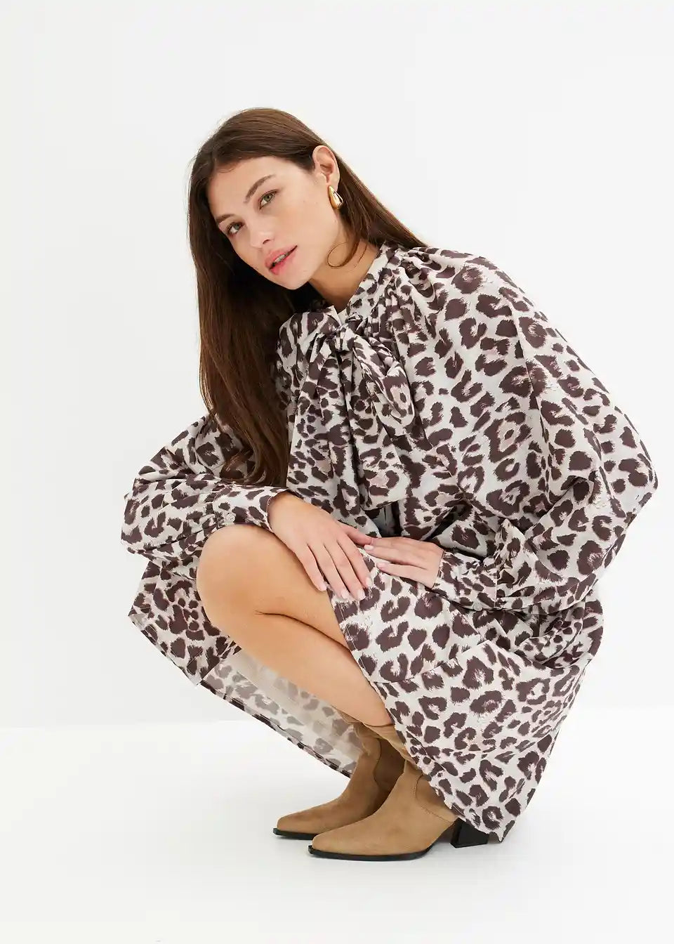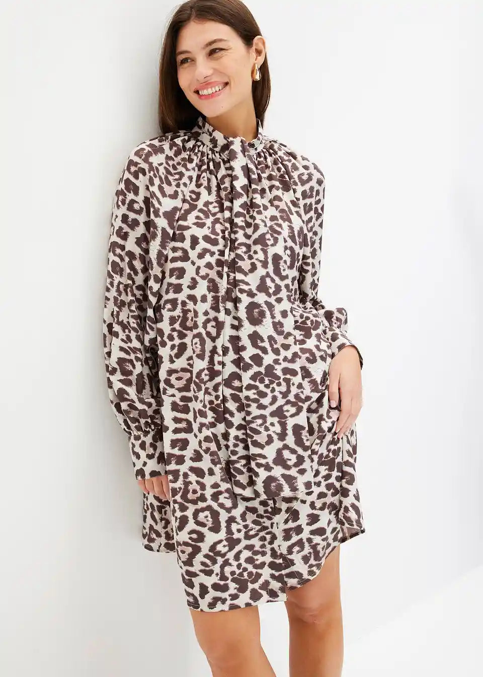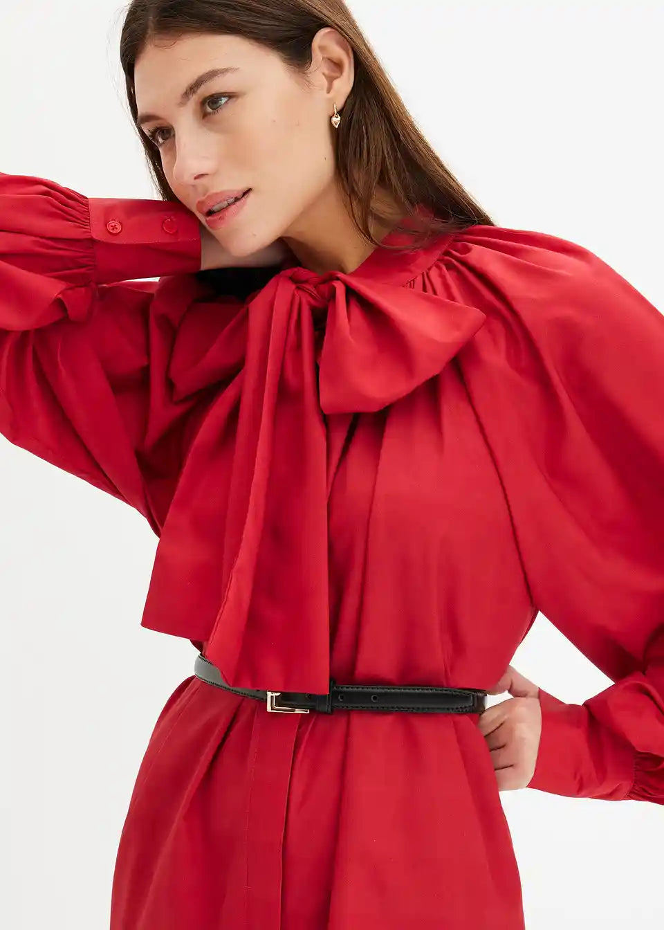 Srajčna obleka s pentljo na izrezu
