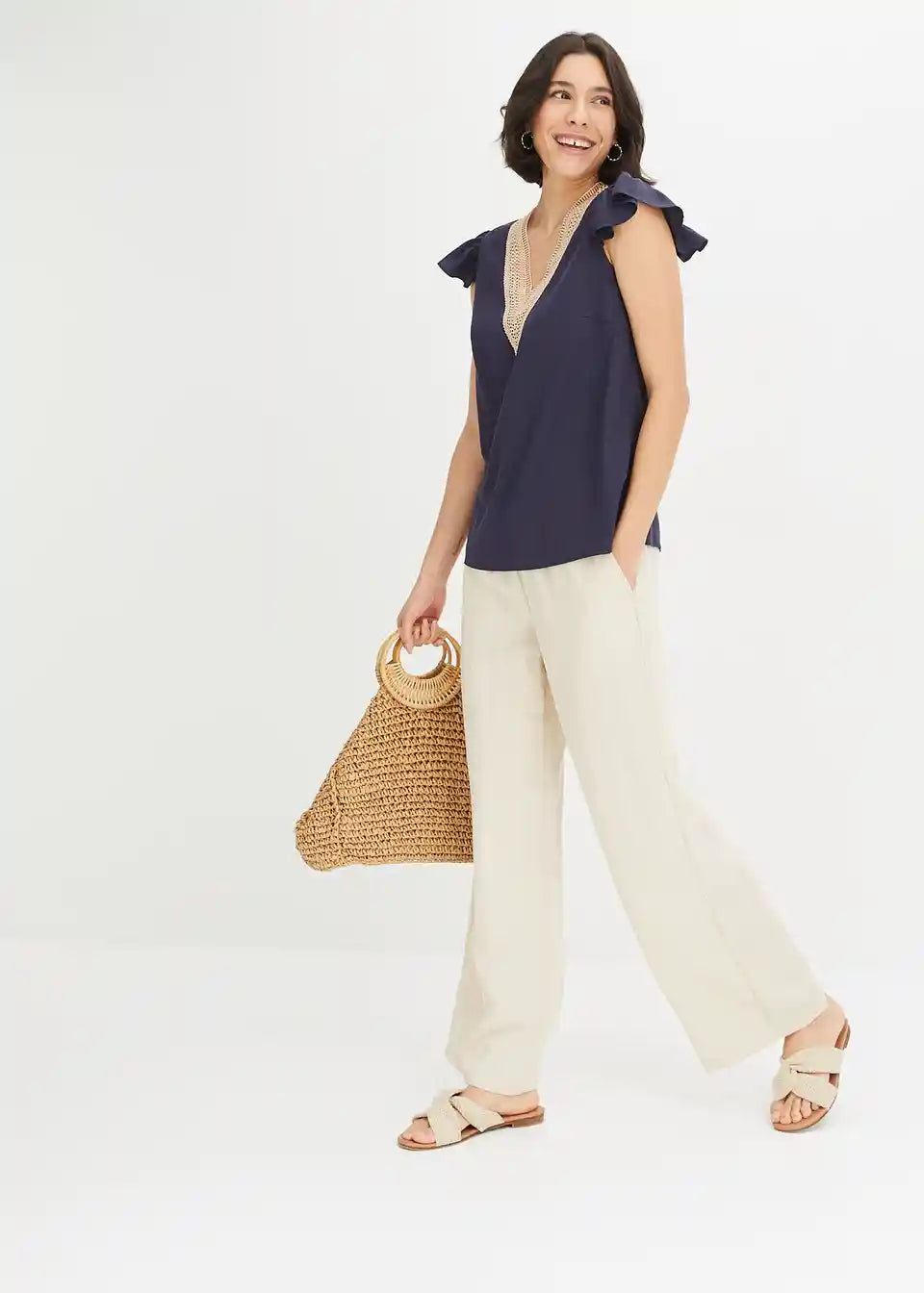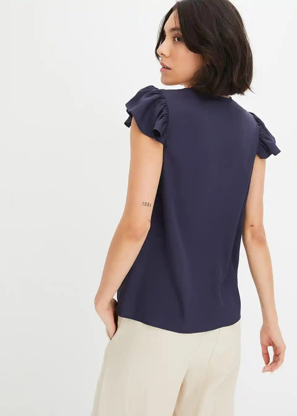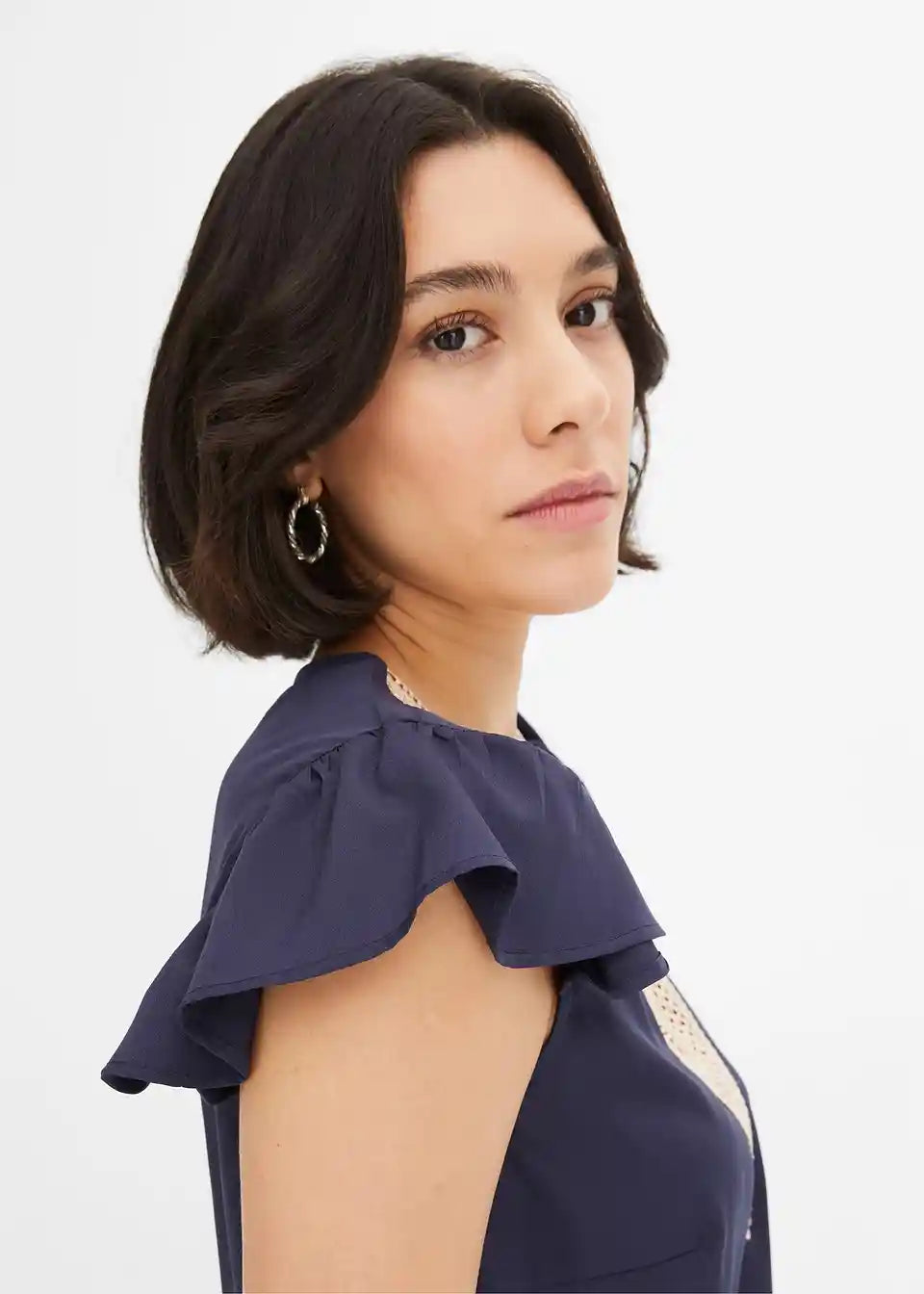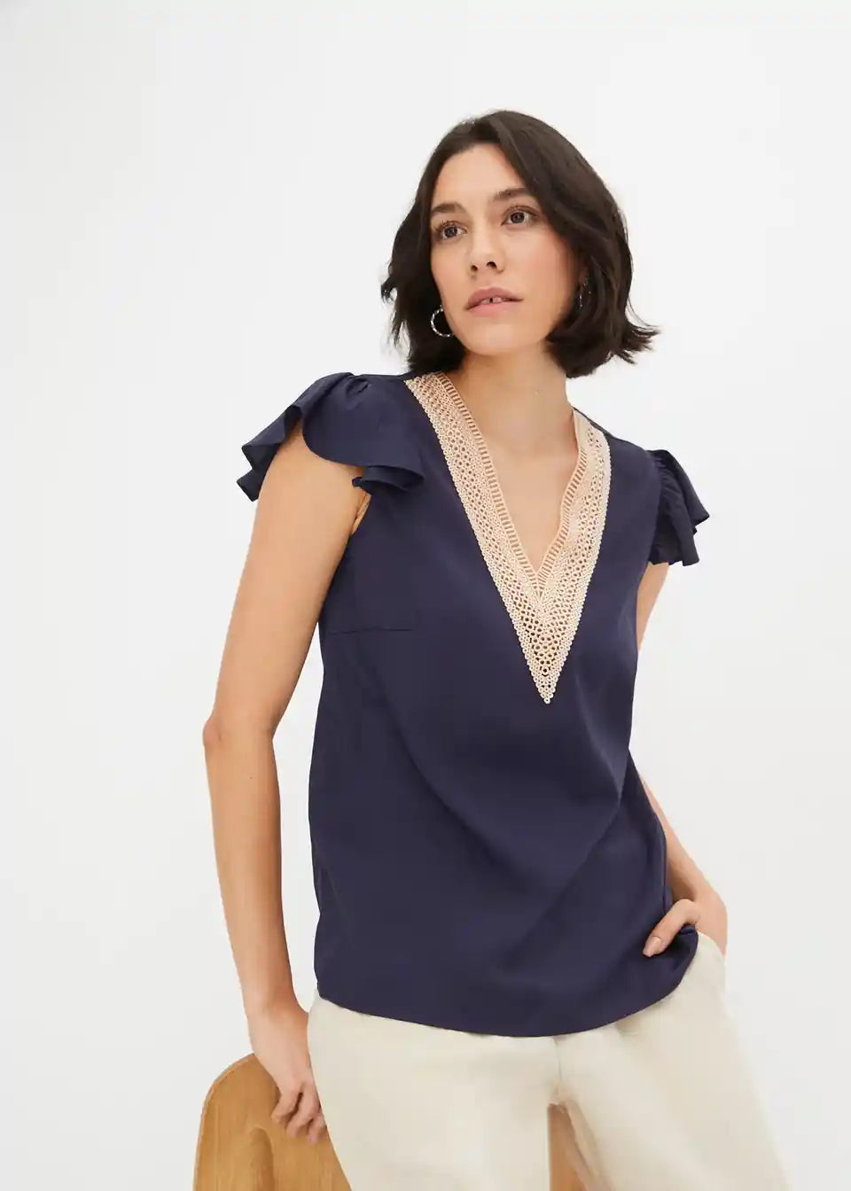 Kratko rokavna bluza s čipkastimi detajli na izrezu