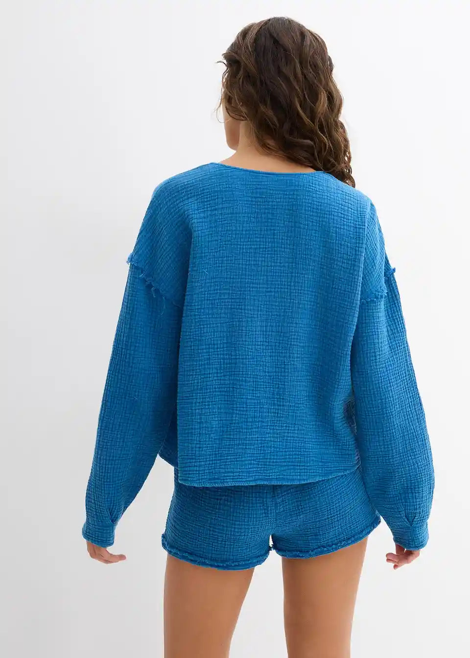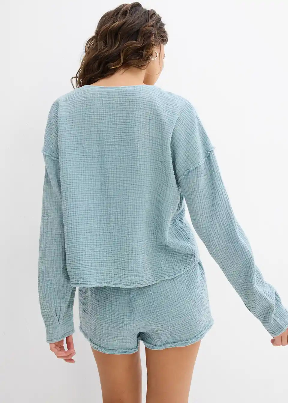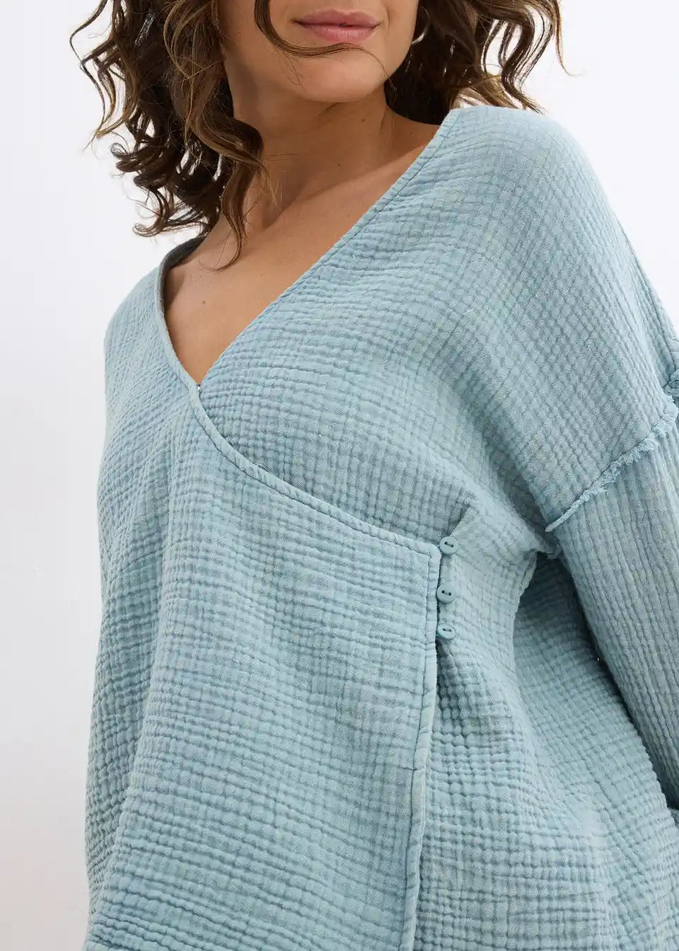 Oversize muslin bluza z opranim videzom in stranskimi gumbi