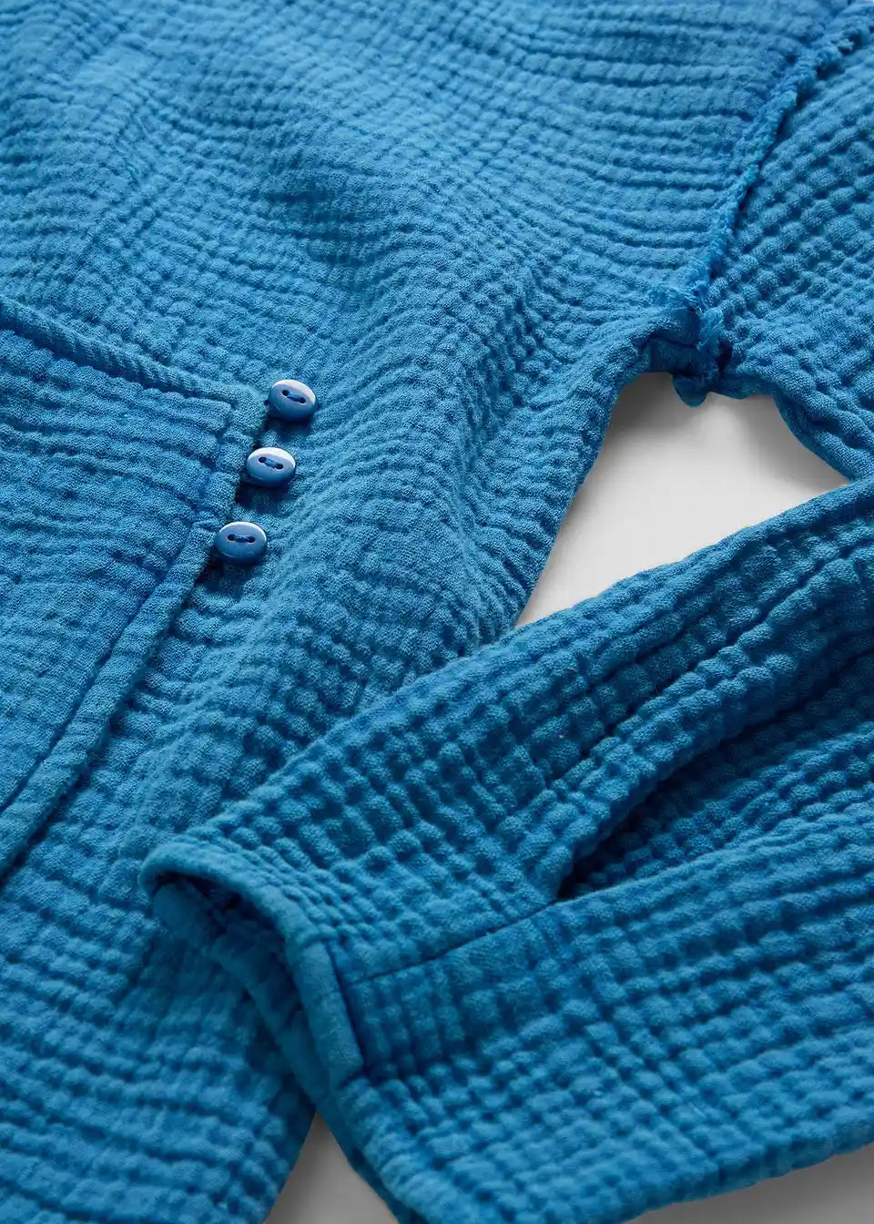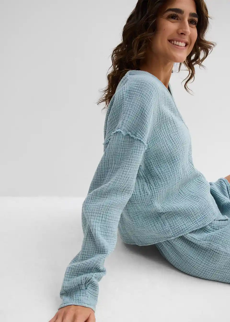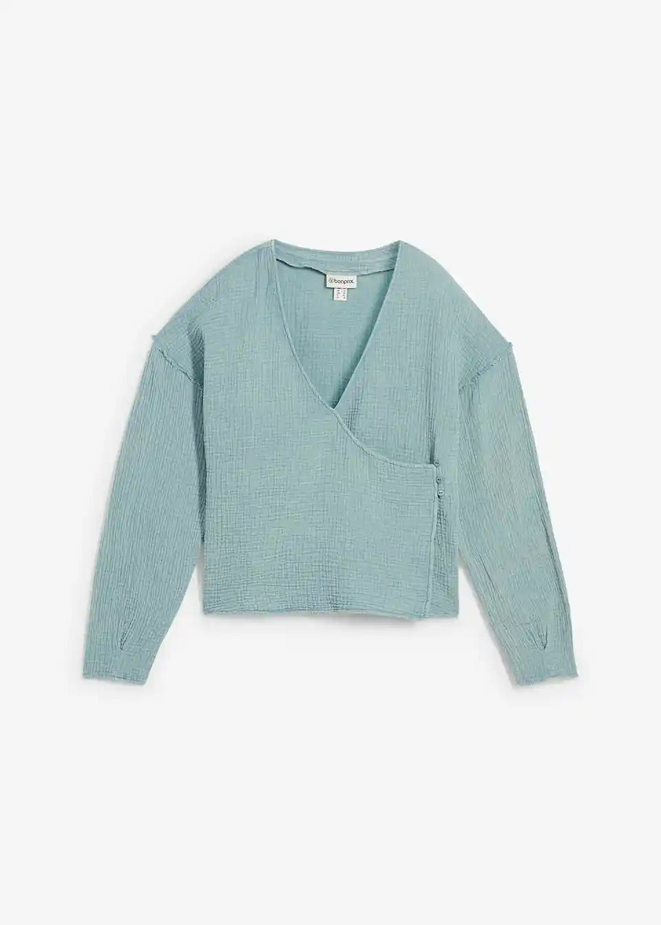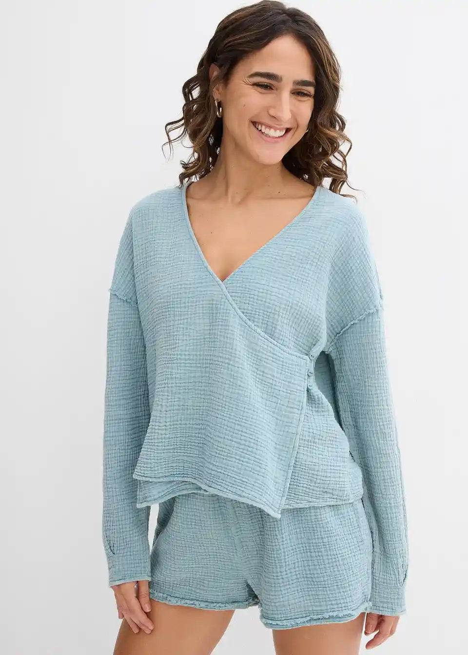 Oversize muslin bluza z opranim videzom in stranskimi gumbi