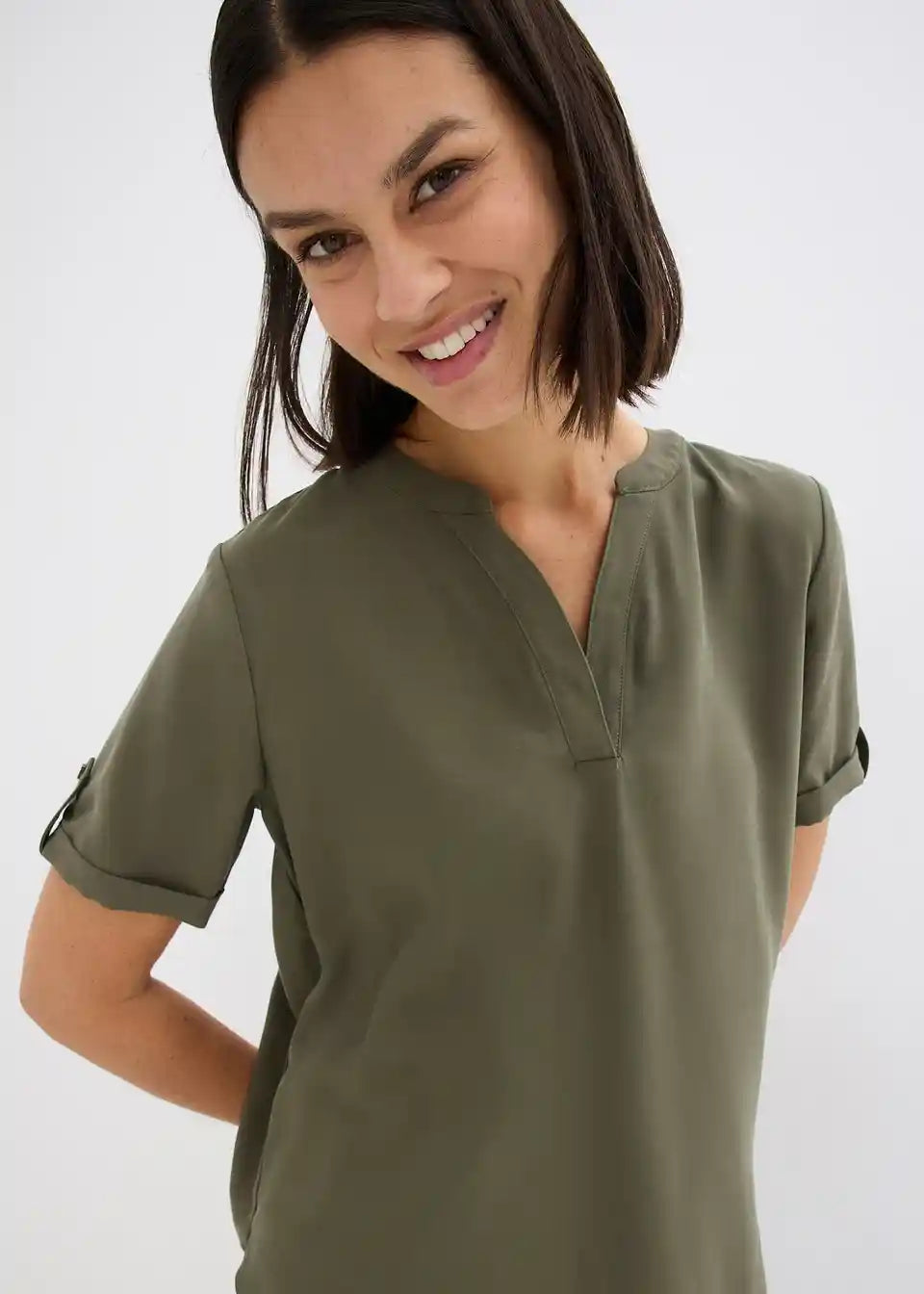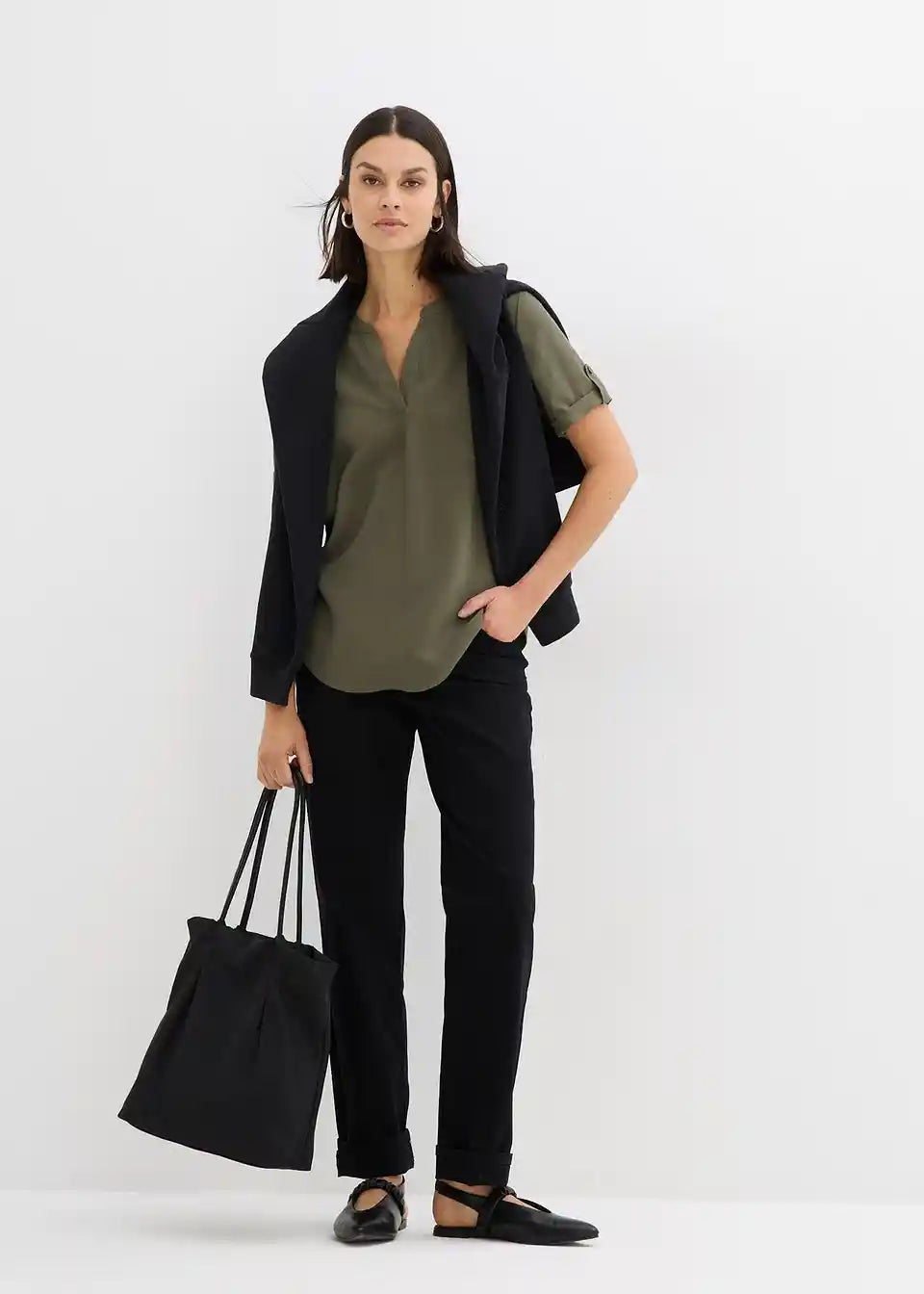 Bluza z lahkotnim V-izrezom in navzgor zavezanimi rokavi