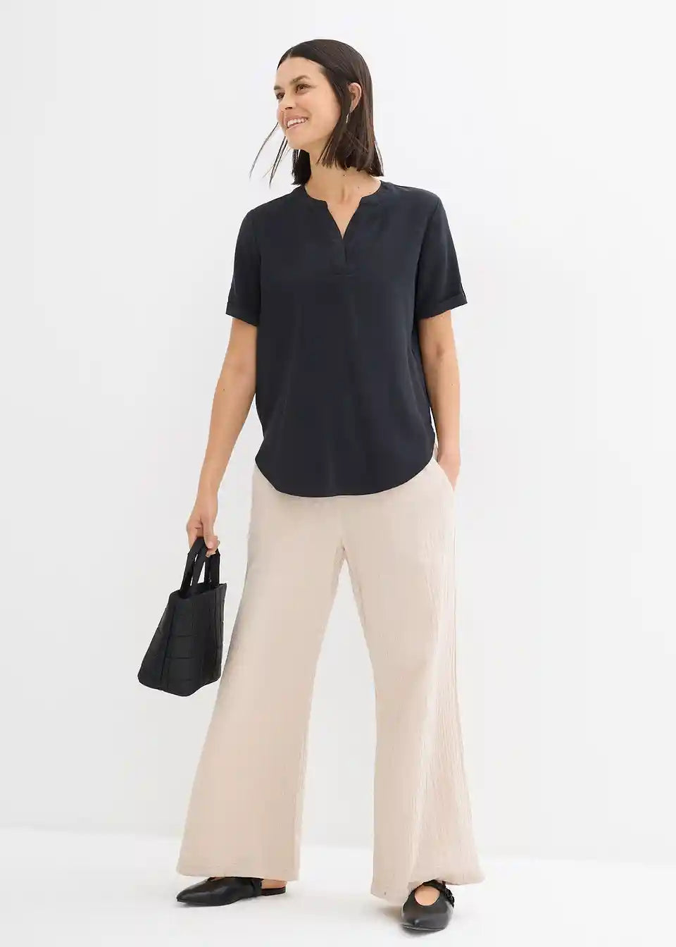 Bluza s kratkimi rokavi iz kompaktne viskozne mešanice