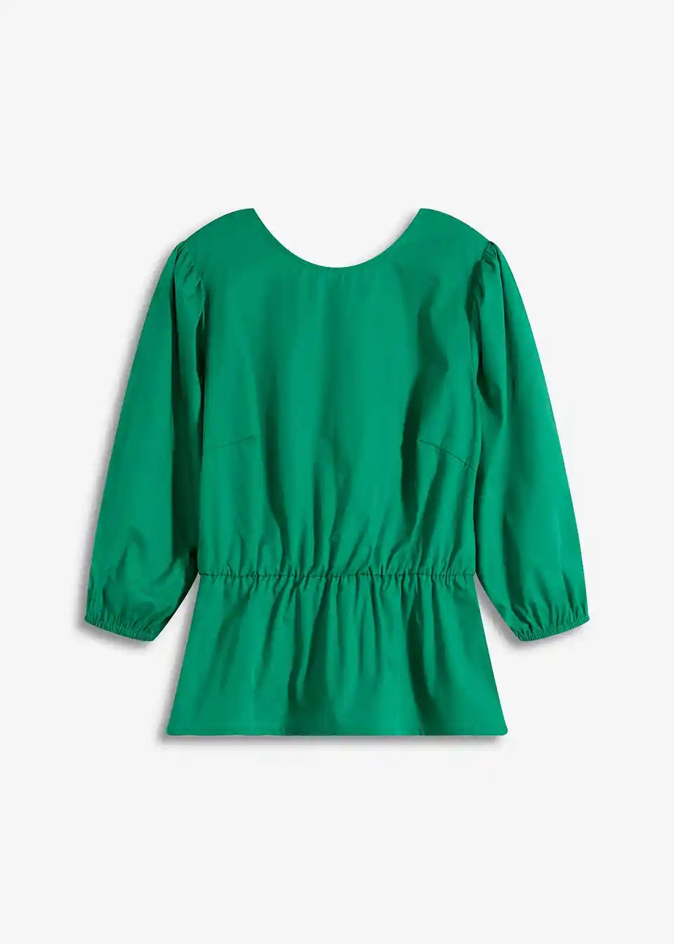 Bluza z okroglim izrezom, elastiko v pasu in 3/4 rokavi