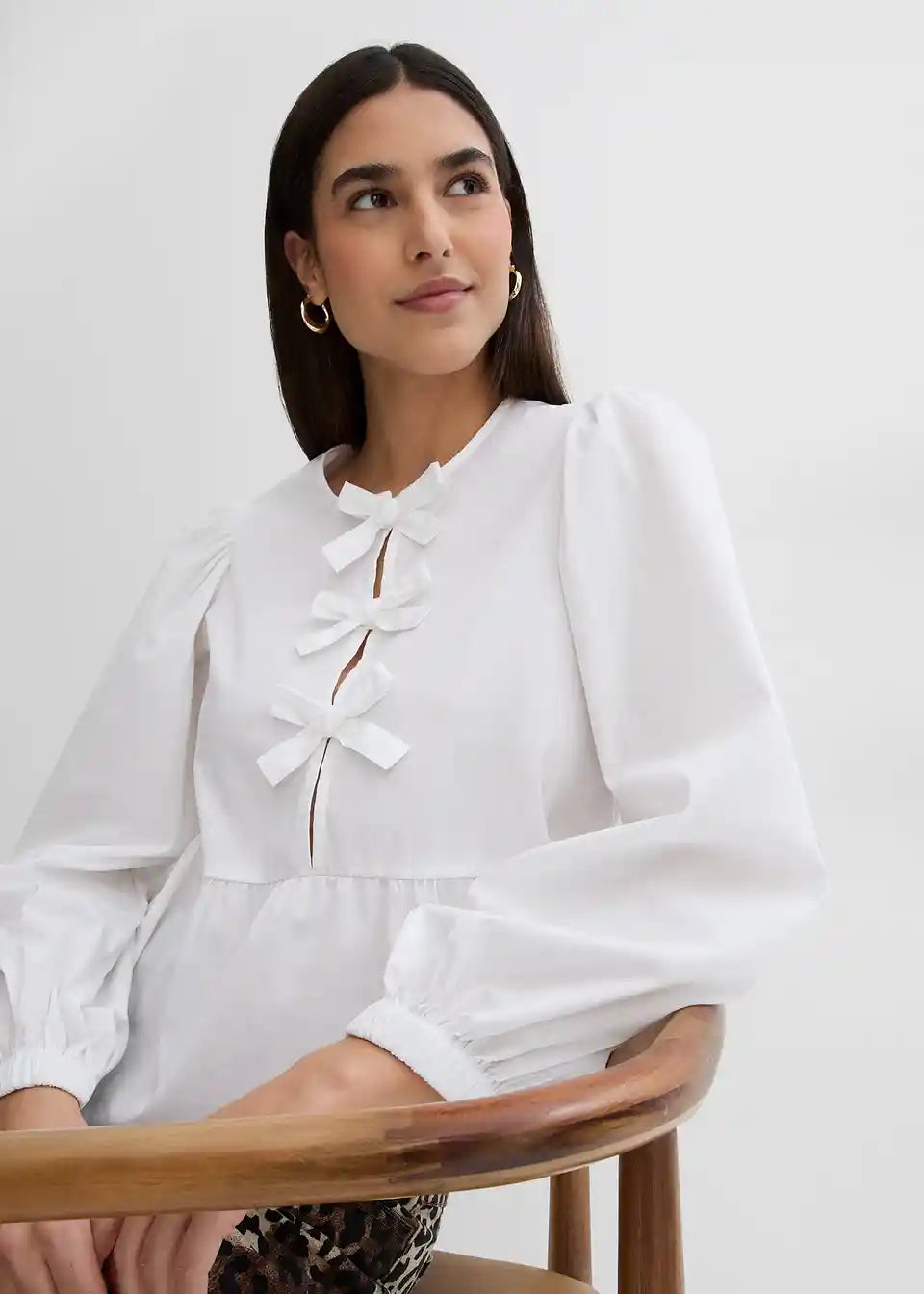 Modna bluza s pentljastimi detajli in dolgimi rokavi