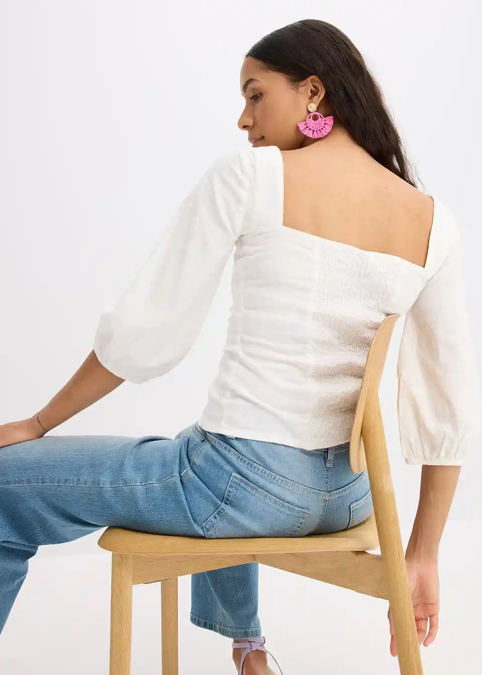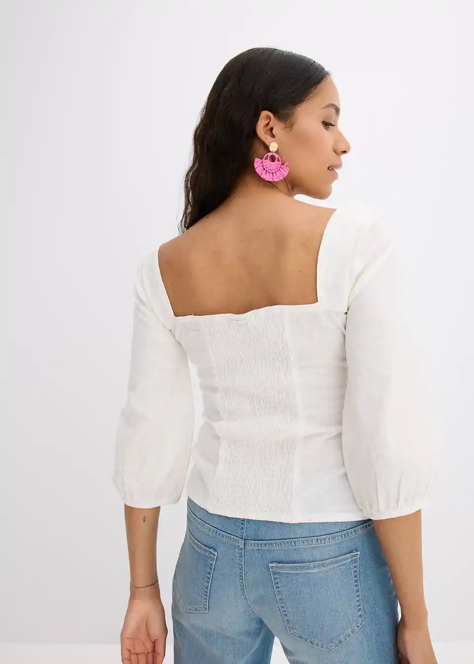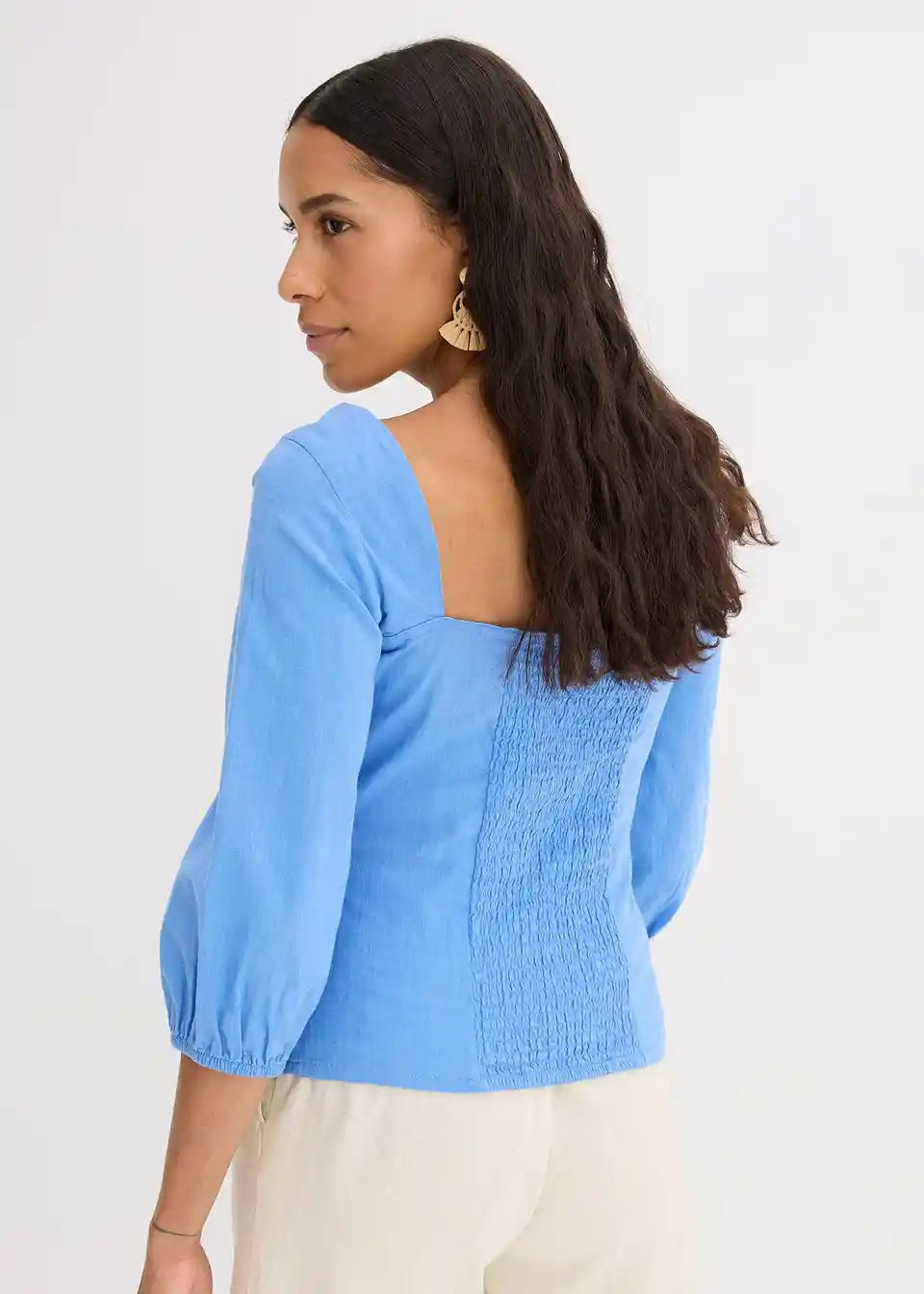 Bluzni top s carré izrezom in nabranim hrbtnim delom