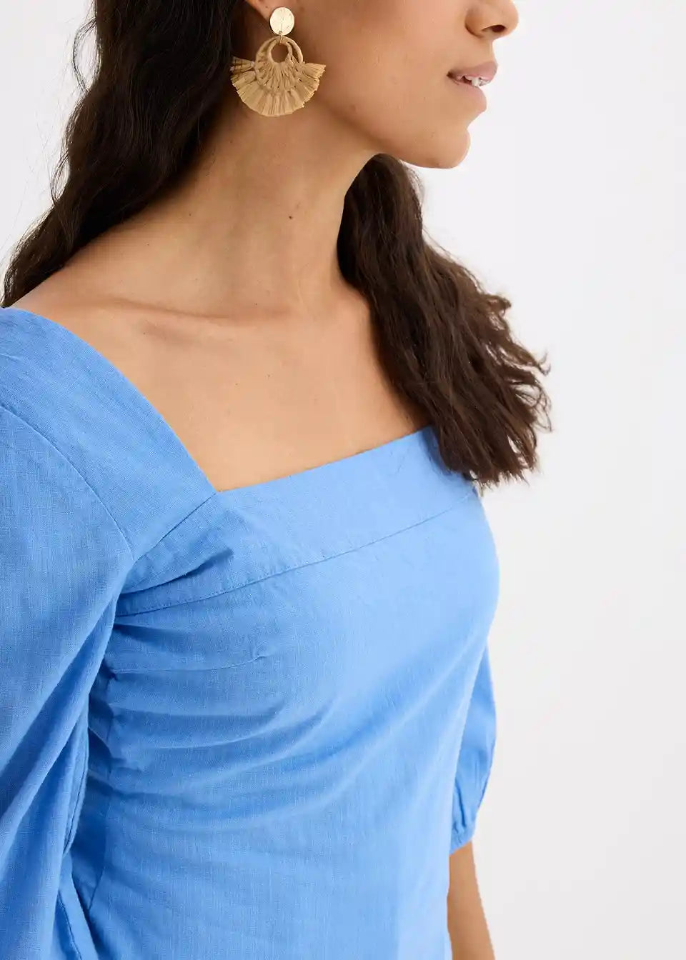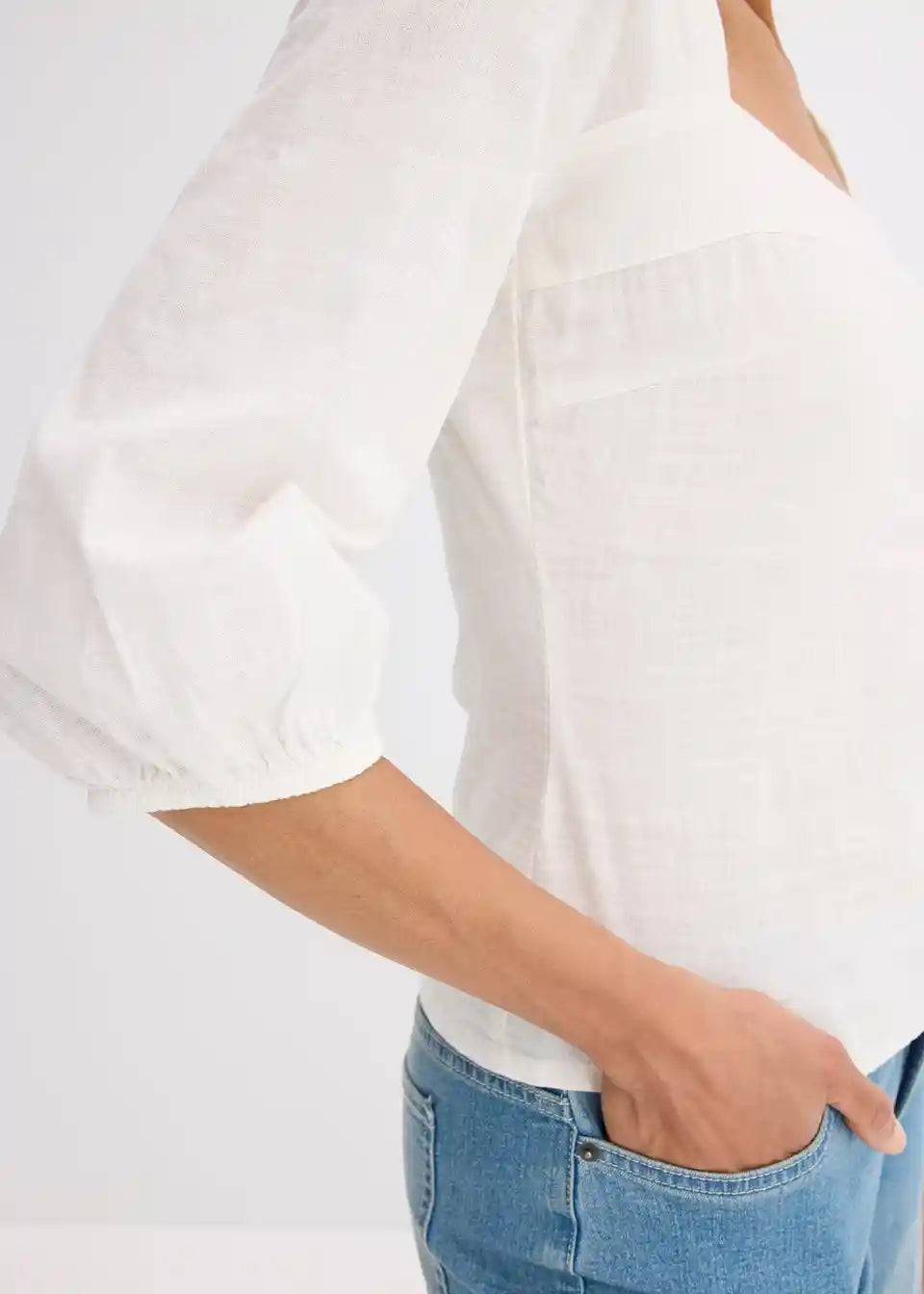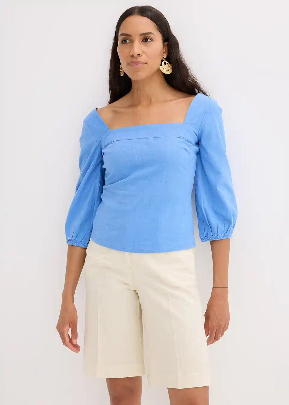 Bluzni top s carré izrezom in nabranim hrbtnim delom