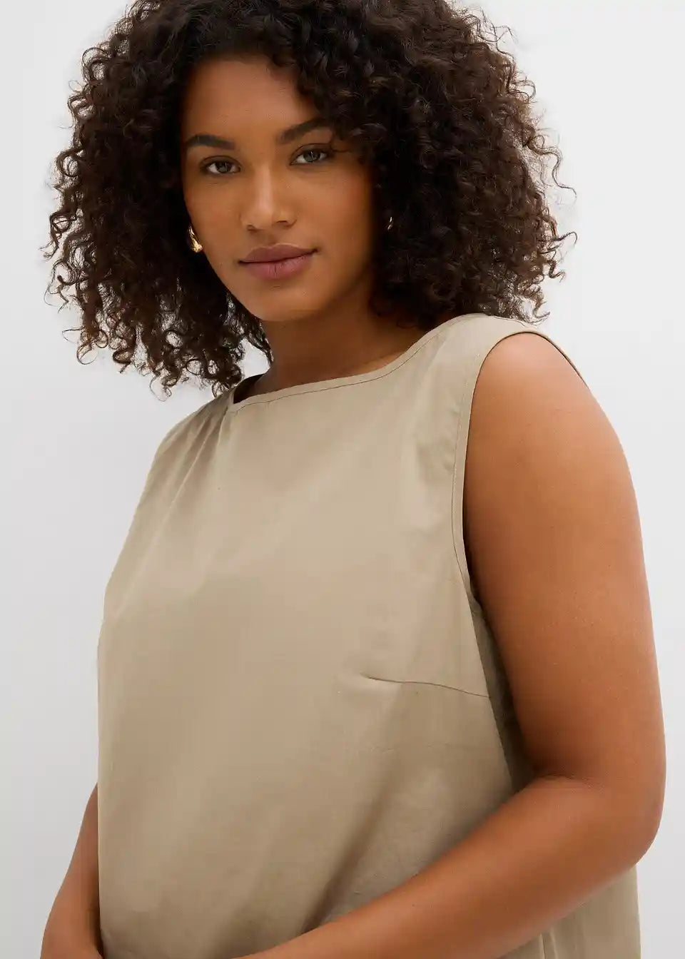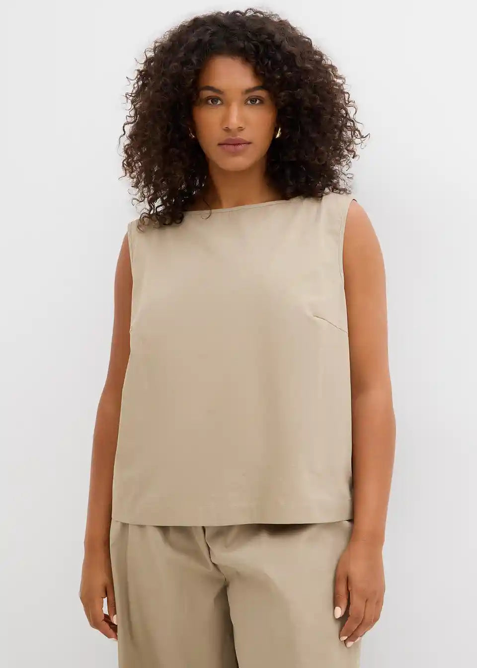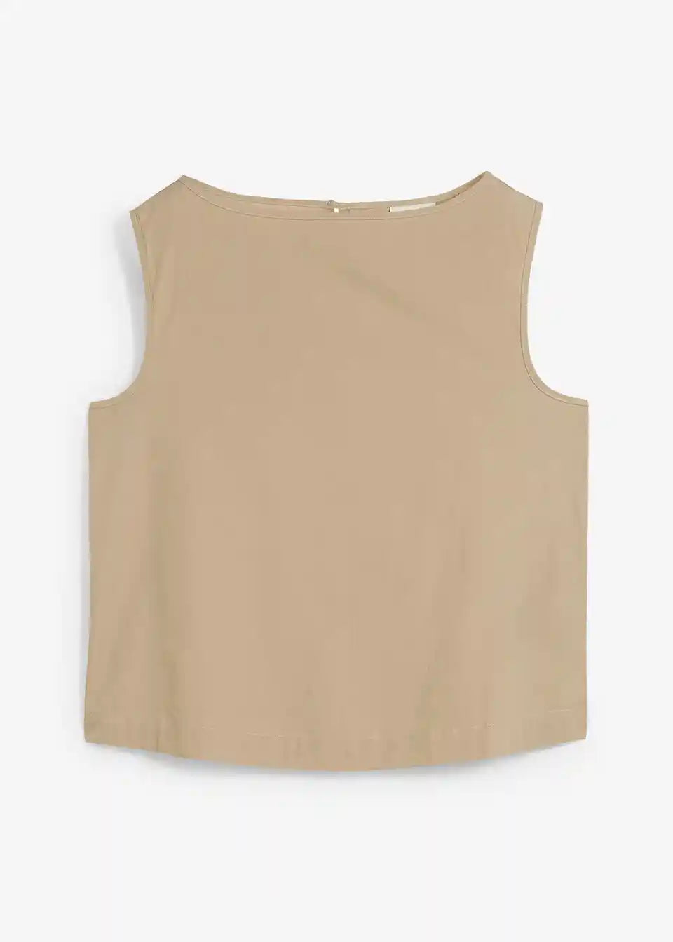 Minimalističen bluza top brez rokavov z izrezom na čoln in razporkom na hrbtni strani